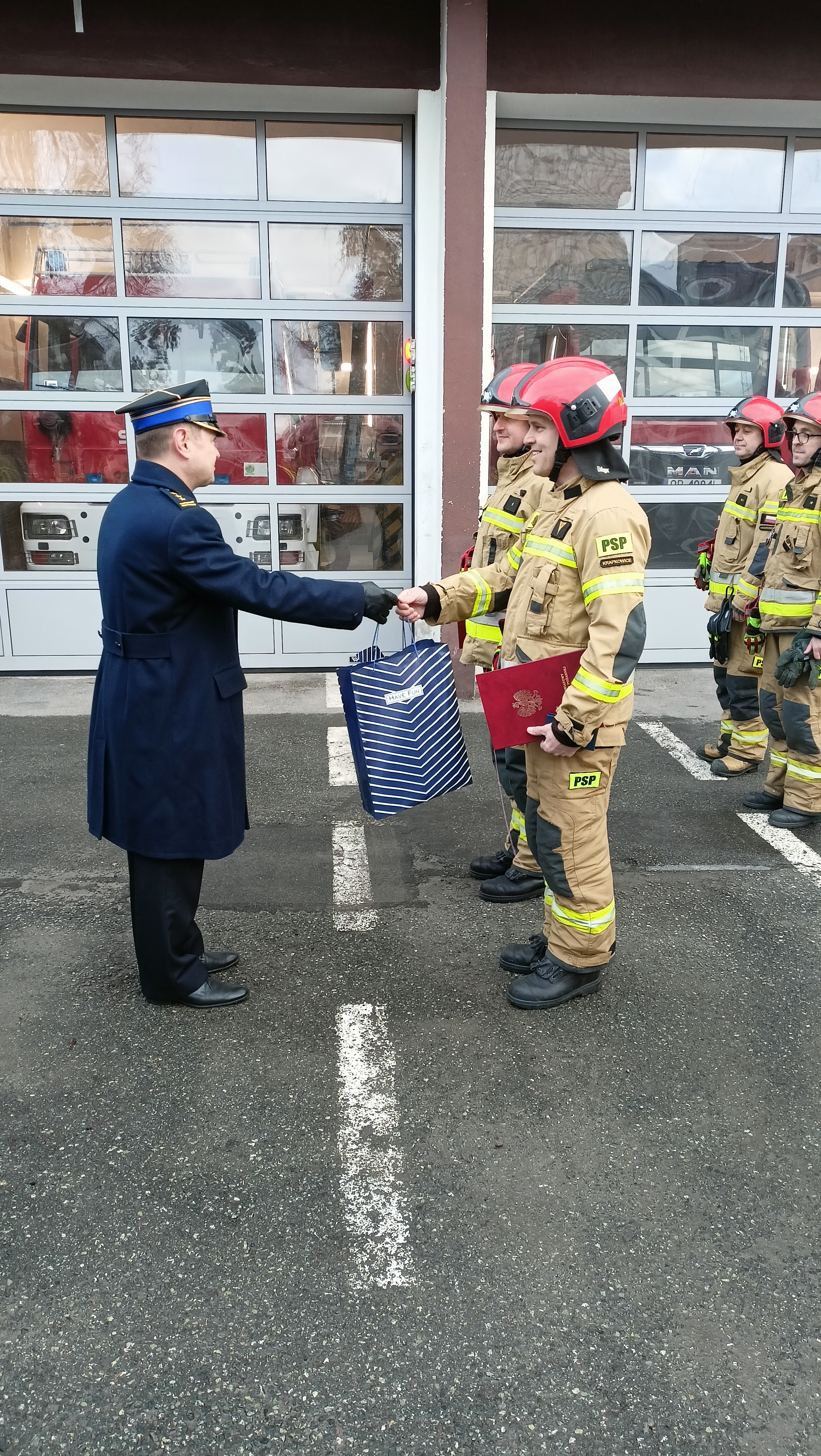 23 lutego 2022 r. w siedzibie Komendy Powiatowej Państwowej Straży Pożarnej w Krapkowicach odbyła się uroczysta zmiana służby połączona z pożegnaniem dwóch strażaków przechodzących na zaopatrzenie emerytalne z dniem 27 lutego.