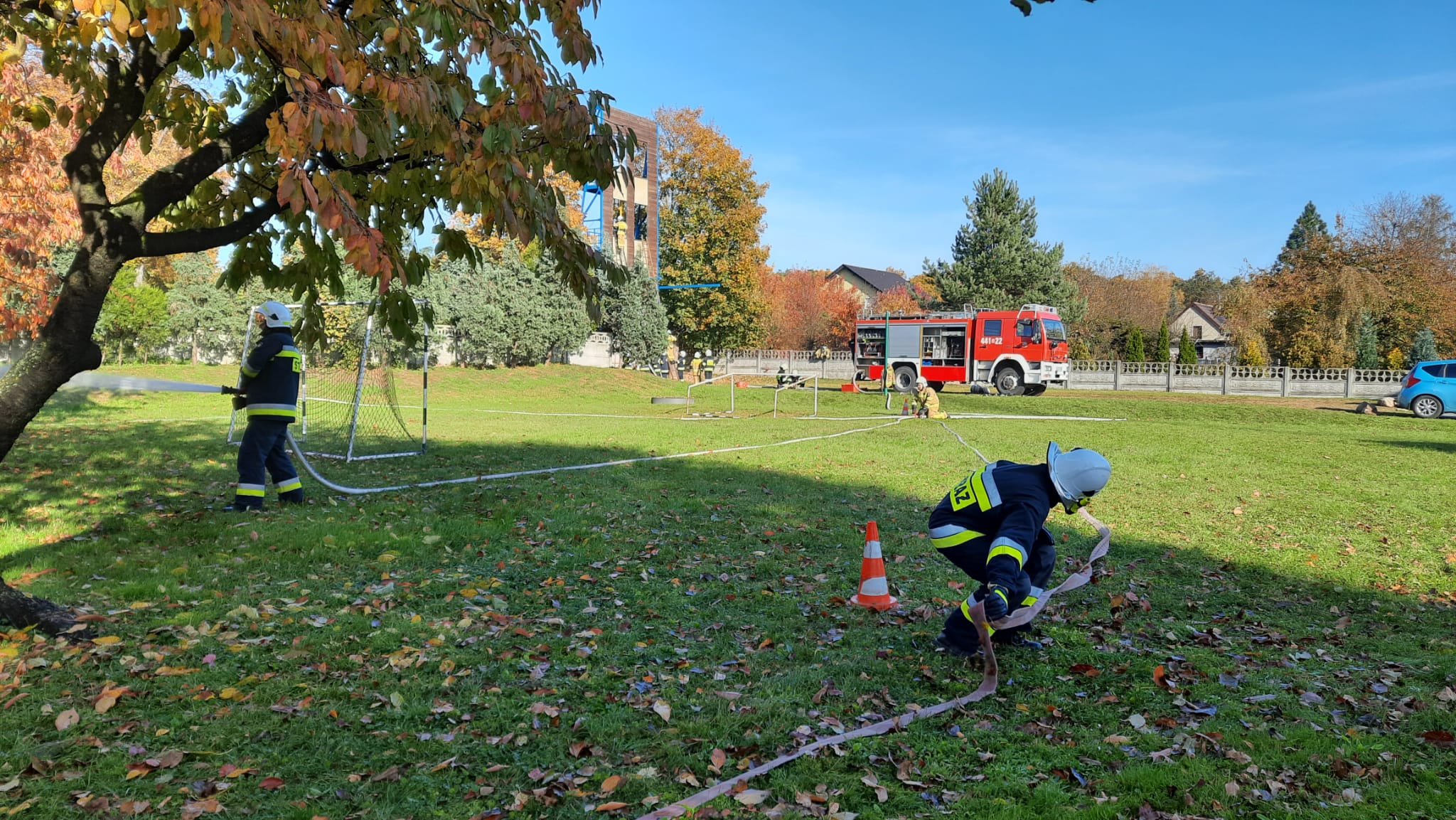 15 października rozpoczęły się zajęcia praktyczne szkolenia podstawowego dla strażaków Ochotniczych Straży Pożarnych z terenu powiatu krapkowickiego. Szkolenie rozpoczęło się we wrześniu częścią teoretyczną w systemie e-learningu, którą każdy z uczestników odbywał samodzielnie na przygotowanej do tego celu platformie internetowej. Obecnie naprzemiennie, co dwa tygodnie odbywają się zajęcia na dwóch równolegle realizowanych kursach. Podczas szkolenia młodzi adepci pożarnictwa ugruntują swoją wiedzę teoretyczną, a także zostaną praktycznie przygotowani do podjęcia działań ratowniczo-gaśniczych podejmowanych przez Jednostki Operacyjno – Techniczne macierzystych OSP.