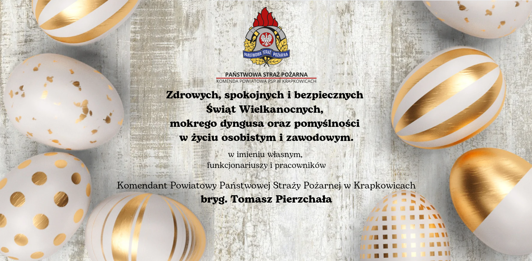 Życzenia Komendanta Powiatowego Państwowej Straży Pożarnej w Krapkowicach z okazji Świąt Wielkanocnych.
