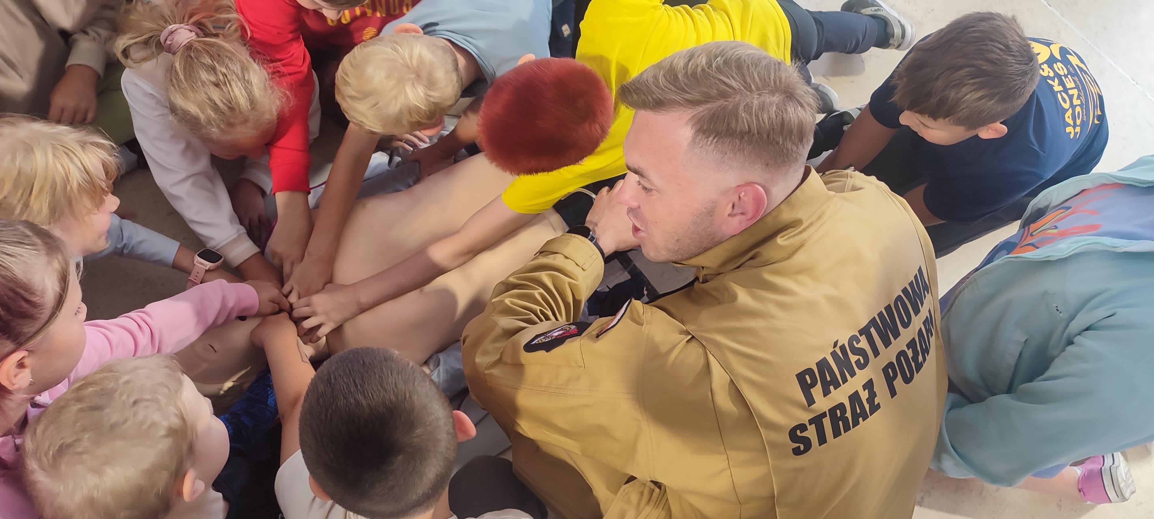 Podczas wizyt na terenie obozów harcerskich prowadzimy szkolenia z zakresu bezpieczeństwa pożarowego oraz pierwszej pomocy, ucząc dzieci i młodzież, jak reagować w sytuacjach zagrożenia życia i zdrowia.