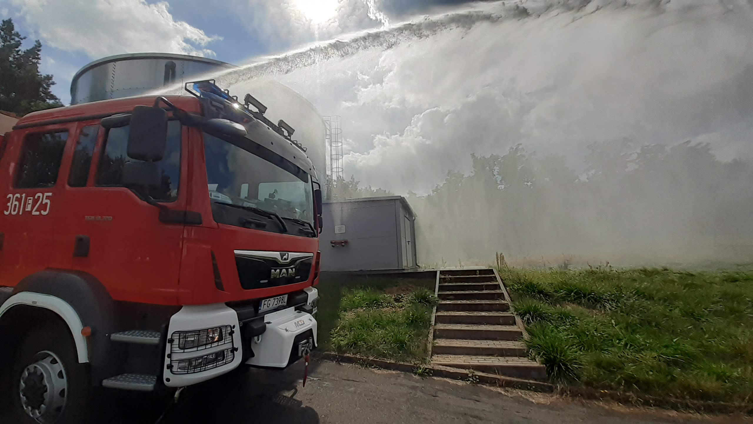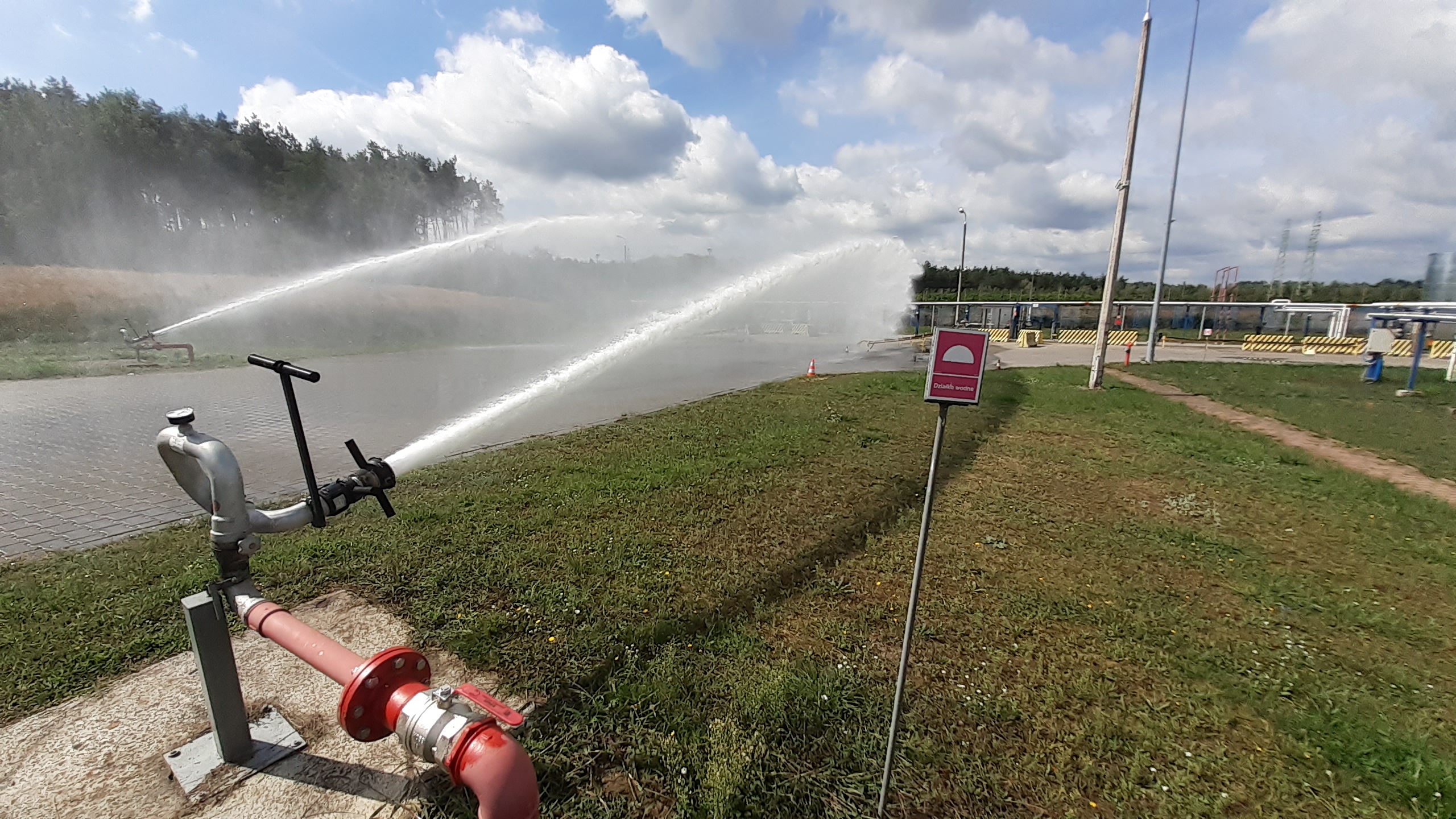 Jak co roku, w ramach nadzoru nad przestrzeganiem przepisów przeciwpożarowych oraz przygotowania do działań ratowniczych, funkcjonariusze Komendy Powiatowej Państwowej Straży Pożarnej w Krośnie Odrzańskim przeprowadzili czynności kontrolno-rozpoznawcze na terenie Terminala Gazu Płynnego ORLEN Paliwa Sp. z o.o. w Krośnie Odrzańskim. Tym razem czynności kontrolno-rozpoznawcze połączone zostały z ćwiczeniami mającymi na celu sprawdzenie zasięgu rzutu wody z działek przeciwpożarowych będących na wyposażeniu Terminala Gazu Płynnego. Ponadto przećwiczony został aspekt związany z zasilaniem wodnym pojazdów pożarniczych ze zbiornika przeciwpożarowego znajdującego się na terenie terminala.