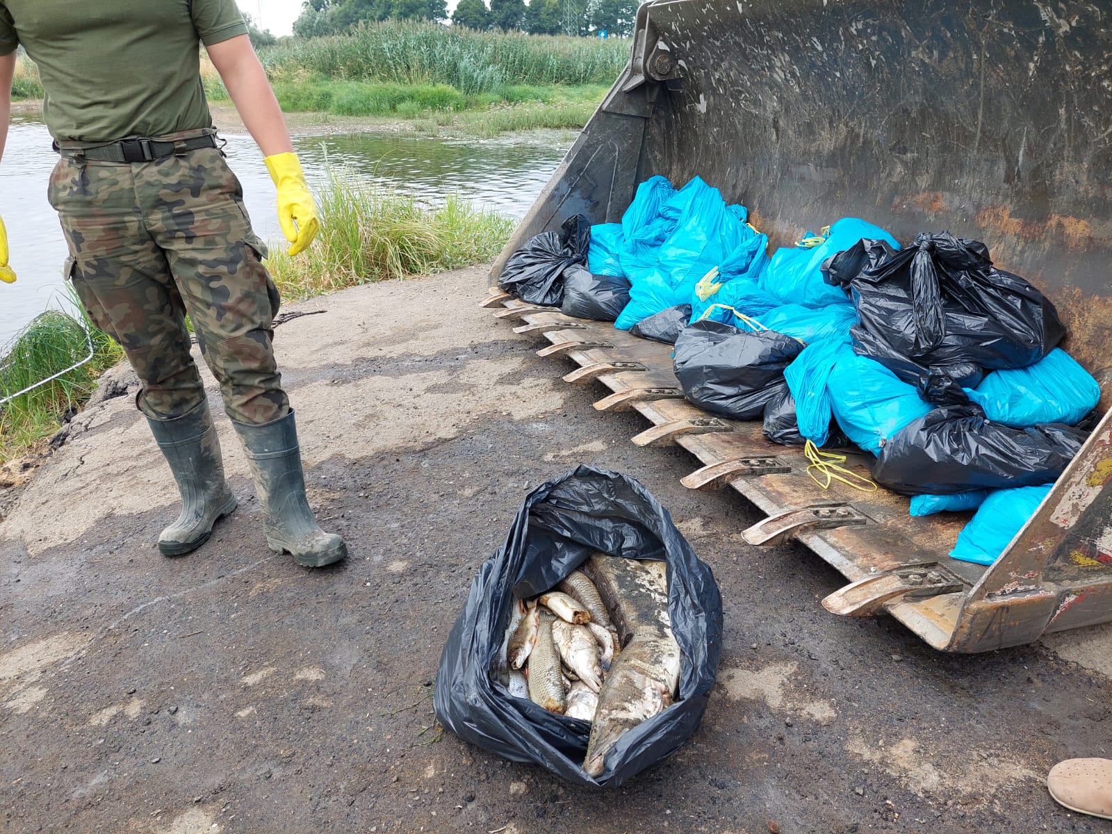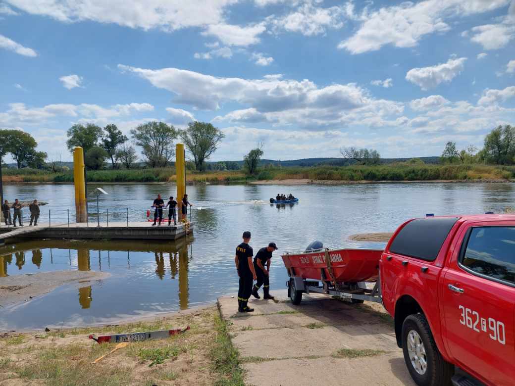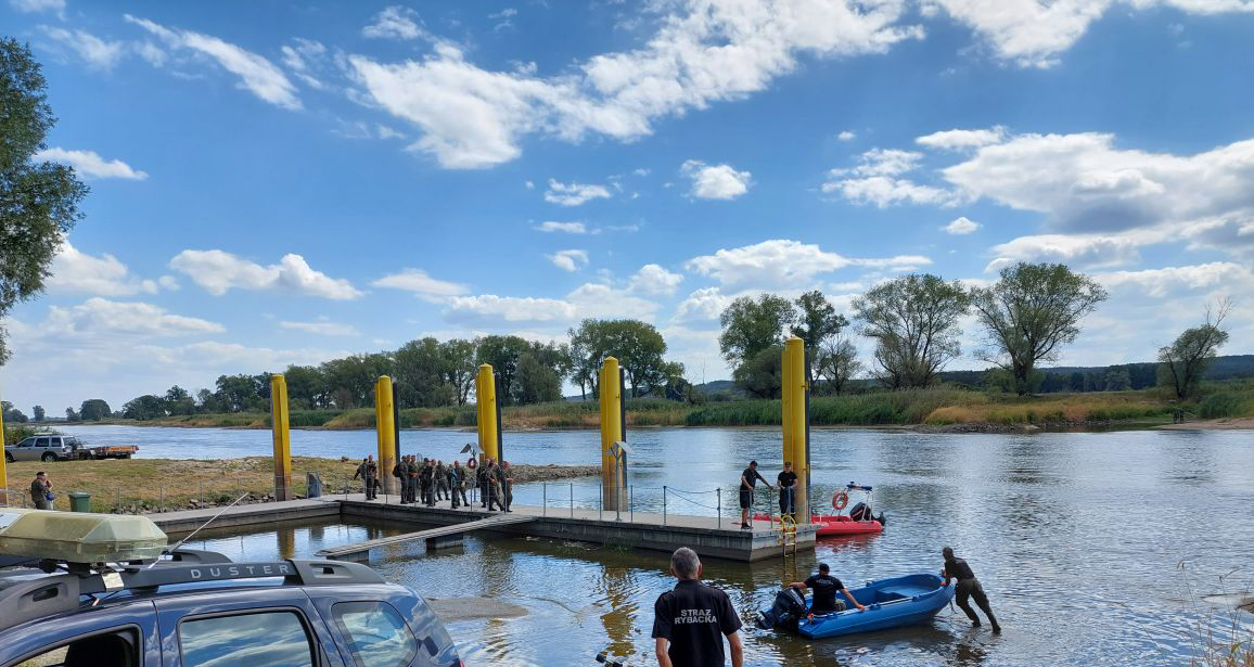 W związku ze skażeniem rzeki Odry od dnia 12 sierpnia 2022 r. funkcjonariusze Komendy Powiatowej PSP w Krośnie Odrzańskim pomagają w oczyszczeniu akwenu wodnego w granicach naszego powiatu. Do działań zadysponowani zostali strażacy oraz łodzie z Jednostki Ratowniczo-Gaśniczej w Krośnie Odrzańskim, Jednostki Ratowniczo-Gaśniczej w Gubinie oraz Komendy Powiatowej PSP w Krośnie Odrzańskim. W działaniach wspierają nas również strażacy oraz łodzie z Jednostki Ratowniczo-Gaśniczej nr 2 w Zielonej Górze, Jednostki Ratowniczo-Gaśniczej w Nowej Soli oraz Jednostki Ratowniczo-Gaśniczej w Międzyrzeczu. Funkcjonariusze realizują zadania związane z monitorowaniem rzeki oraz odławianiem śniętych ryb wraz z żołnierzami Wojska Polskiego oraz przedstawicielami Straży Rybackiej.