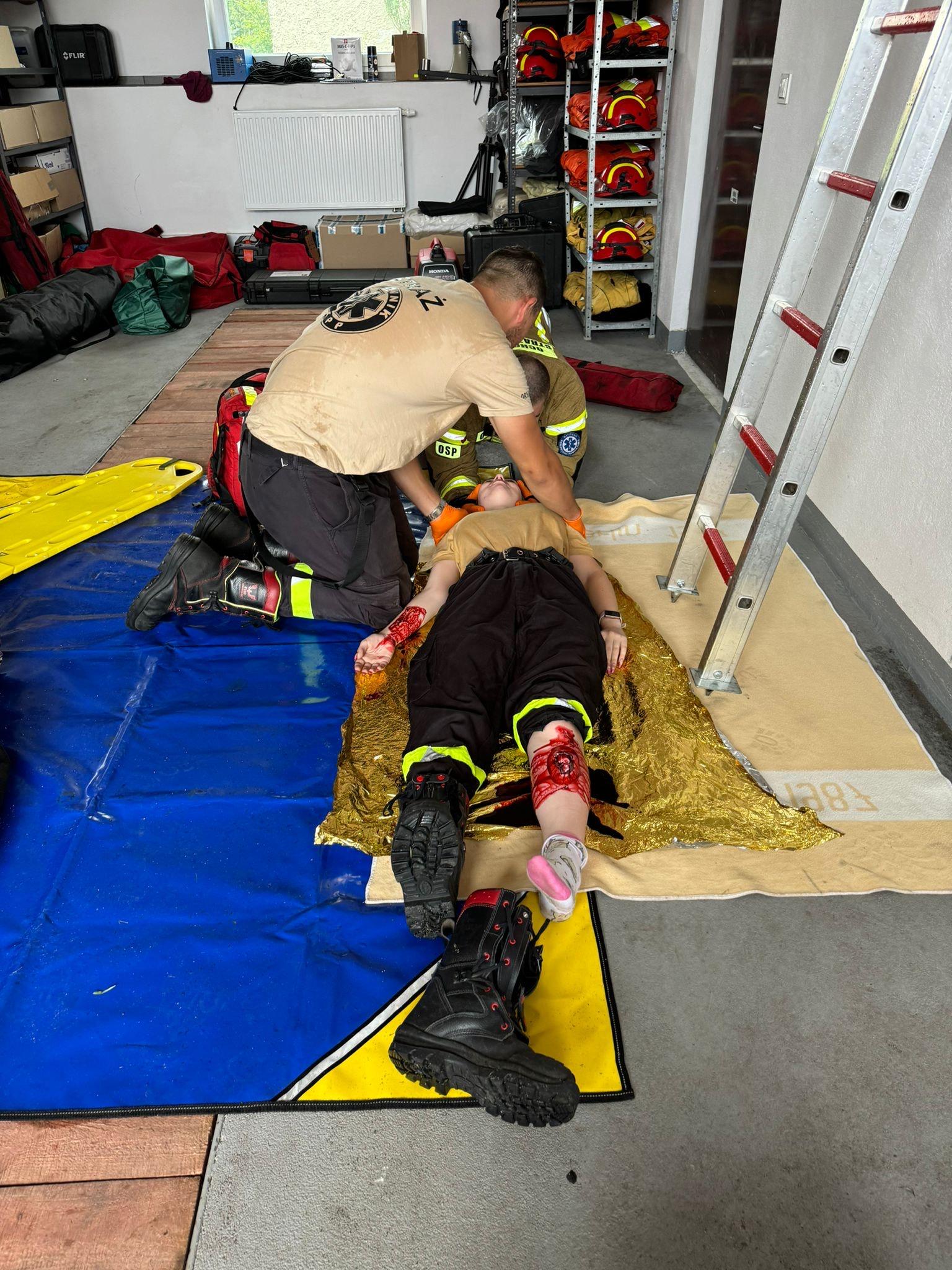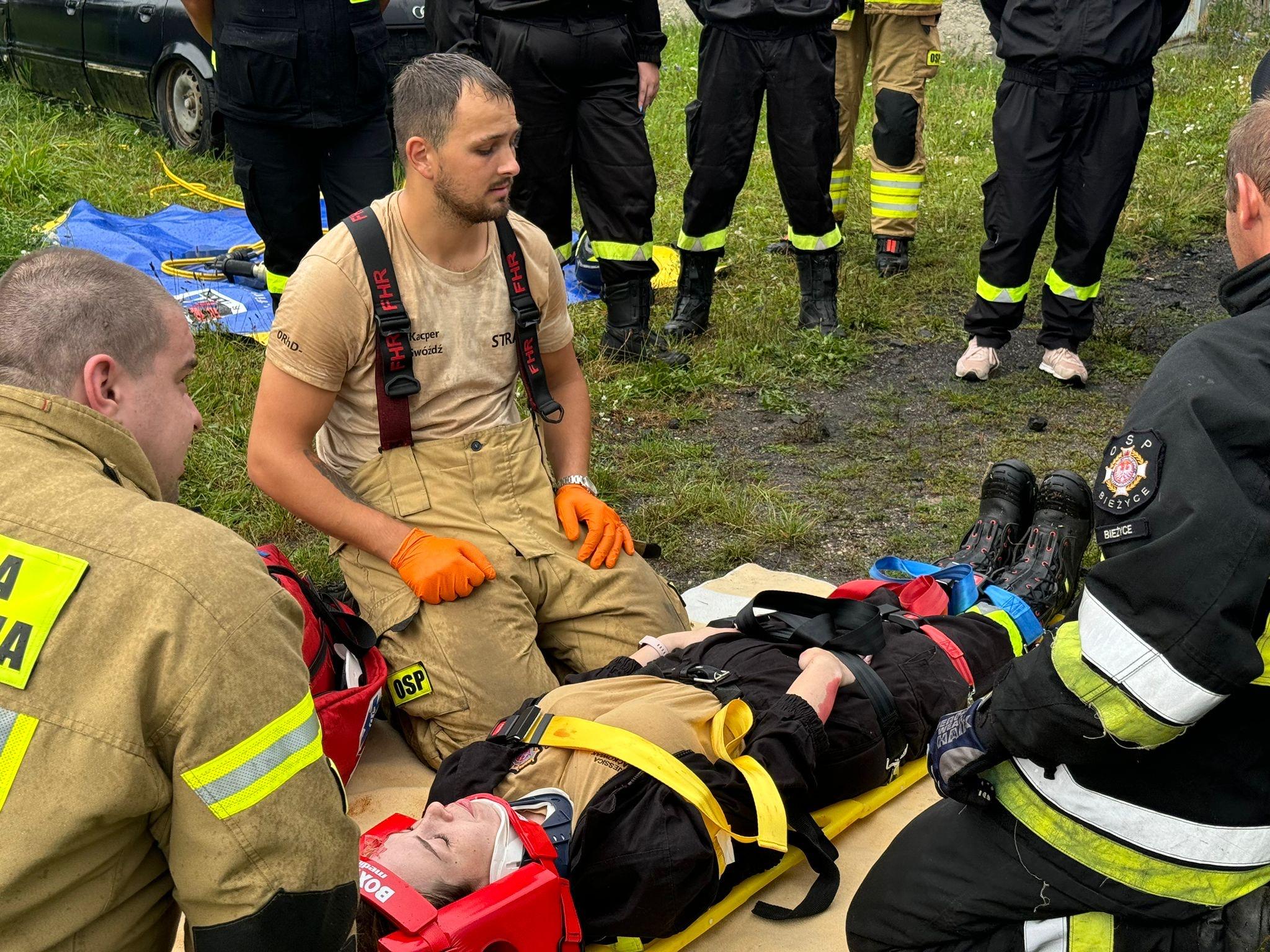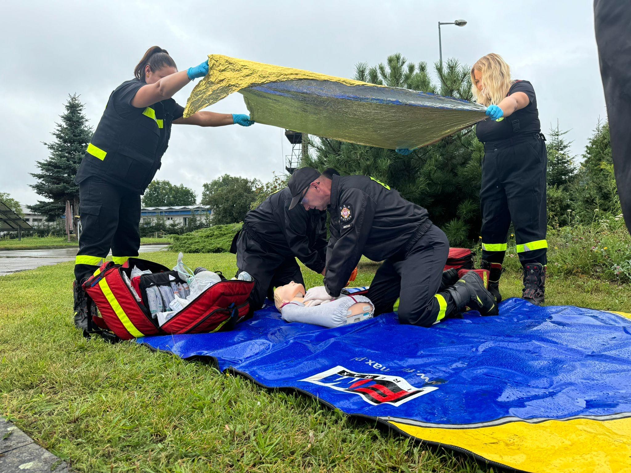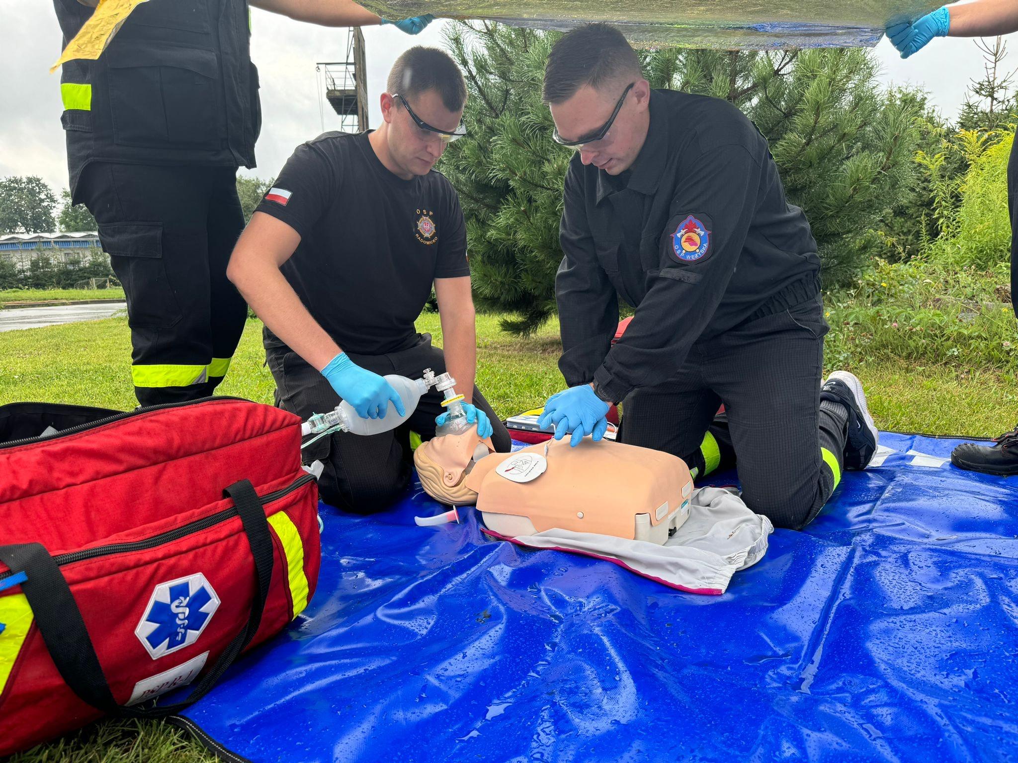 W ramach prowadzonego doskonalenia umiejętności praktycznych strażaków ratowników jednostek Ochotniczych Straży Pożarnych z terenu powiatu krośnieńskiego mimo niesprzyjającej pogody w dniu 04.08.2024 r., Komenda Powiatowa Państwowej Straży Pożarnej pod okiem instruktora z ratownictwa medycznego mł. asp. Damiana Malicz przeprowadziła I manewry z kwalifikowanej pierwszej pomocy pk. „MEDYK 2024” dla jednostek ochotniczych straży pożarnych z terenu powiatu krośnieńskiego. W manewrach uczestniczyły jednostki OSP: Bobrowice, Bieżyce, Osiecznica, Radomicko, Wężyska.