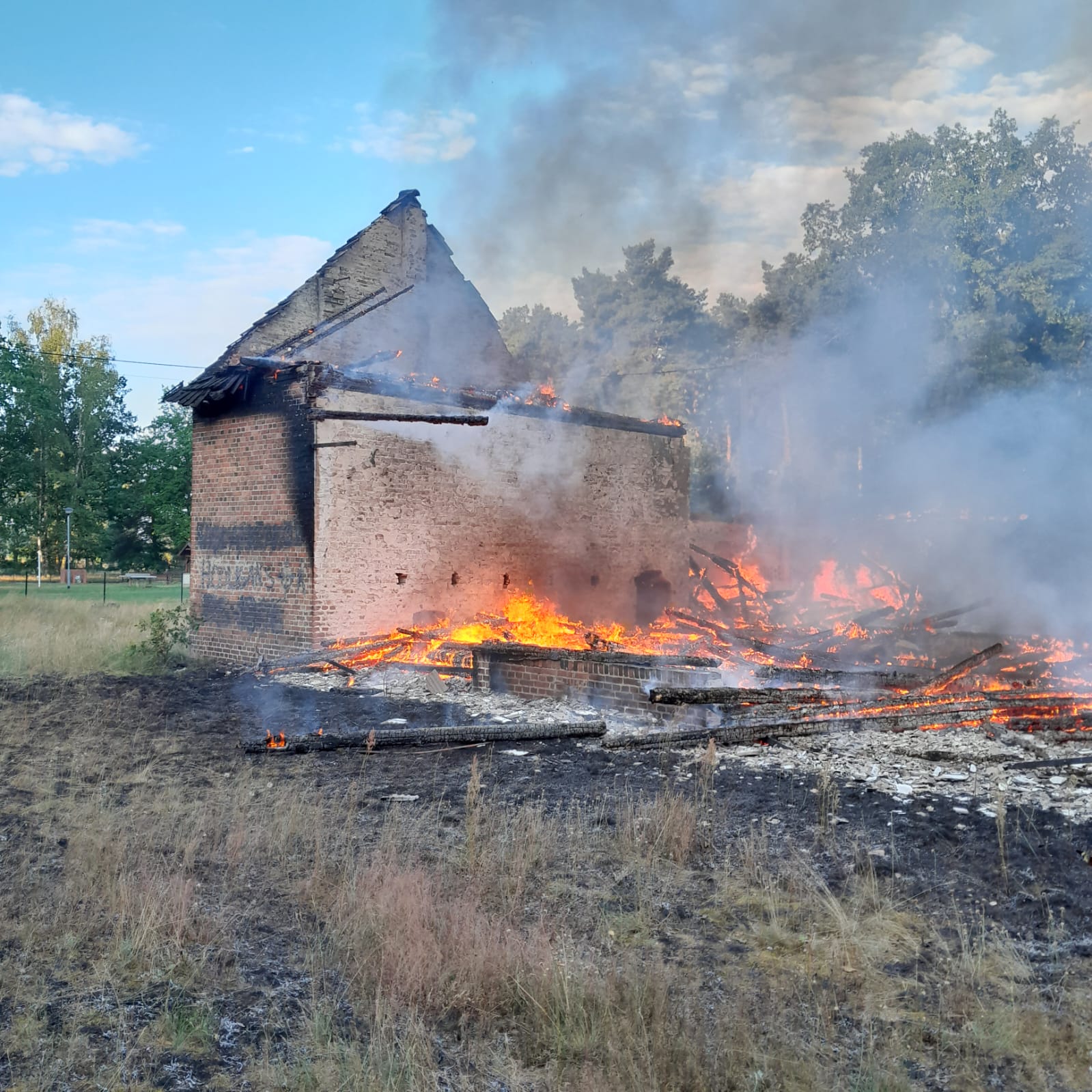 W sobotę 29 lipca 2023 roku, w godzinach porannych dyżurny Stanowiska Kierowania Komendanta Powiatowego Państwowej Straży Pożarnej w Krośnie Odrzańskim otrzymał zgłoszenie o pożarze budynku gospodarczego w miejscowości Zawada, gm. Gubin. Dyżurny Operacyjny Powiatu do zdarzenia zadysponował trzy zastępy z Jednostki Ratowniczo – Gaśniczej w Gubinie oraz trzy zastępy z Ochotniczej Straży Pożarnej. Po dojeździe na miejsce pożaru Kierujący Działaniami Ratowniczymi w przeprowadzonym rozpoznaniu ustalił, że pali się budynek gospodarczy w całej objętości, który zawalił się jeszcze przed przybyciem jednostek ochrony przeciwpożarowej. Działania zastępów jednostek ochrony przeciwpożarowej polegały na zabezpieczeniu miejsca zdarzenia oraz podaniu pięciu prądów wody w natarciu na miejsce pożaru.