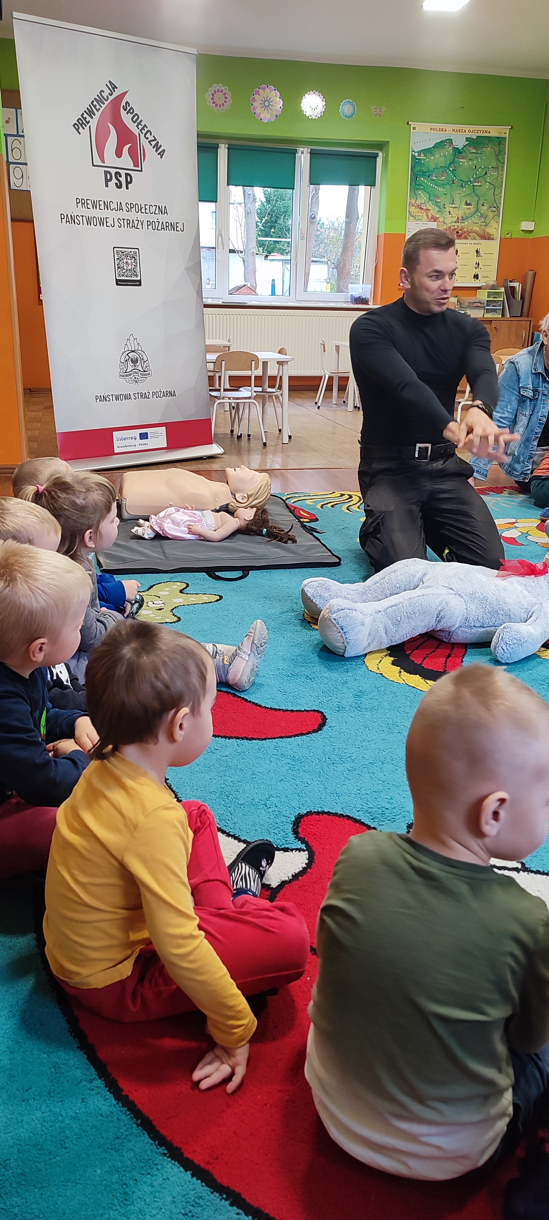 W dniu 30 października 2024 roku, w ramach projektu pn. „Lepiej zapobiegać niż ratować” funkcjonariusze Komendy Powiatowej Państwowej Straży Pożarnej w Krośnie Odrzańskim odwiedzili przedszkolaków w Publicznym Przedszkolu w Maszewie. Tym razem głównym celem wizyty było przeprowadzenie pokazu z zakresu udzielania pierwszej pomocy, a także przypomnienie procedury zgłaszania pożarów i innych zagrożeń przy pomocy numeru alarmowego.