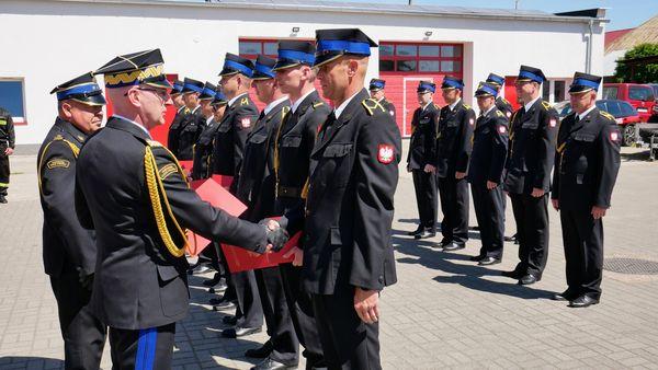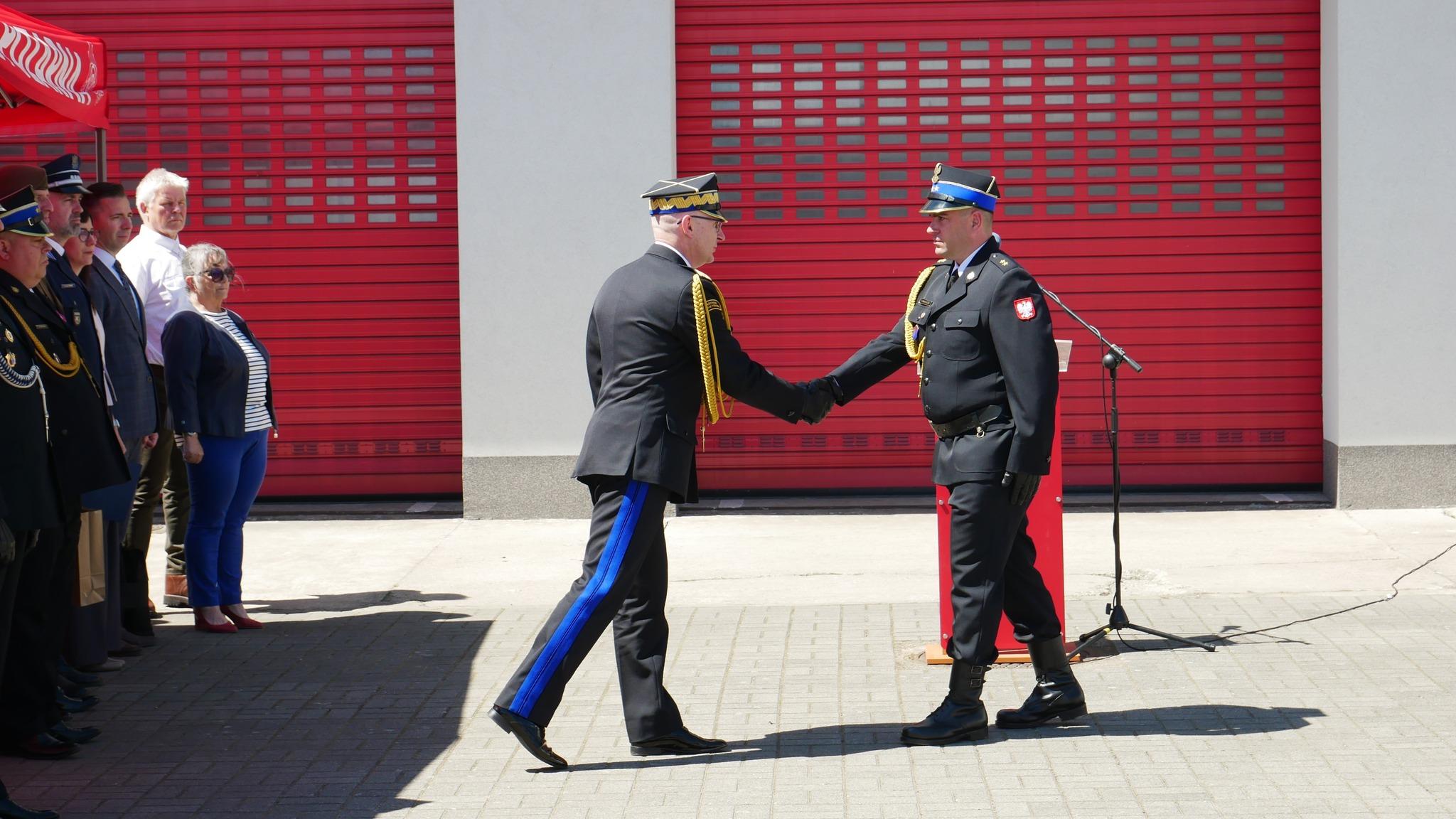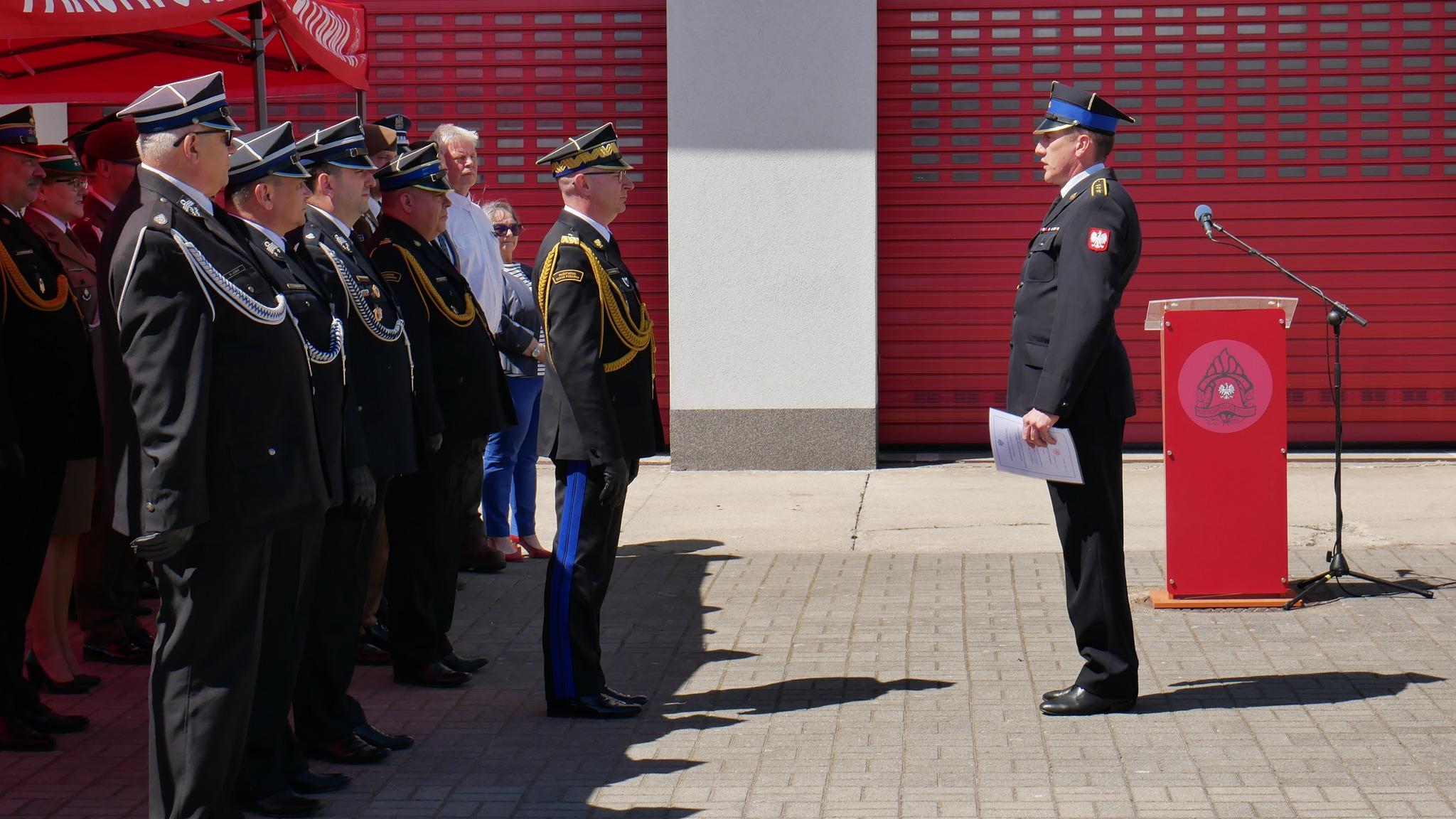„Gratuluję odznaczonym i awansowanym. Dziękuję Wam za codzienny trud i poświęcenie w służbie. Przekażcie podziękowania najbliższym, gdyż oni również są częścią wspólnego sukcesu.” - powiedział obecnym na placu strażakom nadbryg. Janusz Drozda.