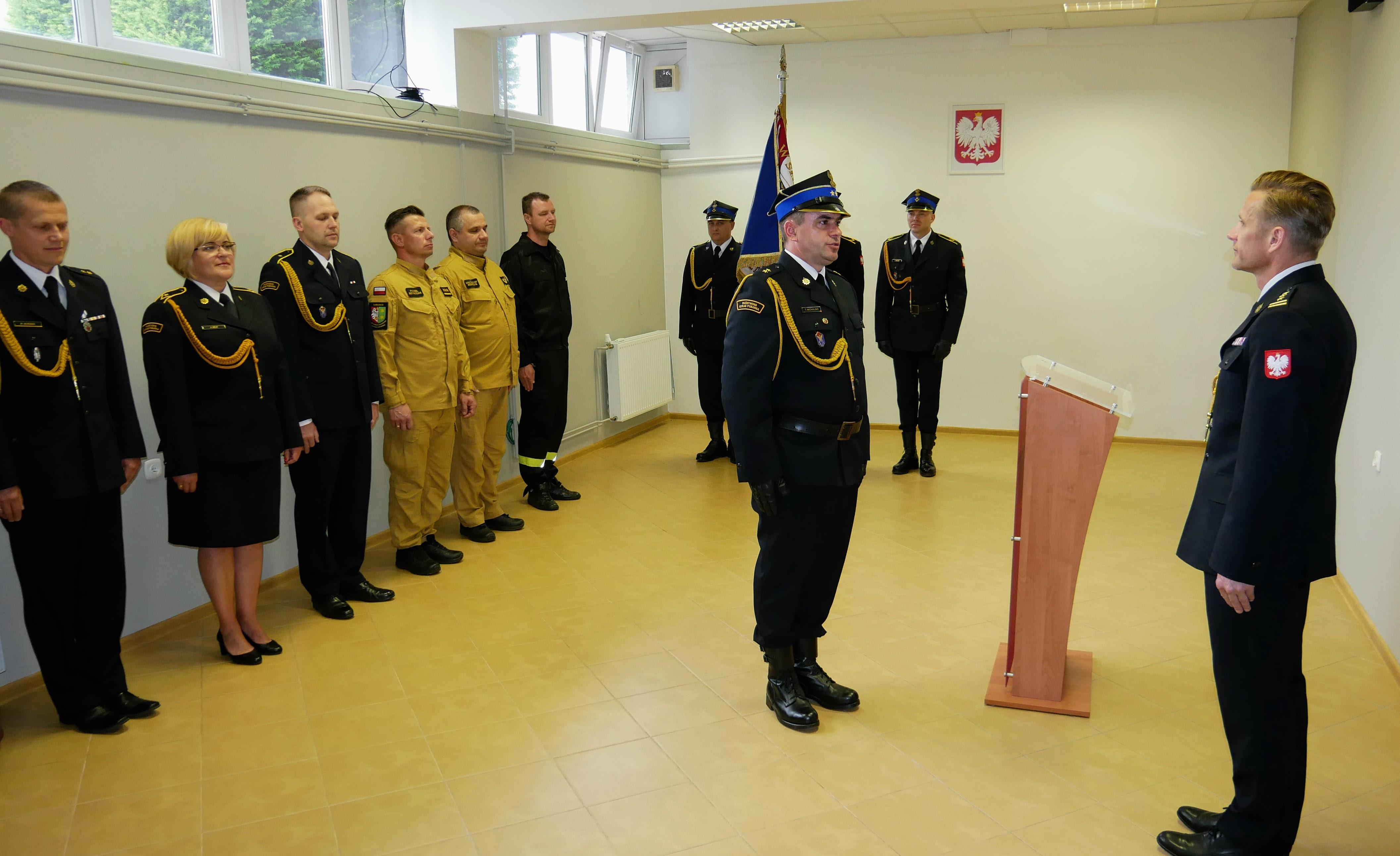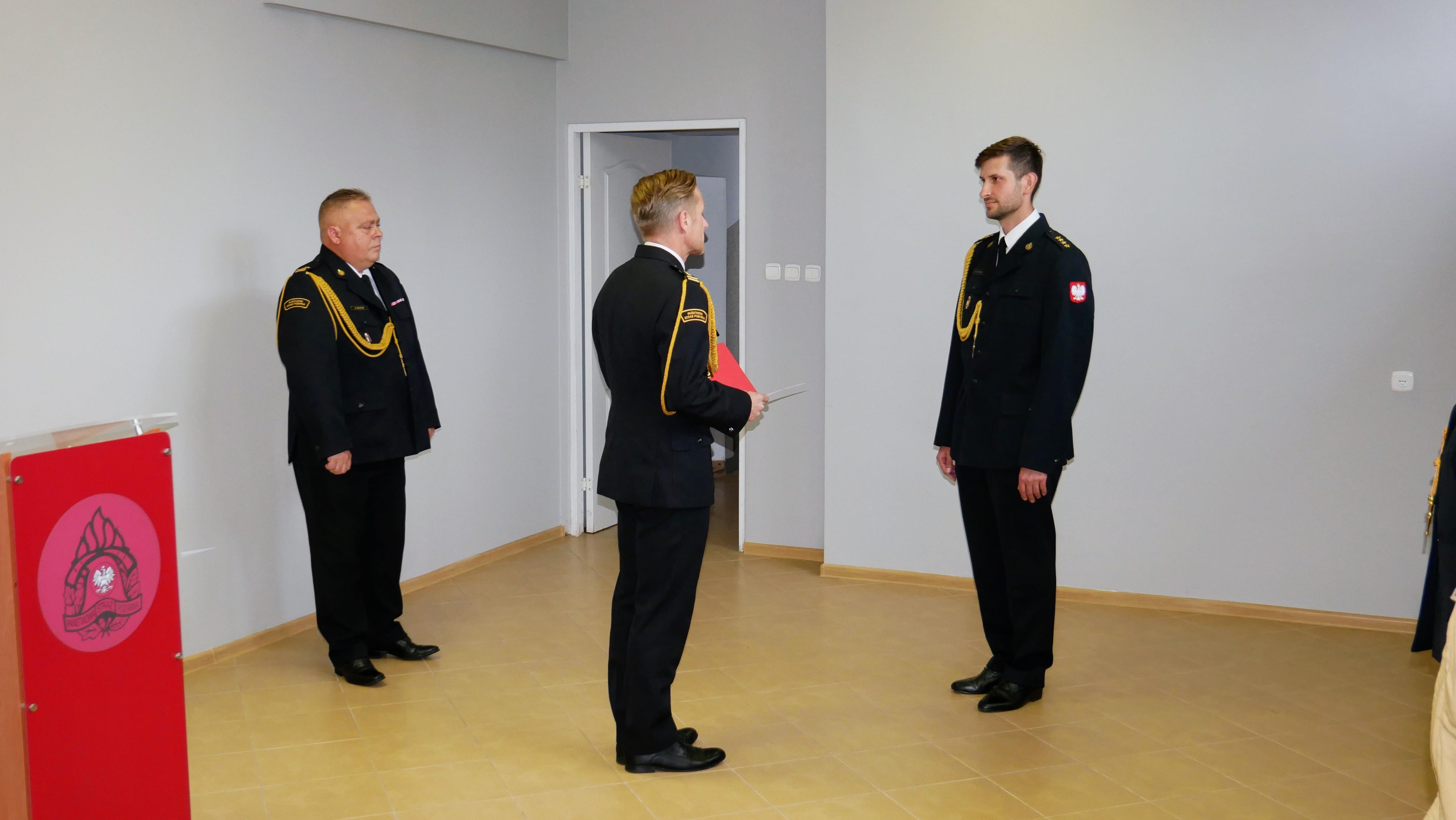„Panie kapitanie, w imieniu lubuskiego komendanta wojewódzkiego PSP nadbryg. Janusza Drozdy, na wniosek komendanta powiatowego PSP w Krośnie Odrzańskim bryg. Dariusza Wojtunia, powołuję Pana z dniem dzisiejszym na stanowisko zastępcy komendanta powiatowego Państwowej Straży Pożarnej w Krośnie Odrzańskim. Serdecznie gratuluję i życzę Panu tylko trafnych decyzji oraz satysfakcji z pełnienia służby.”