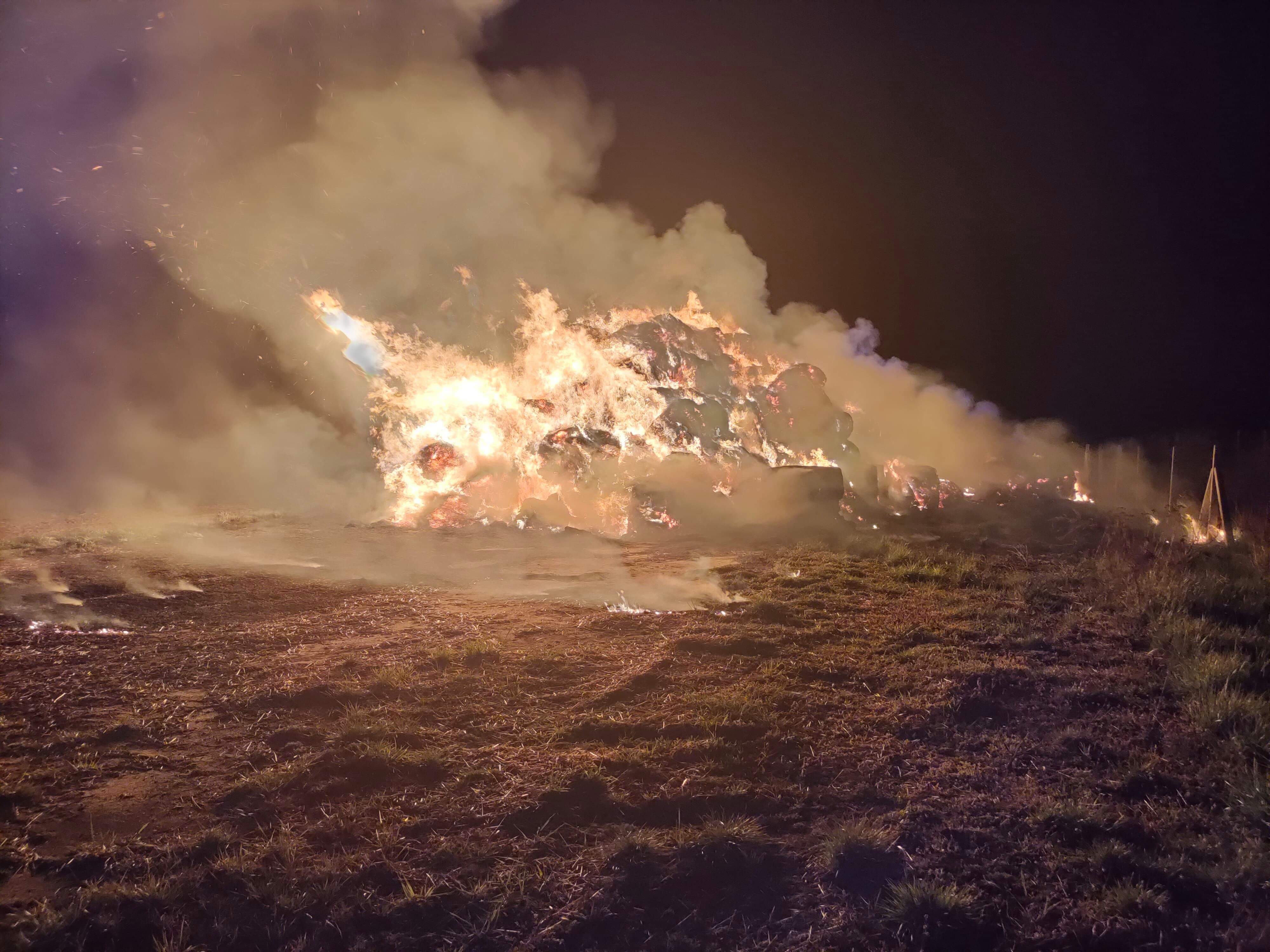 Pożar stogu siana w Łagowie, gm. Dąbie