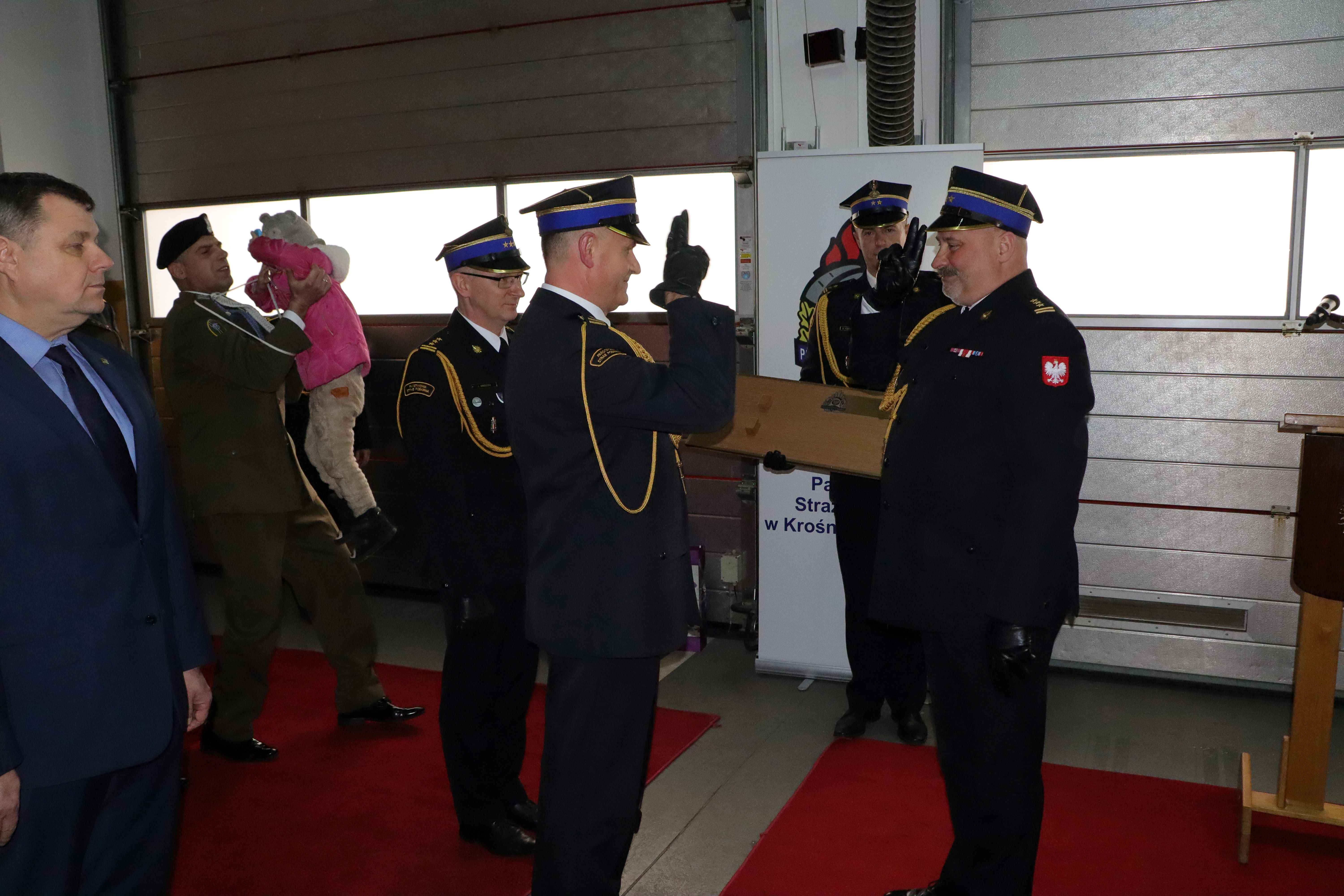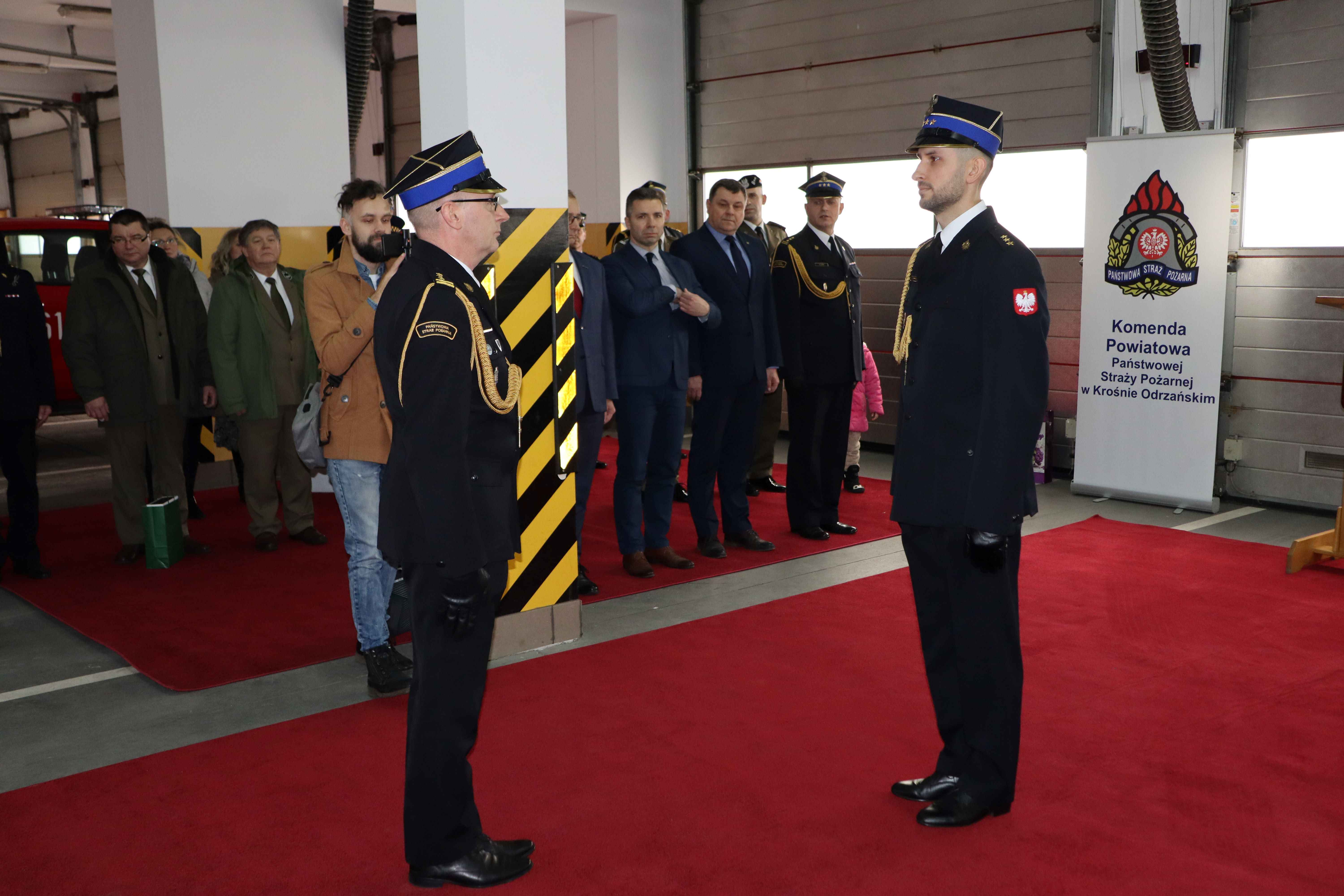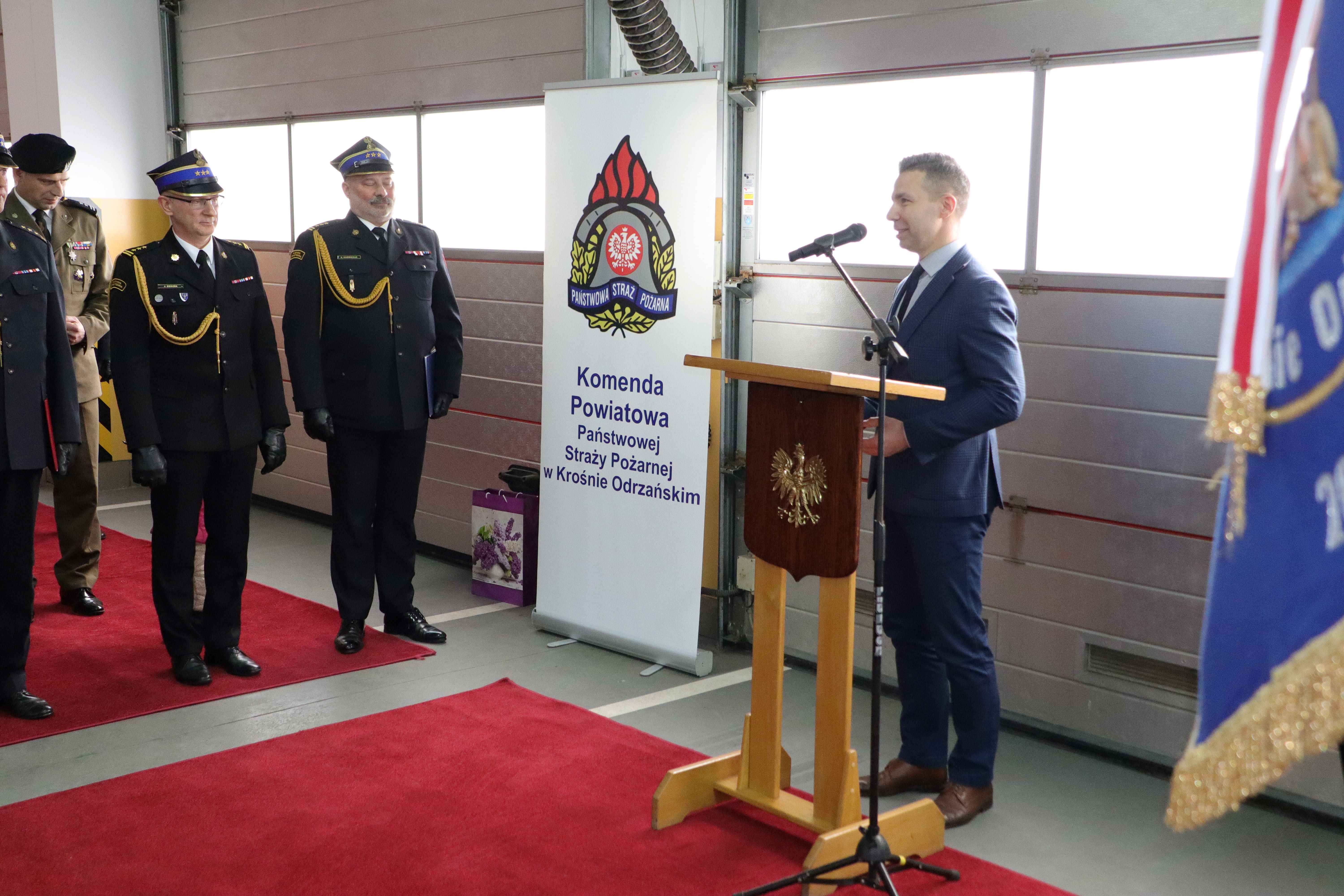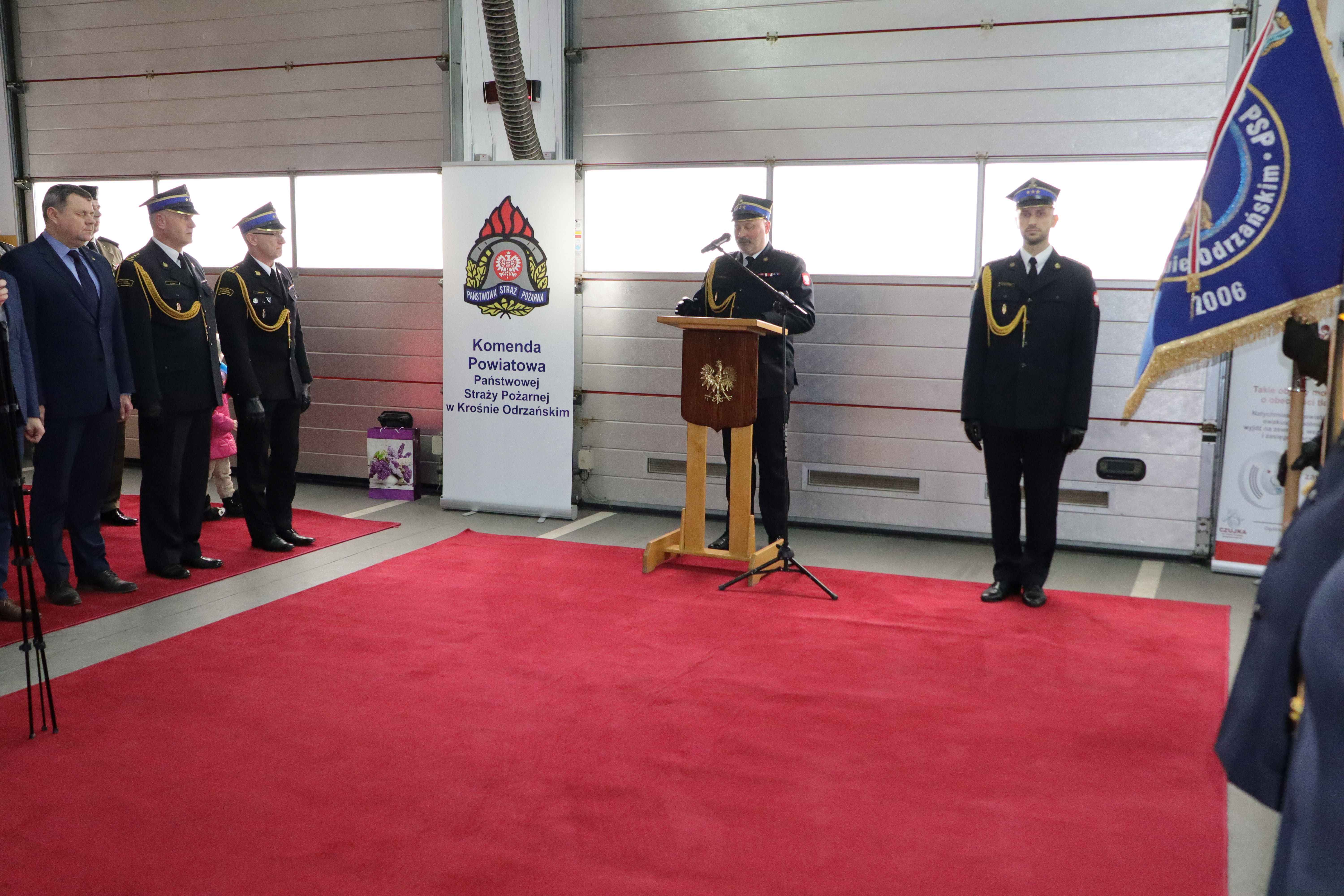 Uroczystość zgromadziła wielu znamienitych gości, delegacje służb mundurowych i współpracujących instytucji. Obecni byli również strażacy, pracownicy cywilni z Komendy Powiatowej PSP w Krośnie Odrzańskim, delegacja strażaków z KP PSP w Żarach oraz najbliższa rodzina.