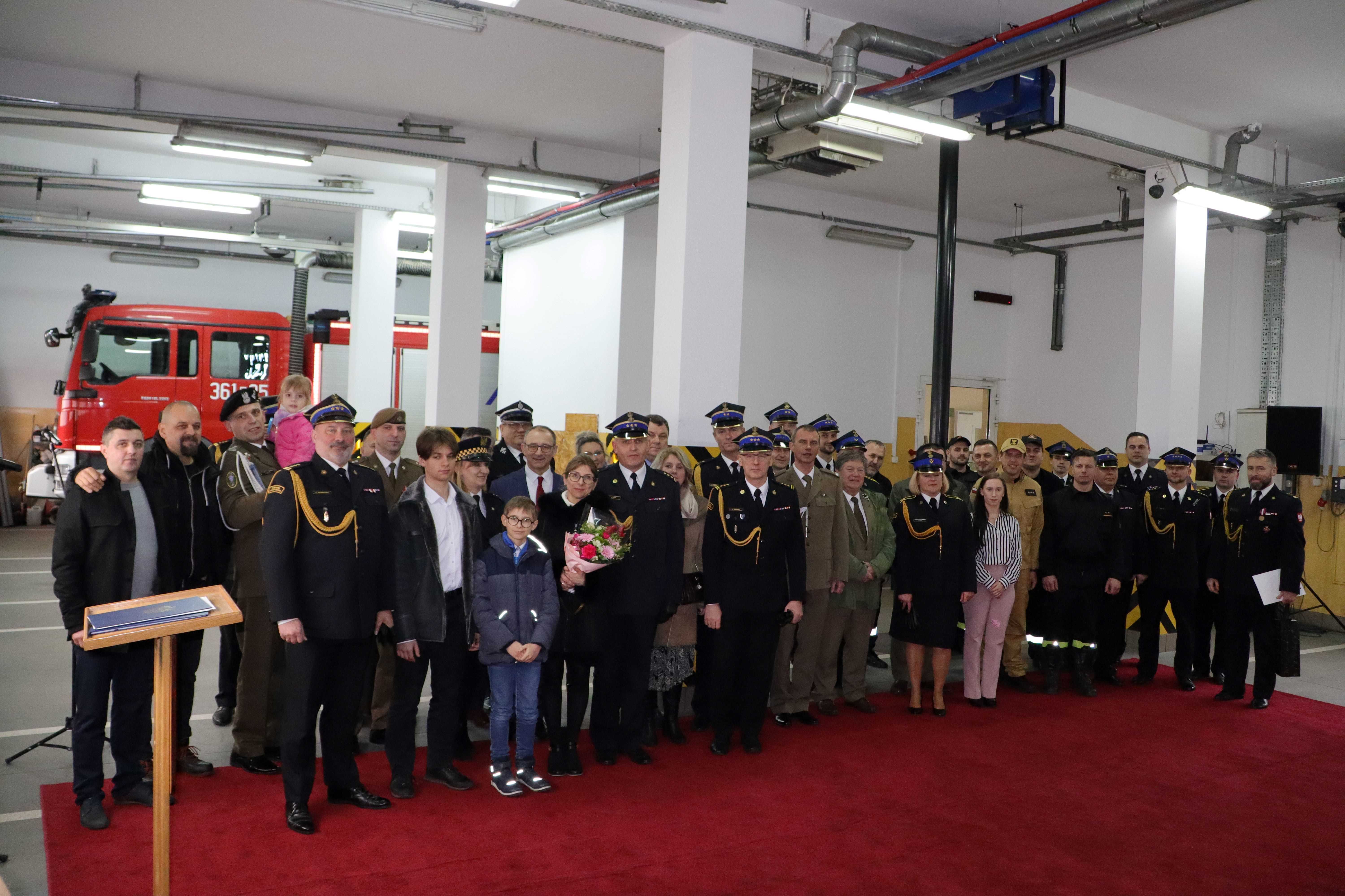 Podczas uroczystej zbiórki, podziękowano odchodzącemu oficerowi za wspólną, wieloletnią współpracę, doceniając jego profesjonalizm, zaangażowanie i duży wkład na rzecz służby w Państwowej Straży Pożarnej.