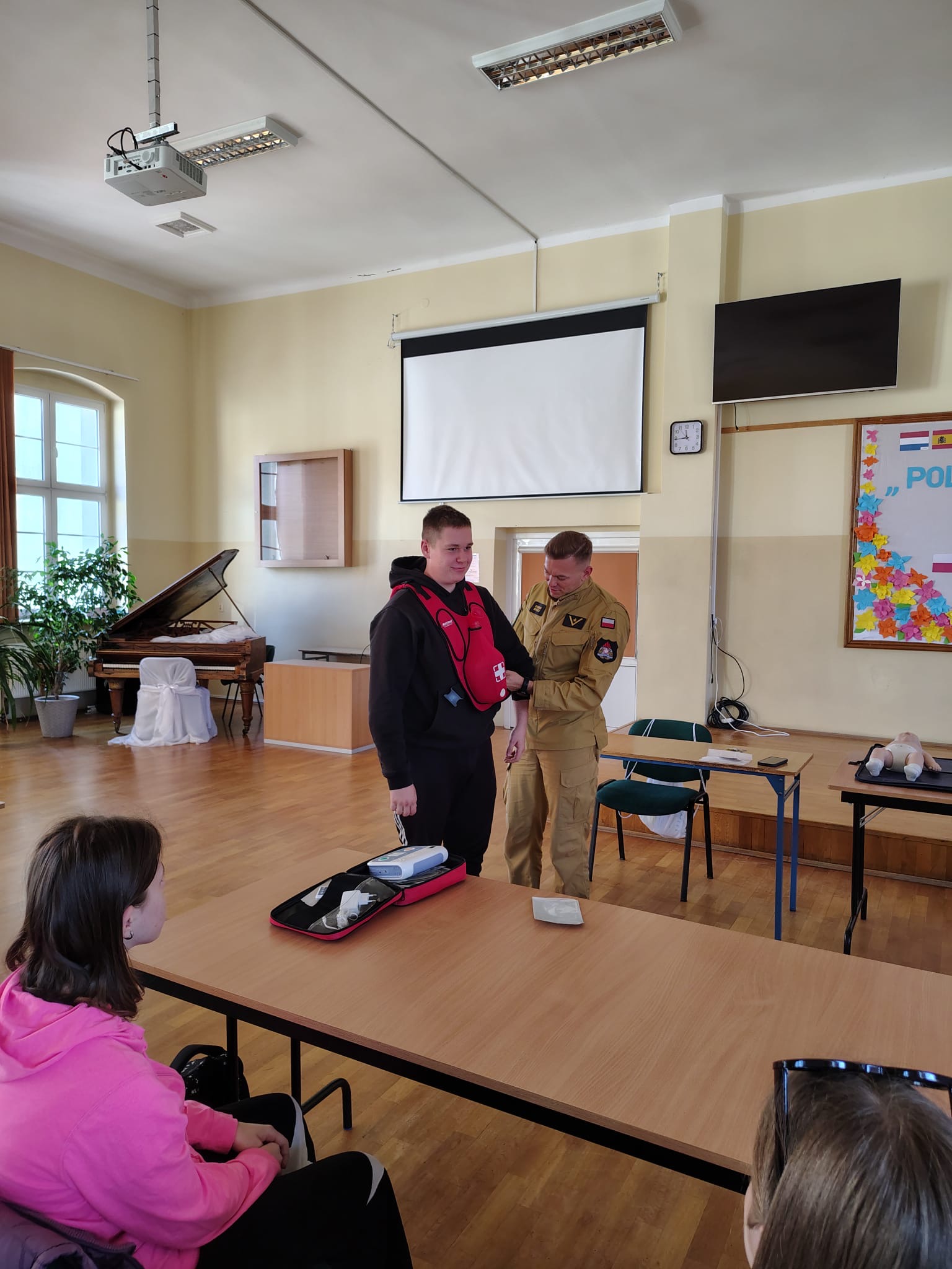 Podczas spotkania młodzież miała możliwość nie tylko zdobyć wiedzę teoretyczną, ale przede wszystkim praktycznie przećwiczyć udzielanie pierwszej pomocy – w tym resuscytację krążeniowo-oddechową (RKO), ułożenie poszkodowanego w pozycji bezpiecznej, tamowanie krwotoków oraz obsługę defibrylatora AED.