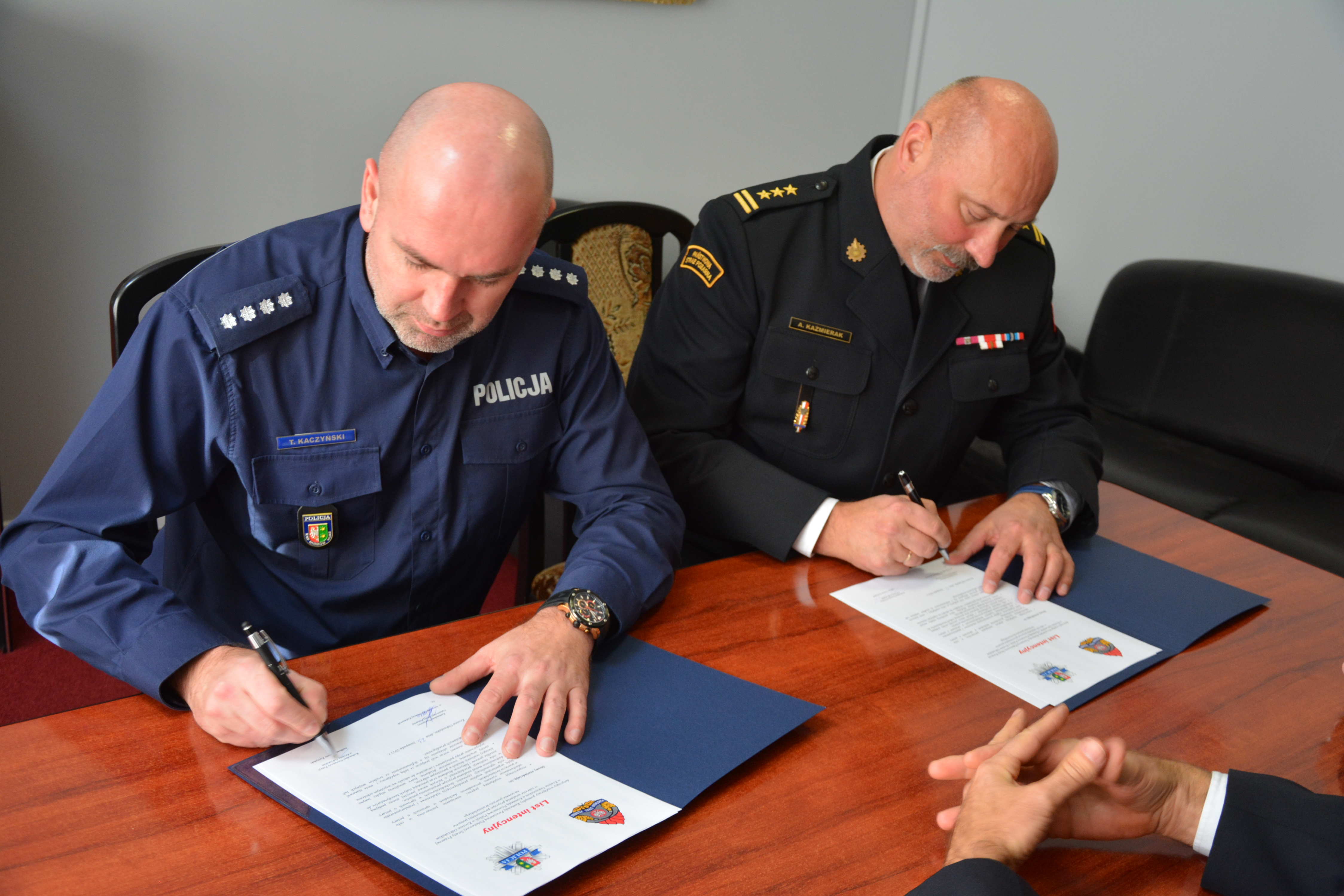 Dochodzenia popożarowe i związane z nimi ustalanie przyczyn powstania pożarów to obszar, w którym do skutecznego działania niezbędna jest wzajemna i sprawna współpraca strażaków i policjantów. Stąd też w dniu 23 listopada 2022 r. w Komendzie Powiatowej PSP w Krośnie Odrzańskim odbyło się spotkanie kierownictwa obu służb w zakresie wzajemnej współpracy w procesie ustalania przyczyn pożarów. Wolę wspólnych przedsięwzięć i zamierzeń w tym obszarze określili w podpisanym liście intencyjnym st. bryg. Andrzej Kaźmierak – Komendant Powiatowy Państwowej Straży Pożarnej w Krośnie Odrzańskim i nadkom. Tomasz Kaczyński – Komendant Powiatowy Policji w Krośnie Odrzańskim.