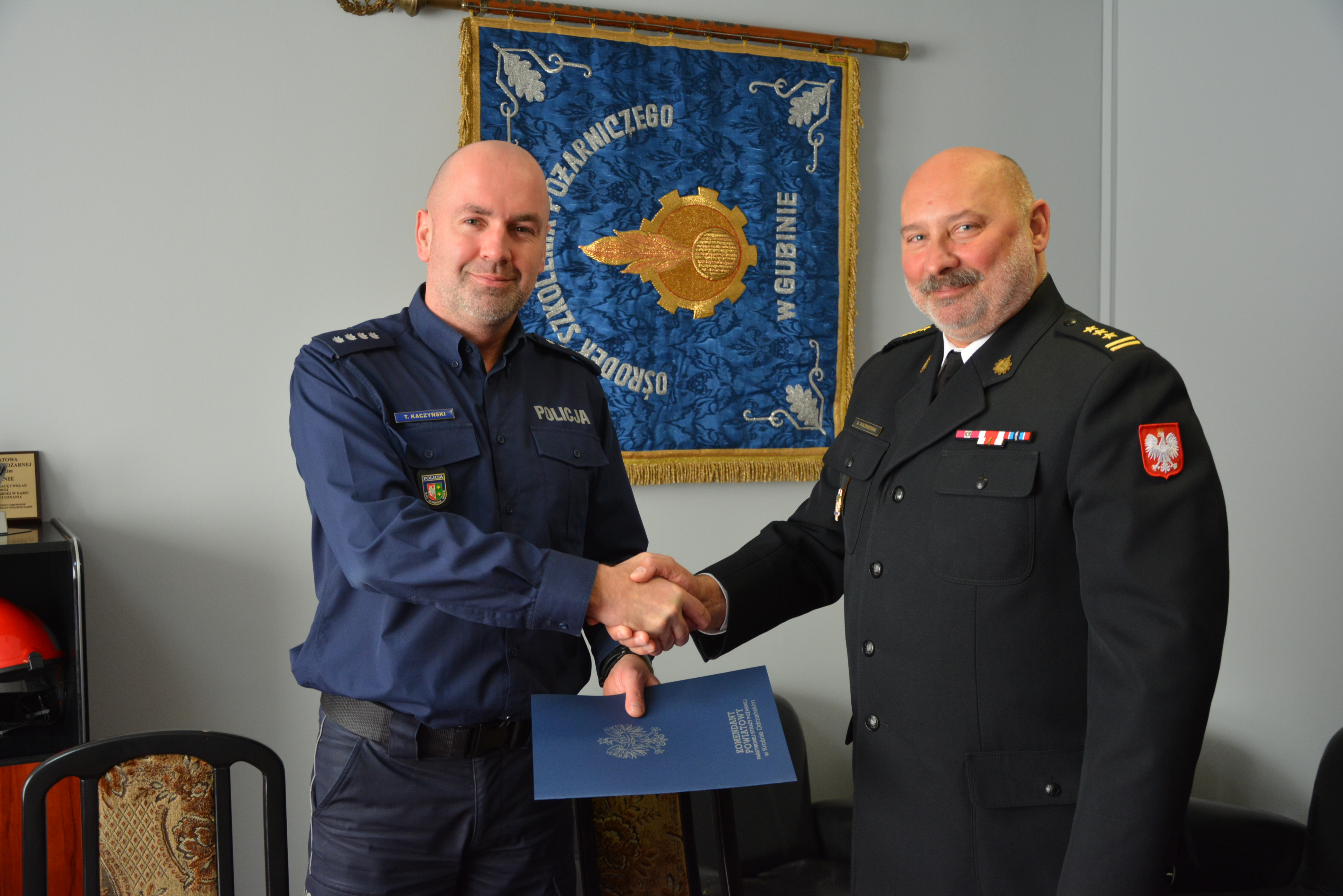 Współpraca służb Państwowej Straży Pożarnej z Policją w Krośnie Odrzańskim w zakresie ustalania przyczyn powstawania pożarów.