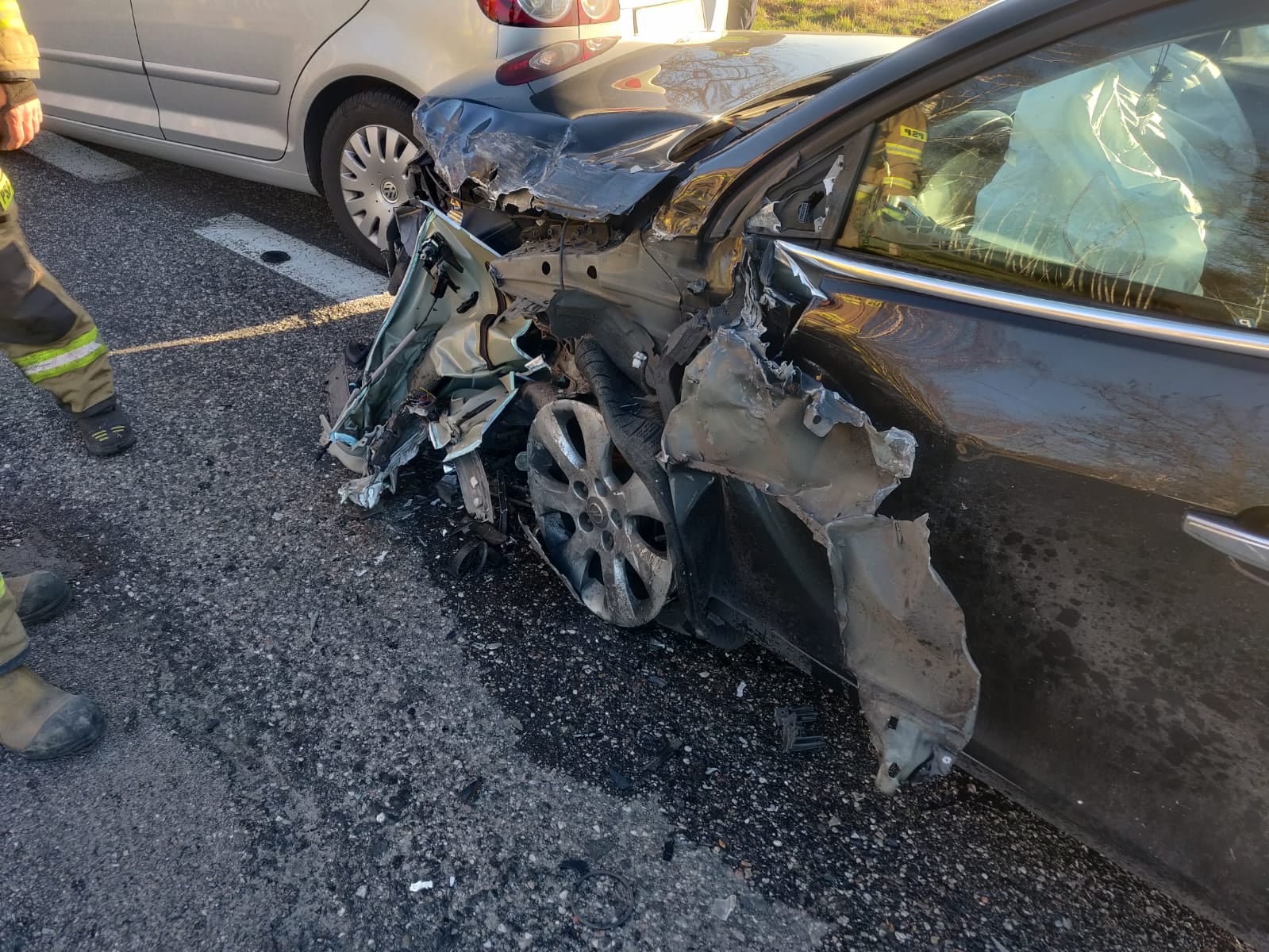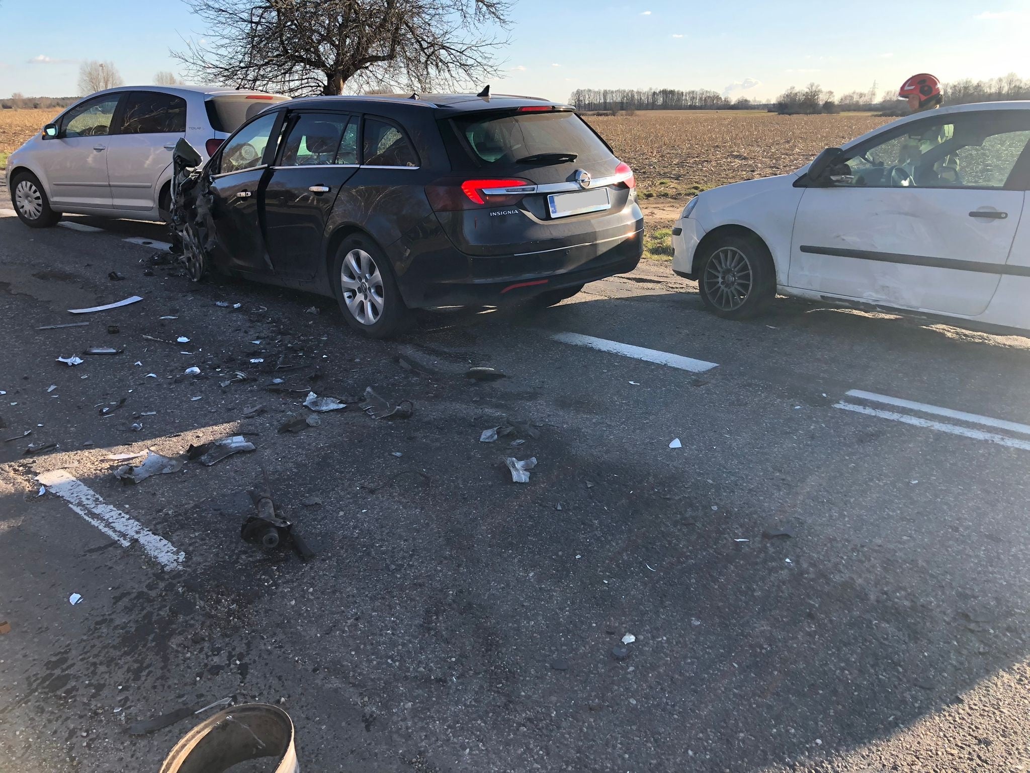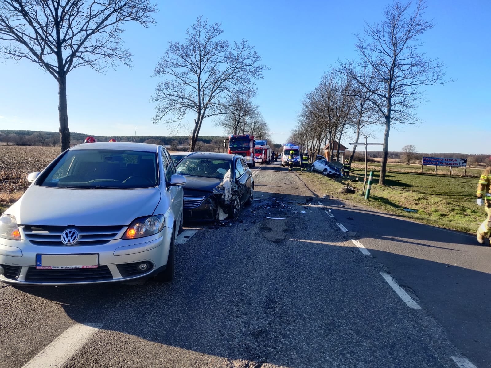 Strażacy po przybyciu na miejsce zdarzenia zastali wypadek samochodowy, w którym brały udział cztery samochody osobowe. Wszystkie osoby były przytomne znajdowały się poza wrakami samochodów.