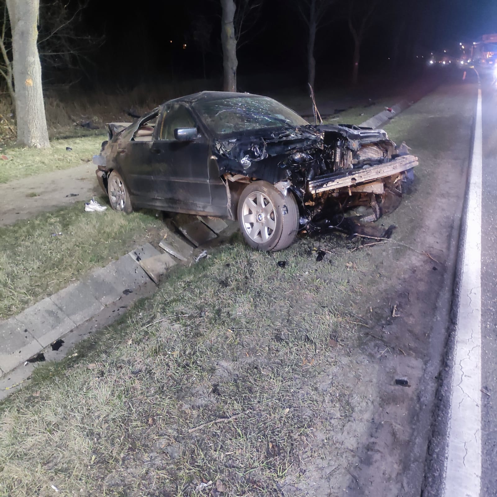 Strażacy po przybyciu na miejsce zdarzenia zastali rozbity samochód osobowy znajdujący się w pasie drogi krajowej. Niestety wskutek zdarzenia wszystkie trzy osoby podróżujące pojazdem doznały obrażeń.