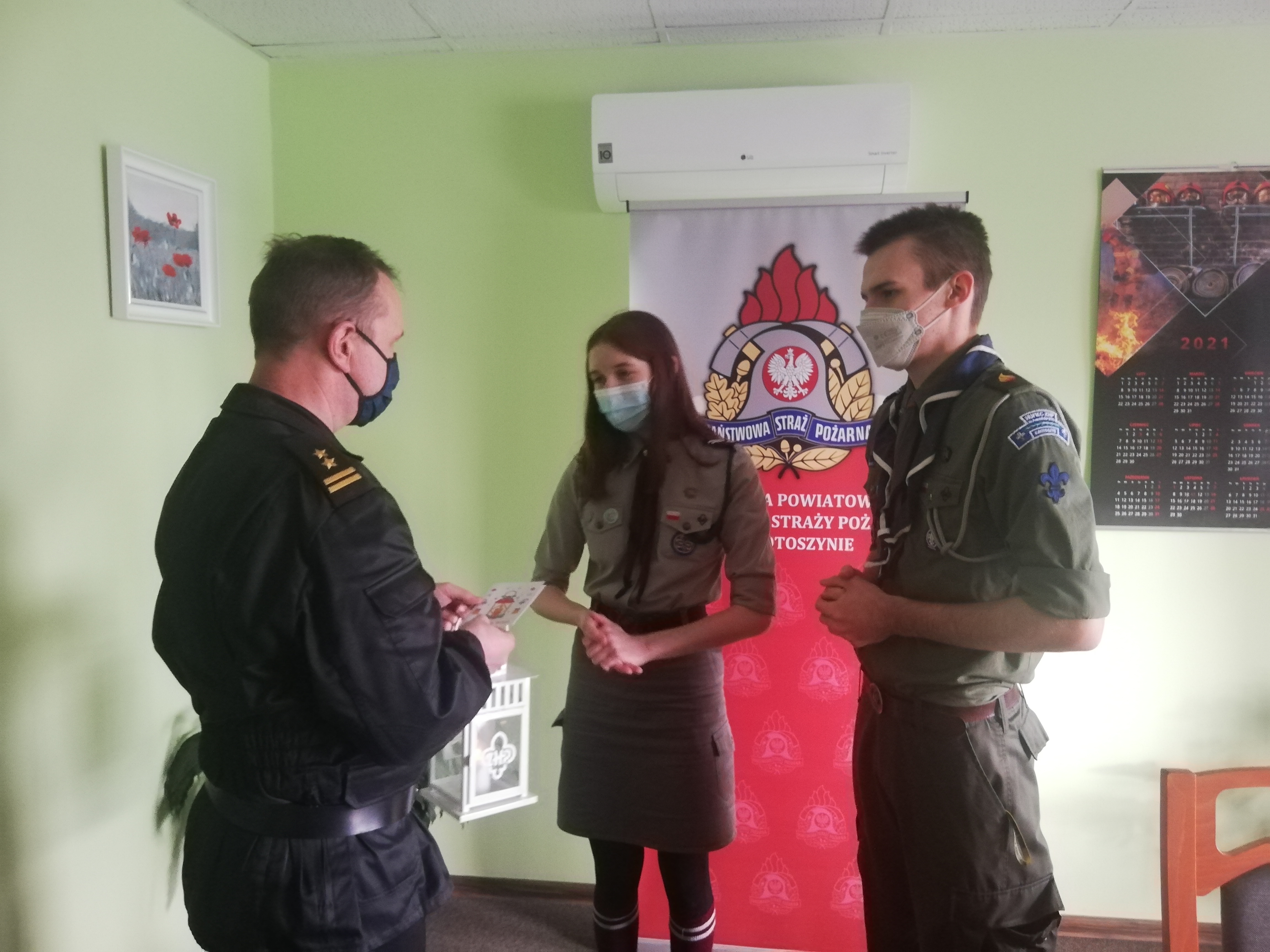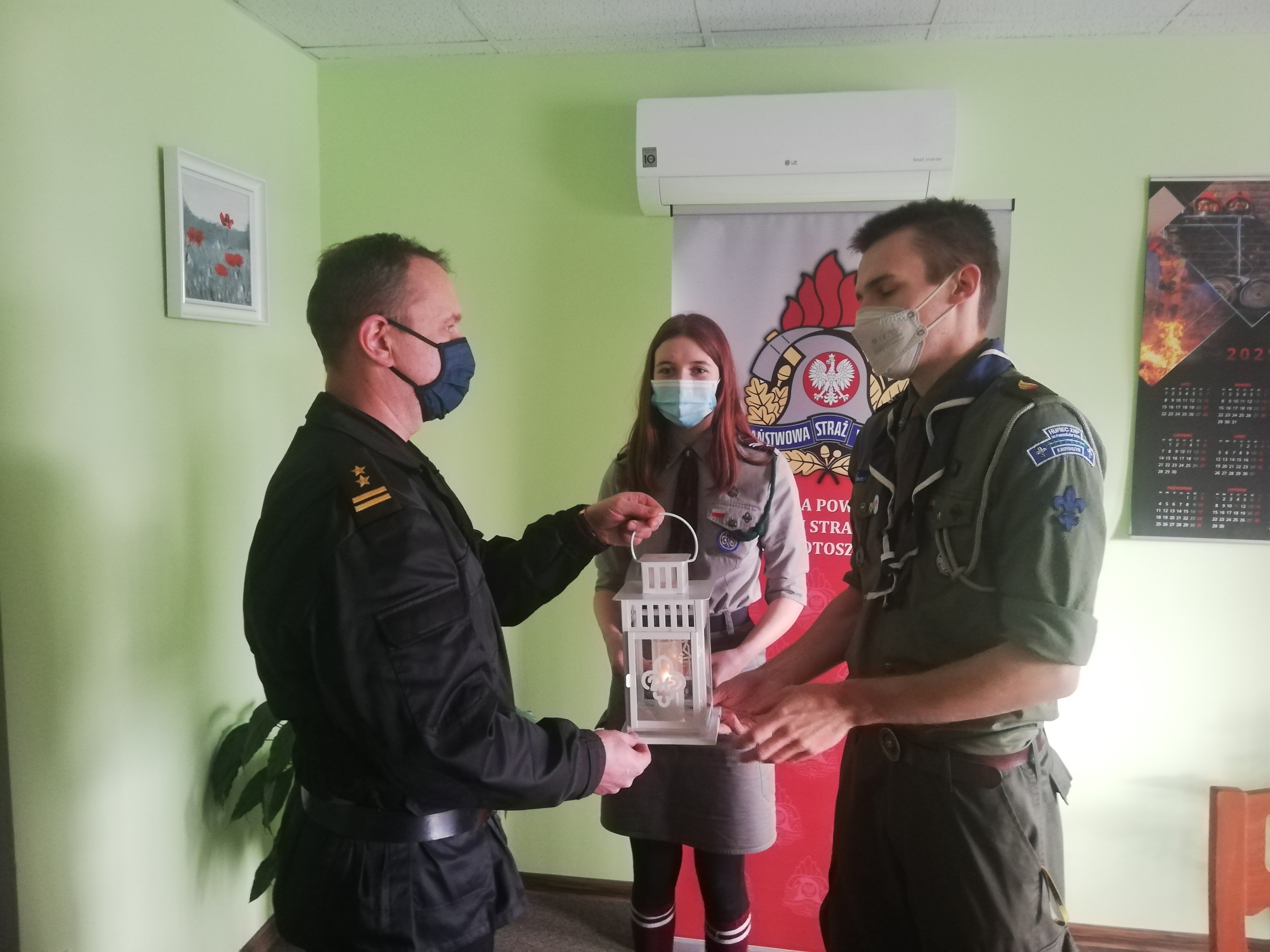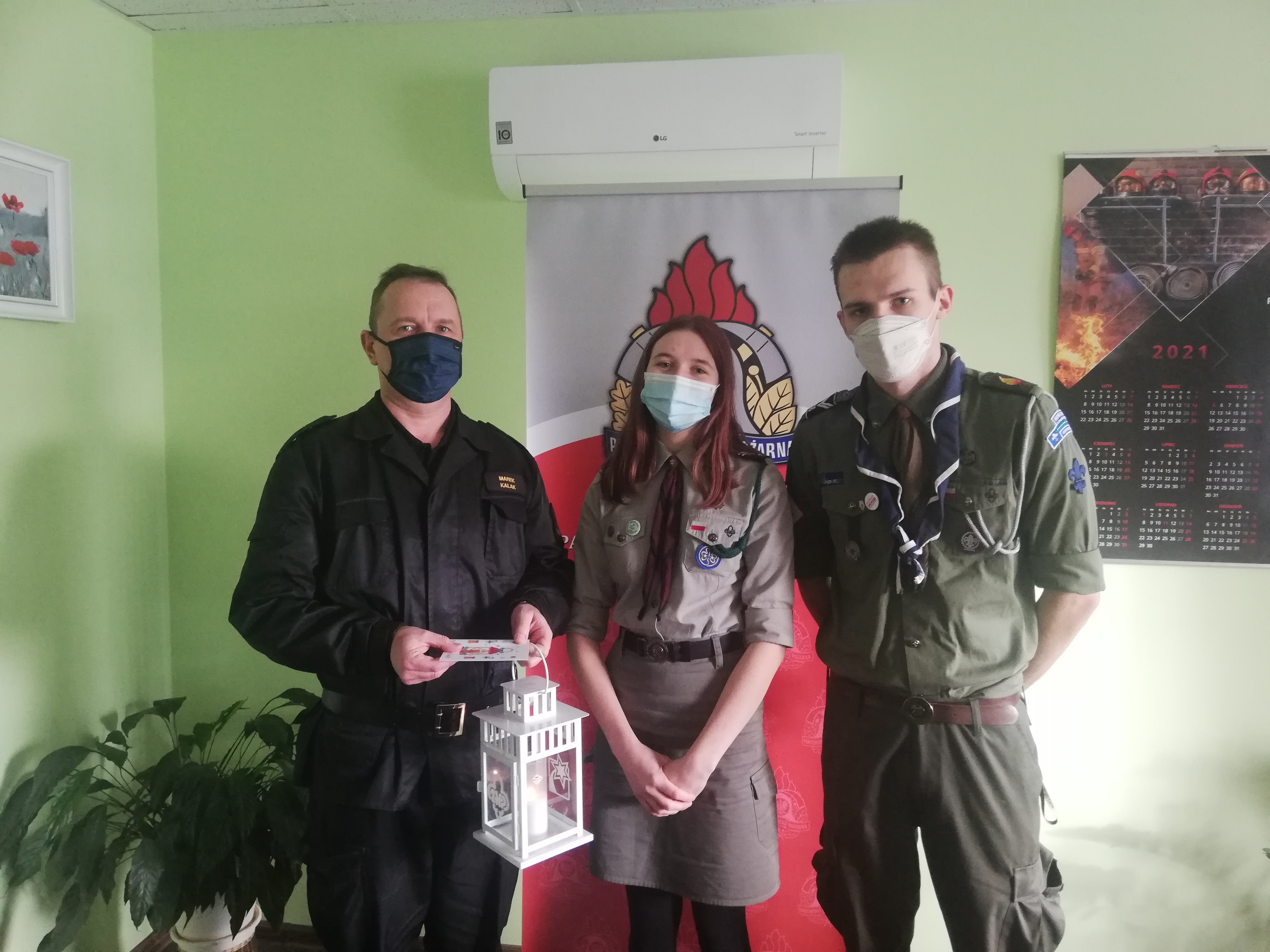 We wtorek 21 grudnia 2021 roku Harcerze z Hufca ZHP Krotoszyn odwiedzili siedzibę Komendy Powiatowej Państwowej Straży Pożarnej w Krotoszynie, aby przekazać krotoszyńskim strażakom lampion z Betlejemskim Światełkiem Pokoju.