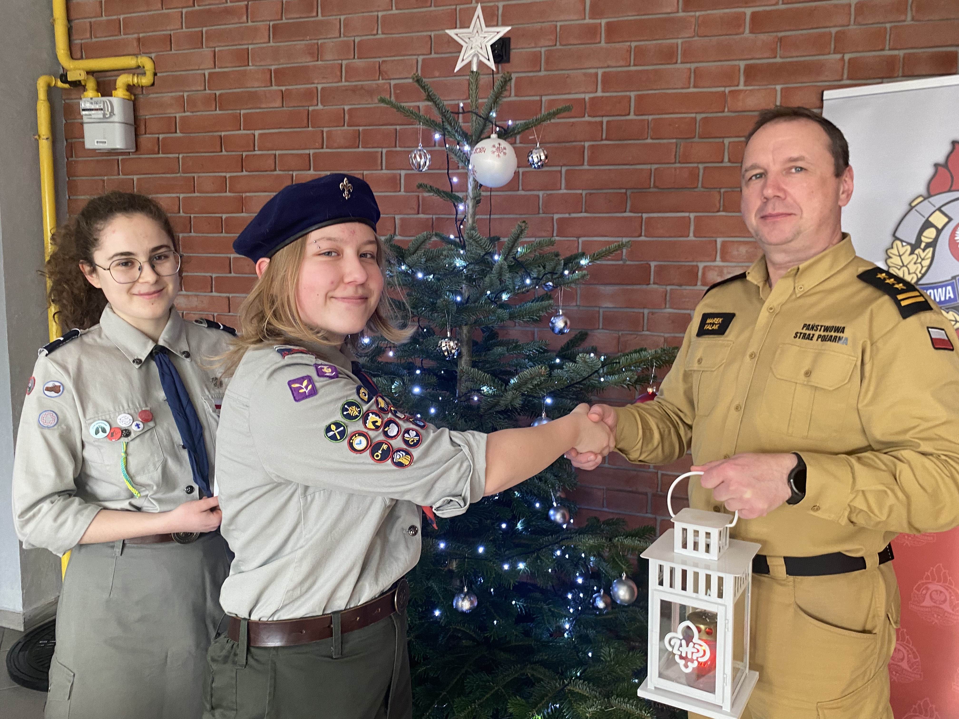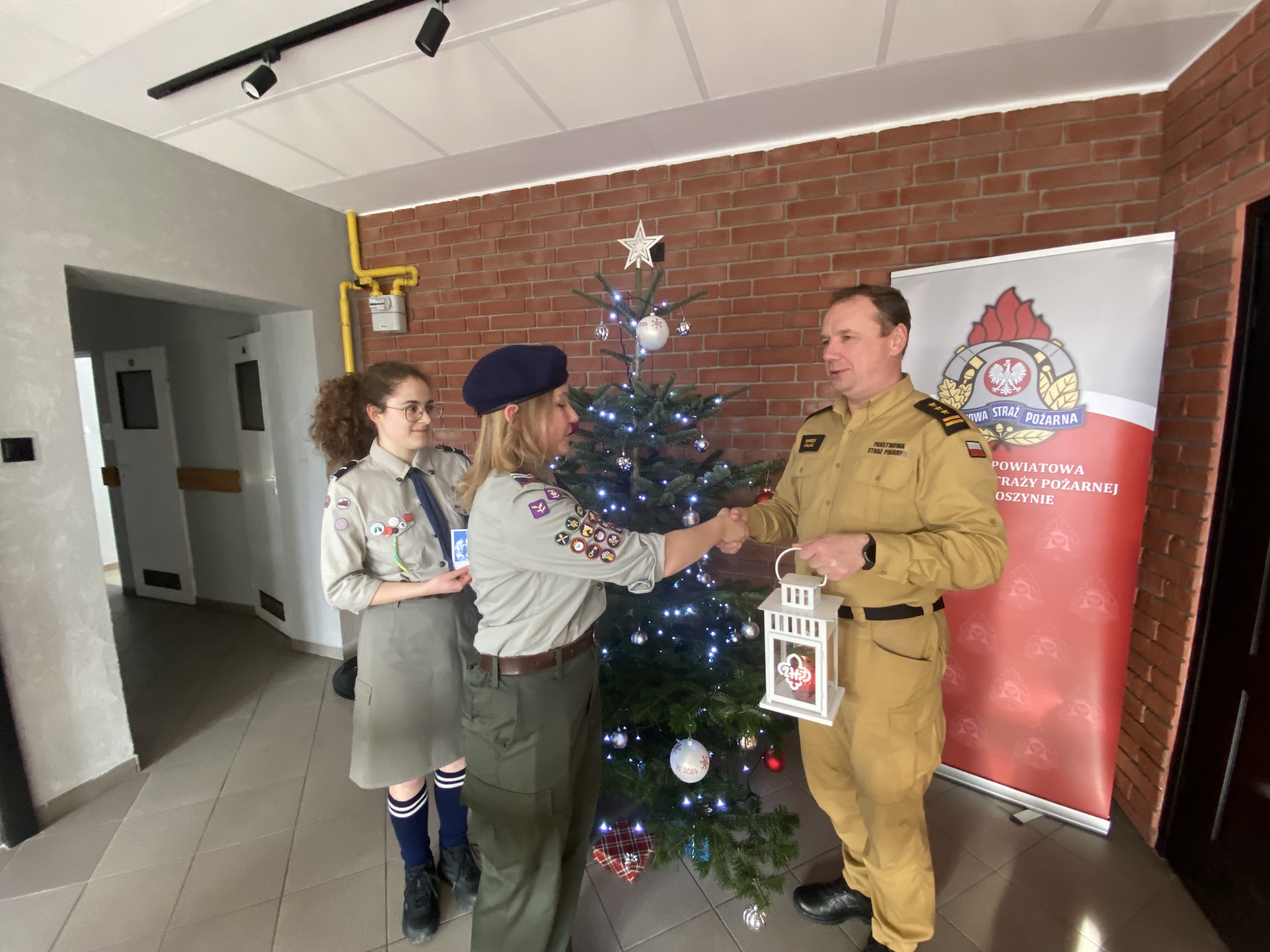 19 grudnia 2024 roku Harcerze z Hufca ZHP Krotoszyn odwiedzili siedzibę Komendy Powiatowej Państwowej Straży Pożarnej w Krotoszynie, aby przekazać krotoszyńskim strażakom lampion z Betlejemskim Światełkiem Pokoju.