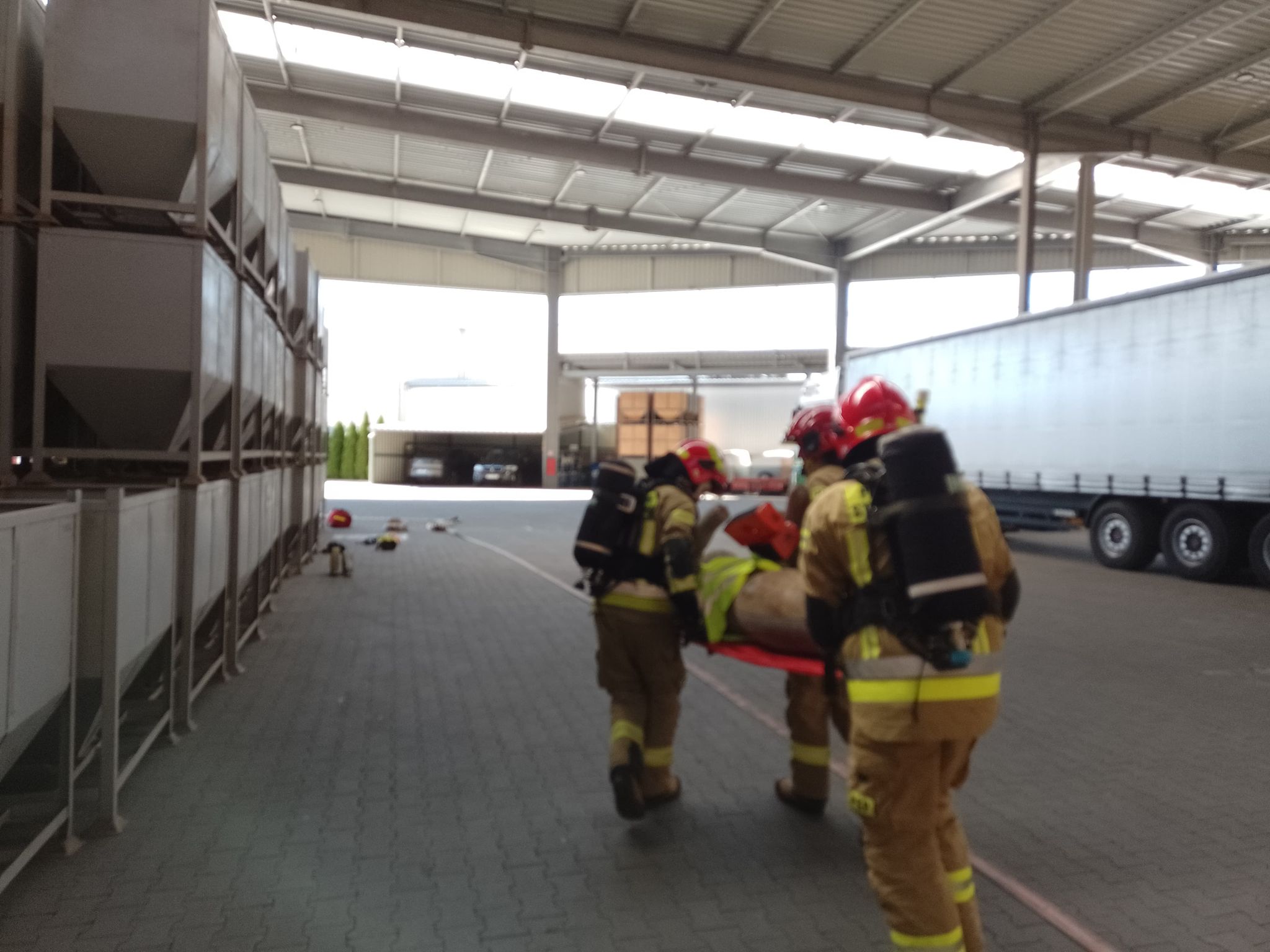 Strażacy ćwiczyli według opracowanego scenariusza, który przewidywał wypadek wózka widłowego podczas transportu kontenera wypełnionego materiałem siewnym. Operator wózka widłowego źle się poczuł i stracił przytomność, a prowadzony przez niego pojazd zmienił kierunek poruszania się i uderzył w rozdzielnię elektryczną, przy której w tym czasie elektryk prowadził prace konserwatorskie. W wyniku tego zdarzenia ranny elektryk został przygnieciony przez metalowy pojemnik, a na skutek uderzenia w rozdzielni doszło do zwarcia instalacji elektrycznej i zadymienia. Zainstalowany na terenie zakładu system sygnalizacji pożaru wywołał alarm pożarowy. W celu sprawdzenia reakcji pracowników zakładu na zagrożenie wykorzystano środki pozoracji w postaci generatora dymu estradowego oraz manekina ćwiczebnego.