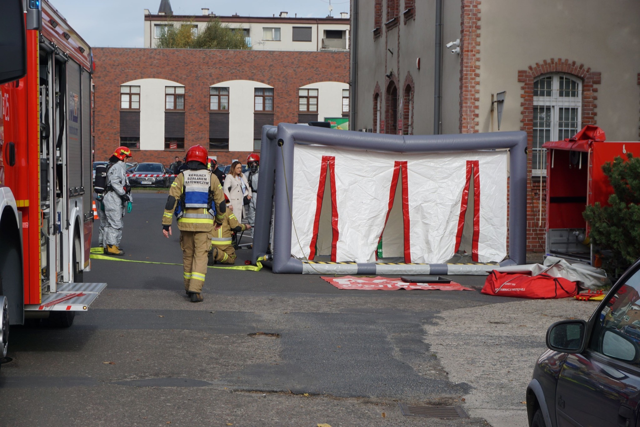 Ćwiczenia obronne w Starostwie Powiatowym z udziałem krotoszyńskich strażaków