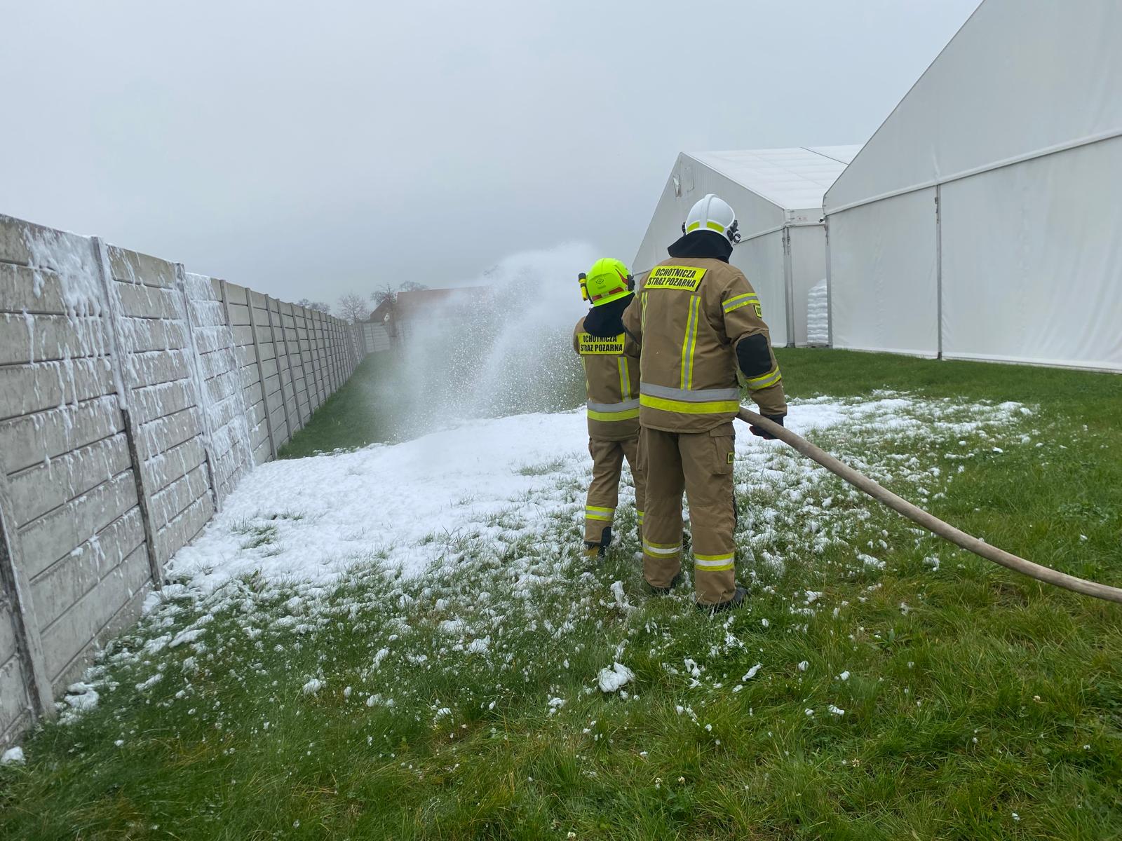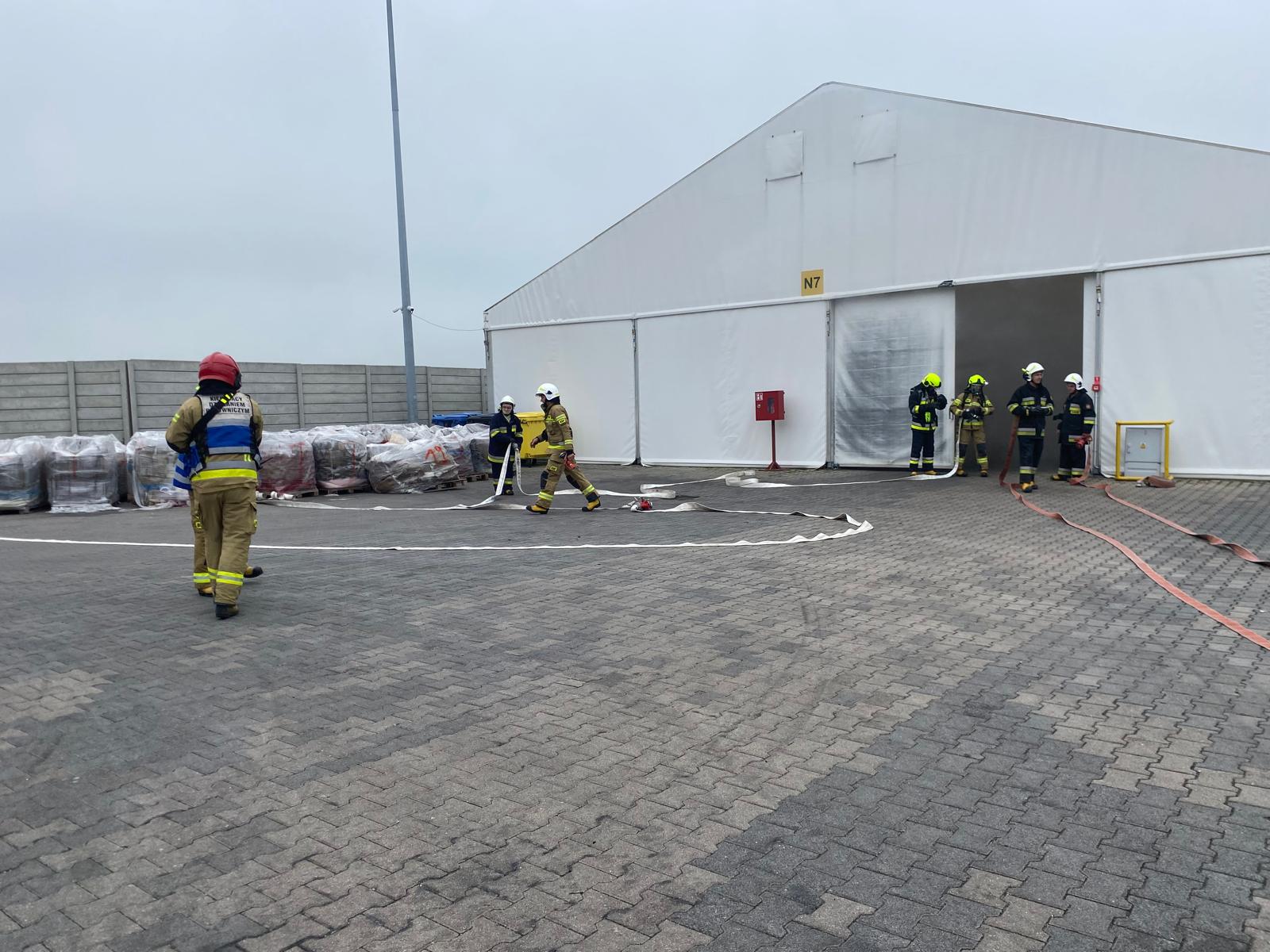 Scenariusz ćwiczeń zakładał pożar wielkopowierzchniowej namiotowej hali magazynowej zlokalizowanej na terenie zakładu, z jedną osobą poszkodowaną wewnątrz obiektu. Przedsięwzięcie miało na celu przede wszystkim ugruntowanie wiedzy i umiejętności w zakresie działań na tego typu obiektach, dostarczania wody na duże odległości z użyciem dostępnego sprzętu, umiejętnej obsługi autopomp i armatury wodno-pianowej, właściwej organizacji terenu akcji oraz organizacji łączności.