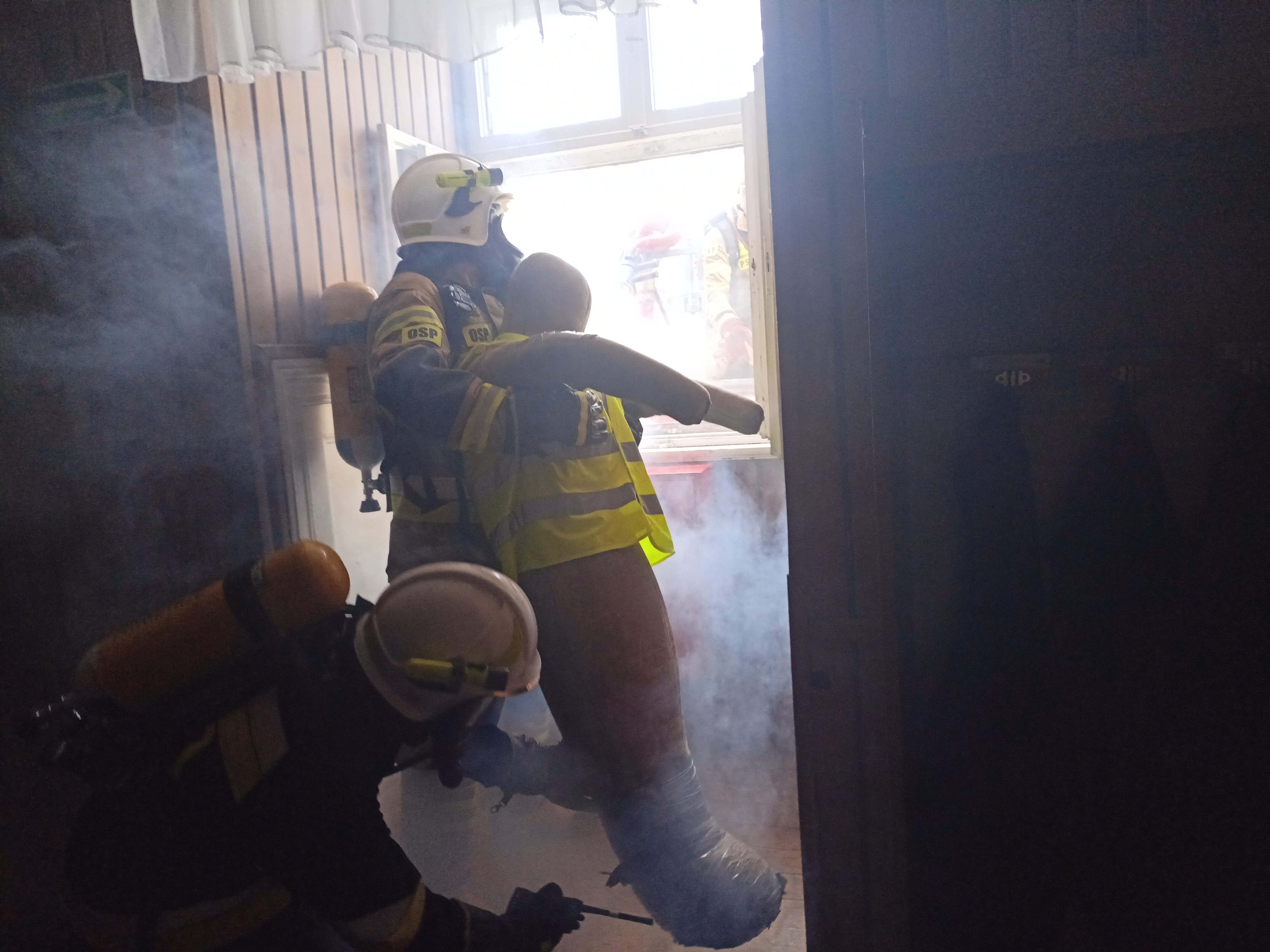 Zadaniem ćwiczących zastępów po dotarciu na miejsce było określenie ilości osób przebywających w strefie zagrożenia następnie dotarcie do nich i ewakuowanie ich na zewnątrz oraz likwidacja zagrożenia. Strażacy wewnątrz odnaleźli dwie osoby, które najprawdopodobniej podejmowały próbę ugaszenia pożaru przy pomocy podręcznego sprzętu gaśniczego. Niestety rozwijający się pożar odciął im drogę ewakuacyjną. Jedna osoba została ewakuowana na zewnątrz przy wykorzystaniu kaptura ratunkowego, a drugą osobę strażacy ewakuowali z przy pomocy kosza podnośnika hydraulicznego.