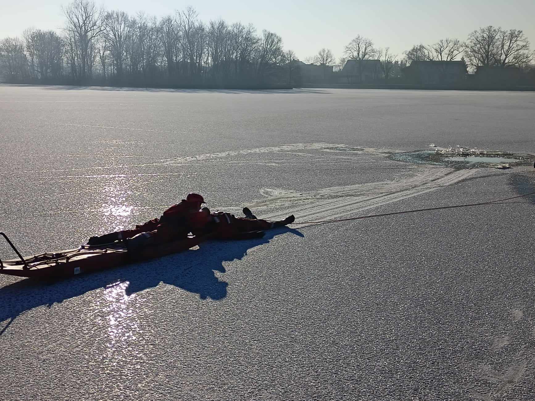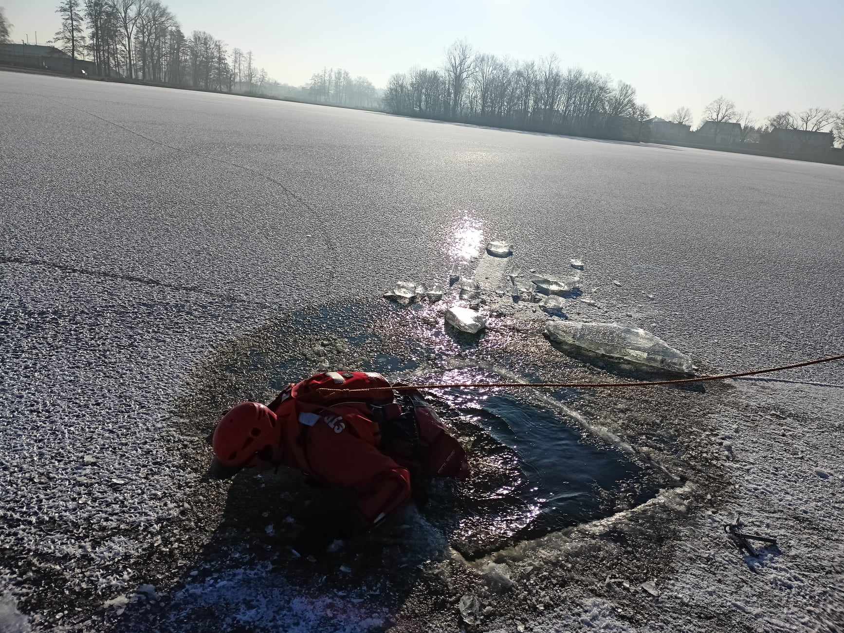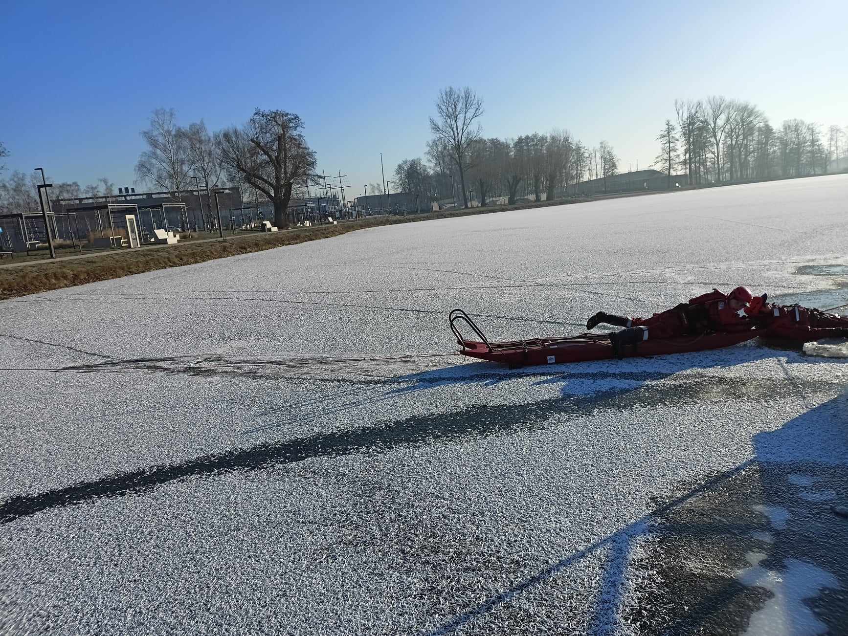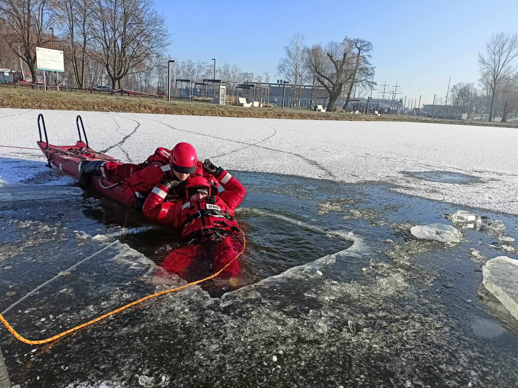 Korzystając z zimowej aury strażacy z Jednostki Ratowniczo Gaśniczej PSP w Krotoszynie, w ramach doskonalenia zawodowego przeprowadzili cykl ćwiczeń praktycznych z zakresu ratownictwa lodowego na terenie zamarzniętego zbiornika wodnego w Krotoszynie.