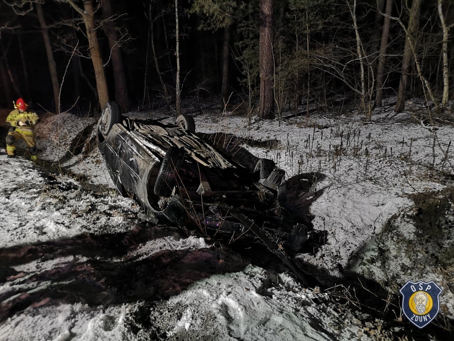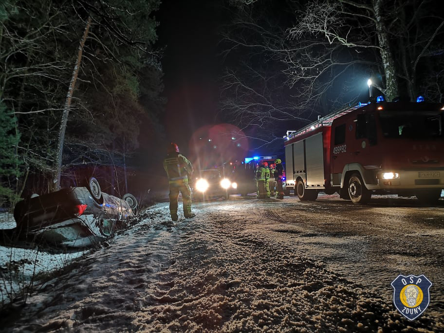 Po dotarciu na miejsce zdarzenia w wyniku przeprowadzonego rozpoznania ustalono, że samochód osobowy znajduje się w rowie w pozycji na dachu. Pojazdem podróżowała jedna osoba, która w momencie przybycia na miejsce zdarzenia jednostek ochrony przeciwpożarowej znajdowała się na zewnątrz.