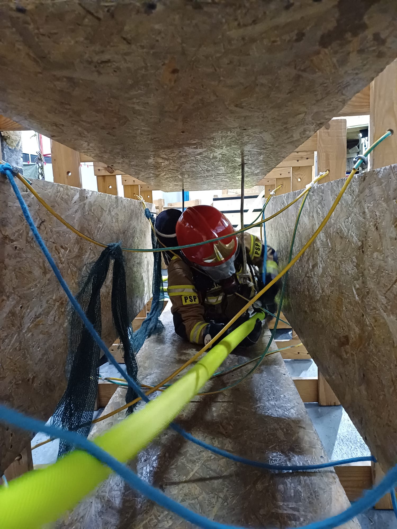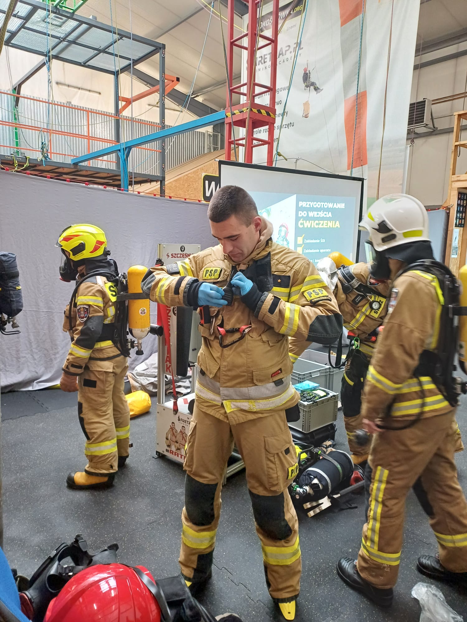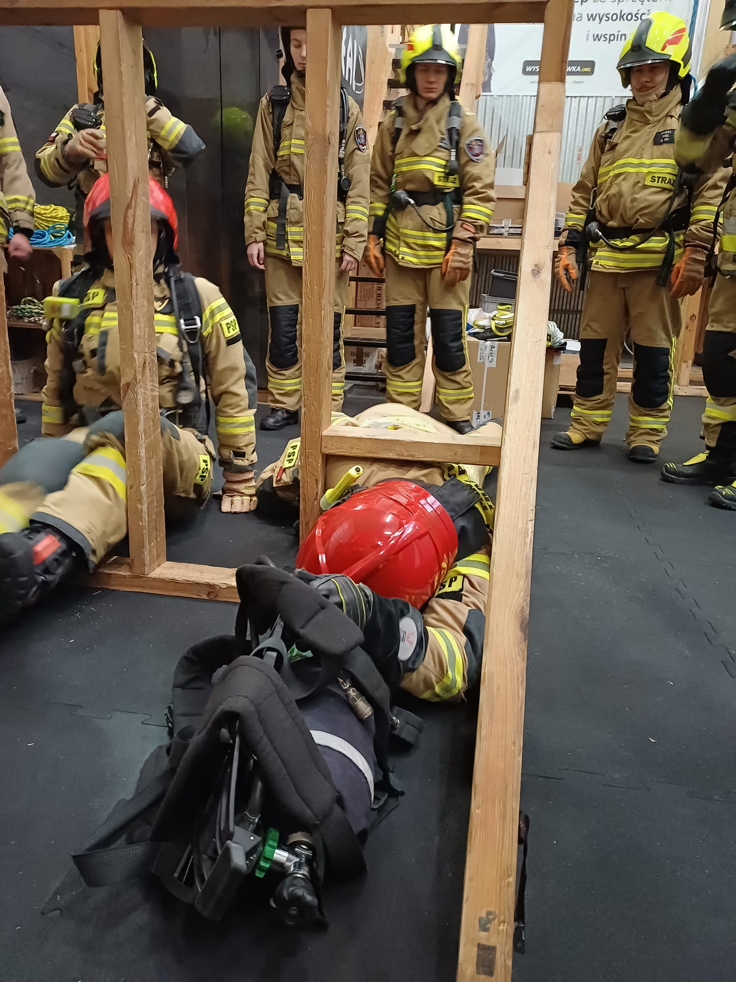 Ciekawym etapem szkolenia było także użycie właściwych technik ewakuacji ze strefy zagrożenia przez okna i wąskie przestrzenie oraz umiejętne pokonywanie przeszkód typu: liny, kable itp. Na finalnym etapie szkolenia, zaplanowano tor przeszkód, który okazał się bardzo wymagającym wyzwaniem dla uczestników. Na tym etapie strażacy mieli okazję zweryfikować swoją wiedzę i umiejętności nabyte w trakcje szkolenia.