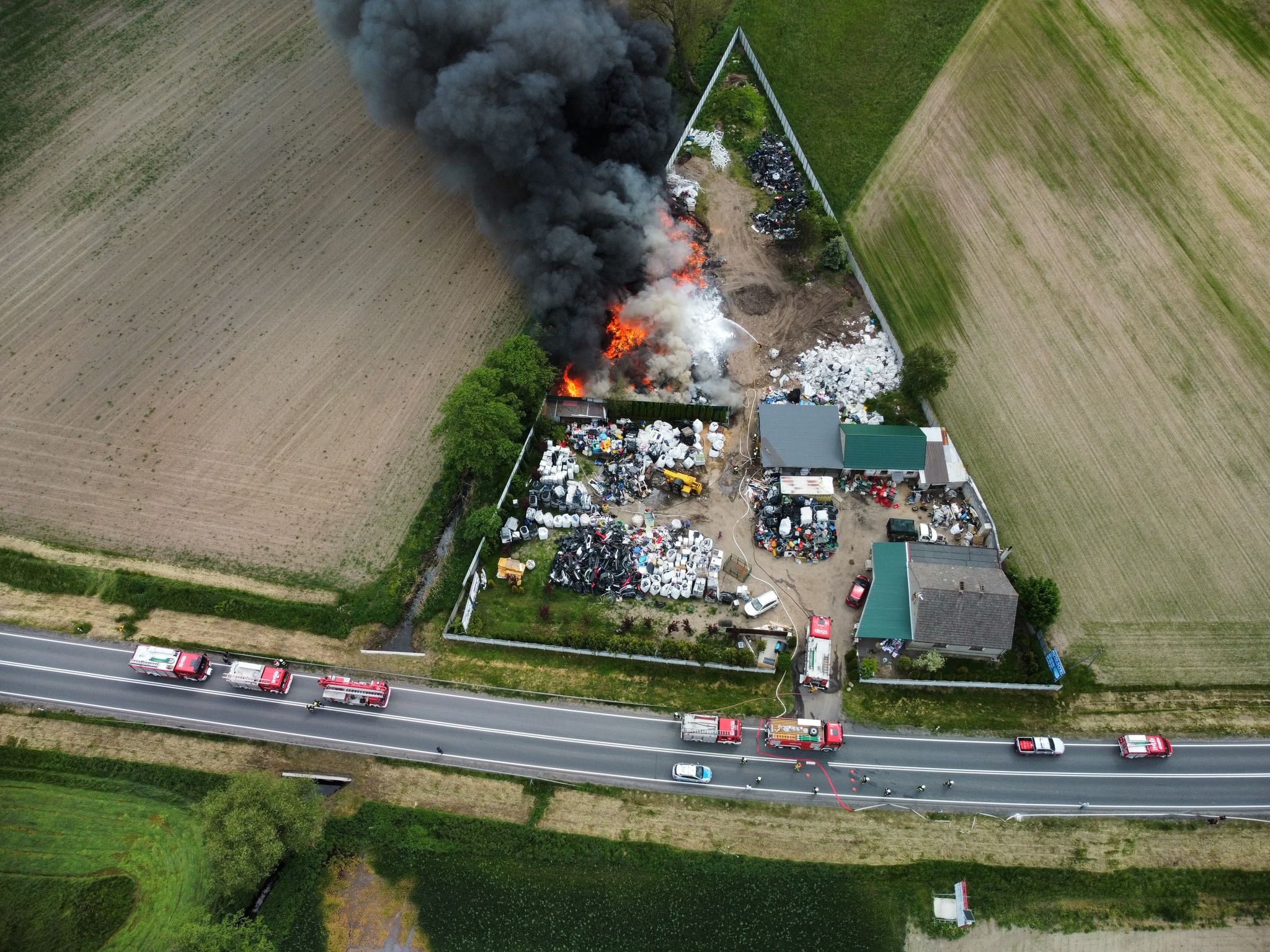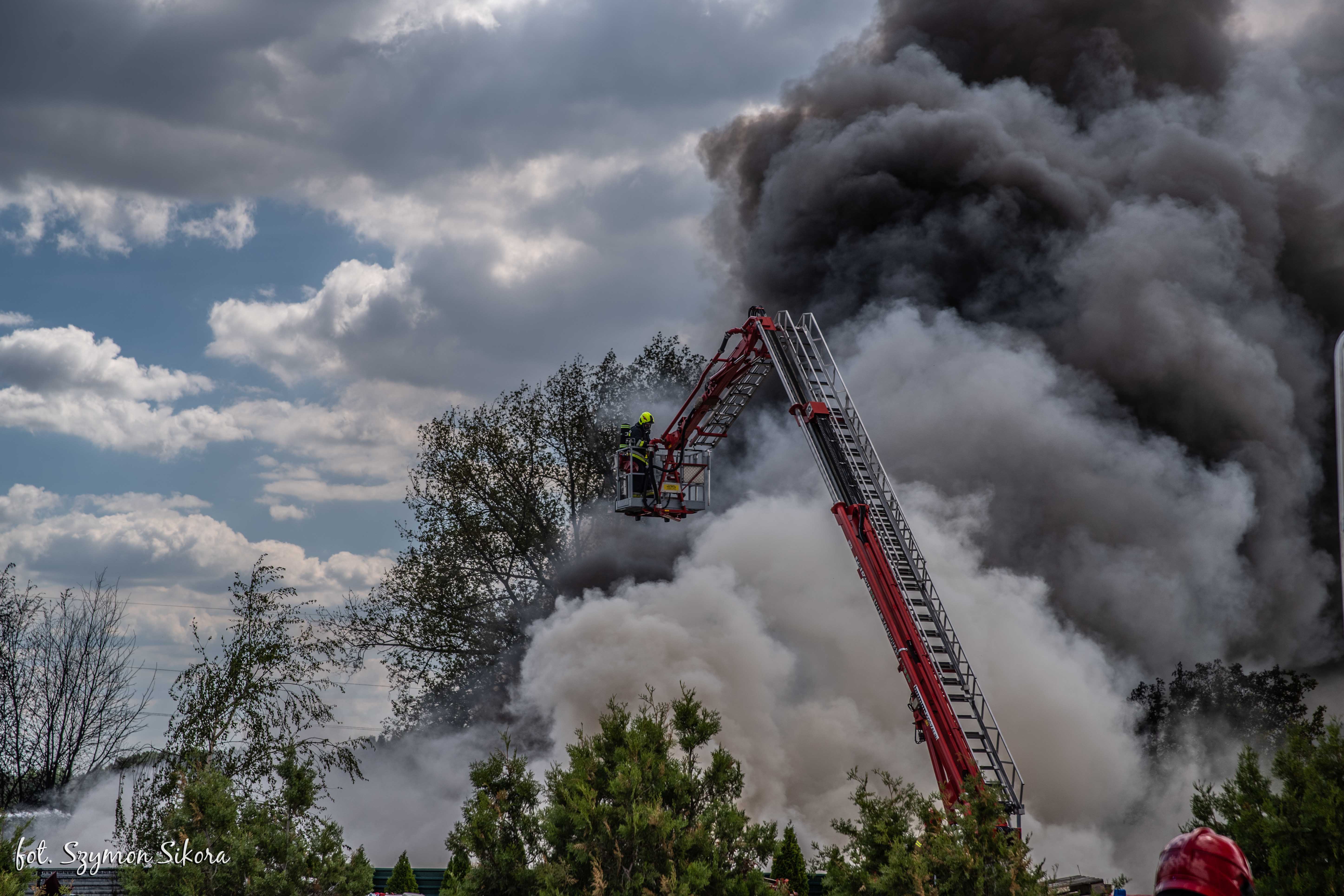 Już w trakcie dojazdu pierwszych zastępów widoczny z kilku kilometrów słup czarnego, gęstego dymu wskazywał na potrzebę zadysponowania dodatkowego sprzętu izolującego OUO, dlatego do działań skierowany został specjalny ratowniczy kontener ze sprzętem OUO z KP PSP w Ostrowie Wielkopolskim.