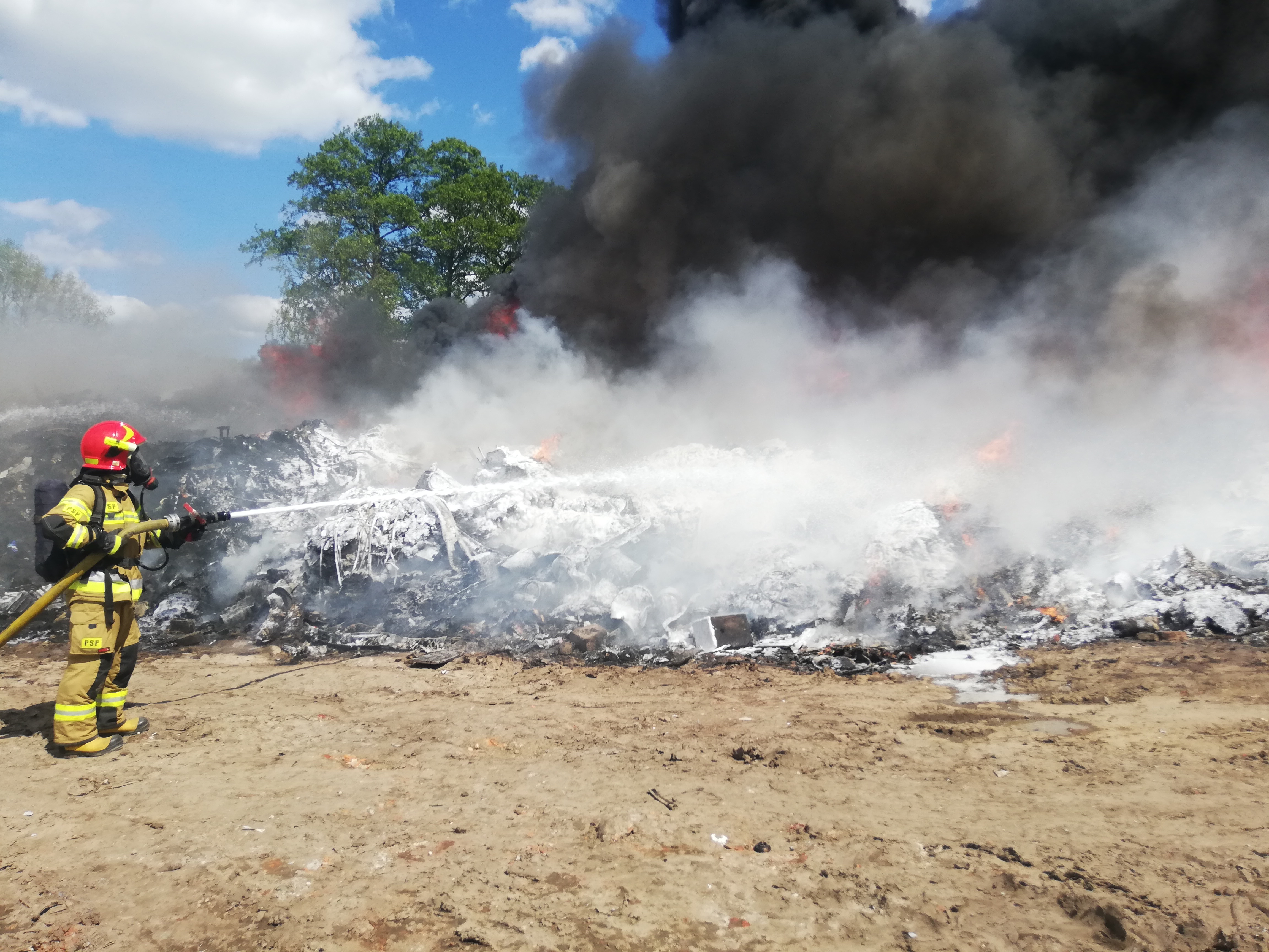 DUŻY POŻAR SKŁADOWISKA ODPADÓW W LUTOGNIEWIE
