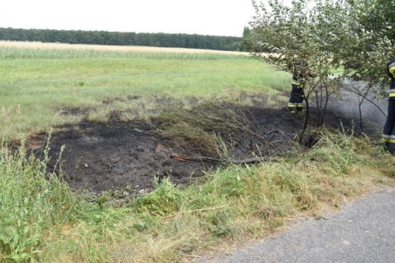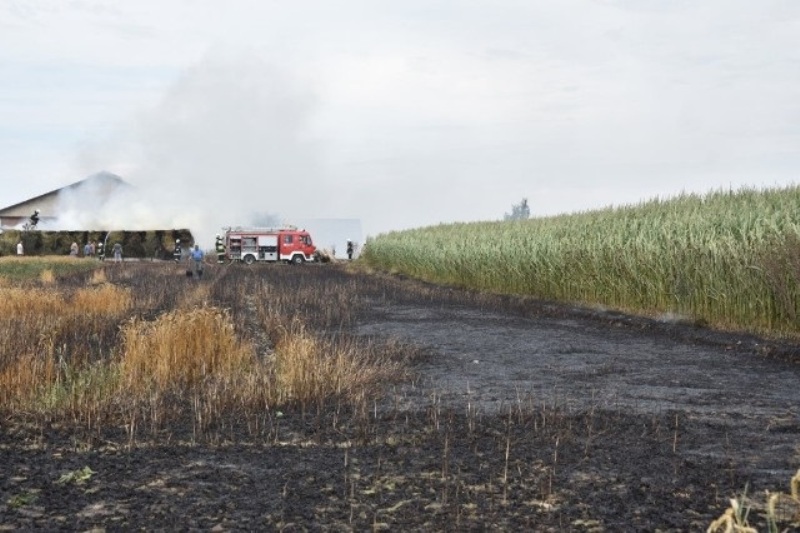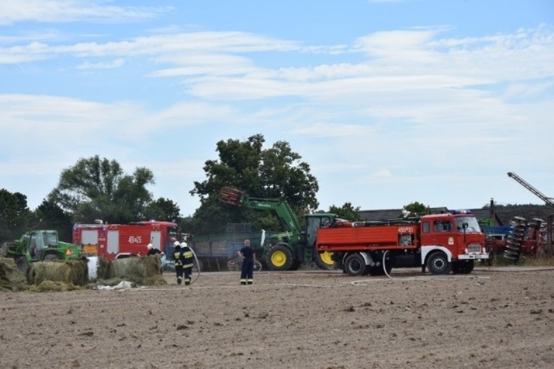 Już podczas dojazdu pierwszych zastępów ustalono, że we wskazanej przez zgłaszającego lokalizacji widoczne są dwa ogniska pożaru usytuowane w różnych punktach. Ogień objął suchą trawę i gałęzie na poboczu drogi oraz zboże na pniu, stertę balotów z sianem i pryzmę obornika na terenie gospodarstwa rolnego, dlatego celem ograniczenia rozprzestrzeniania się pożaru, który zagrażał obiektom rolniczym, na miejsce skierowano dużą ilość sił i środków. Na szczęście w zdarzeniu nikt nie został poszkodowany.