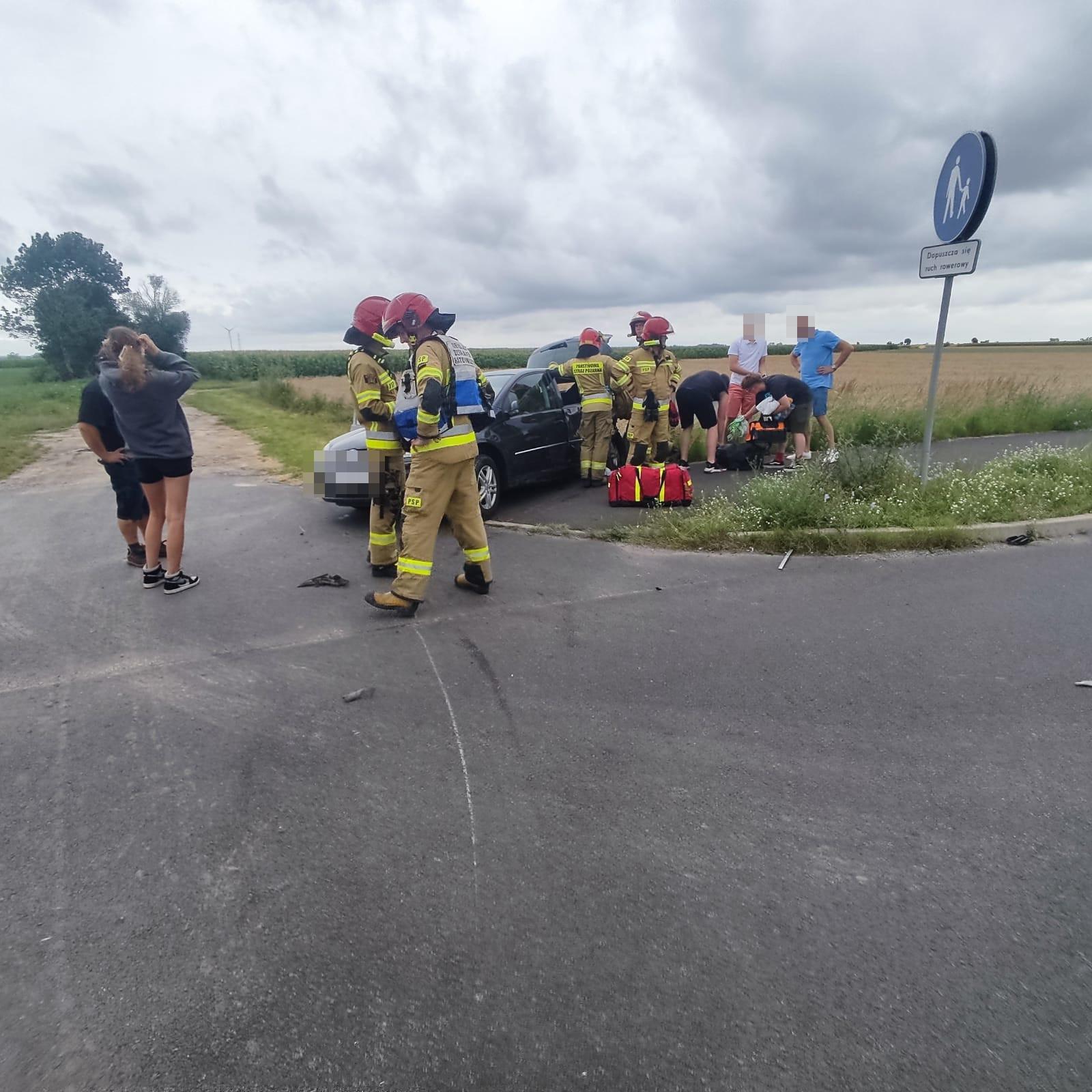 Strażacy po zabezpieczeniu terenu działań dokonali oceny stanu uczestników zdarzenia, udzielając osobom poszkodowanym kwalifikowanej pierwszej pomocy adekwatnej do poniesionych obrażeń. Po dojeździe zespołu ratownictwa medycznego i wykonaniu szerszej diagnostyki w karetce pogotowia dwóch uczestników zdarzenia zostało przetransportowanych do szpitalnego oddziału ratunkowego. W tym samym czasie zabezpieczono uszkodzone środki transportu i odłączono akumulatory. Po zakończeniu czynności dochodzeniowych realizowanych przez funkcjonariuszy Policji pojazd blokujący drogę został odholowany przez pomoc drogową. Celem przywrócenia ruchu całą szerokością jezdni przy pomocy podręcznego sprzętu burzącego usunięto elementy karoserii samochodowej oraz wycieki płynów eksploatacyjnych. Czynności te zrealizowano przy pomocy sorbentu oraz podręcznego sprzętu burzącego. Po całkowitej likwidacji zagrożenia działania trwające łącznie 02 godziny i 24 minuty zakończono i zastępy powróciły do miejsca stacjonowania.