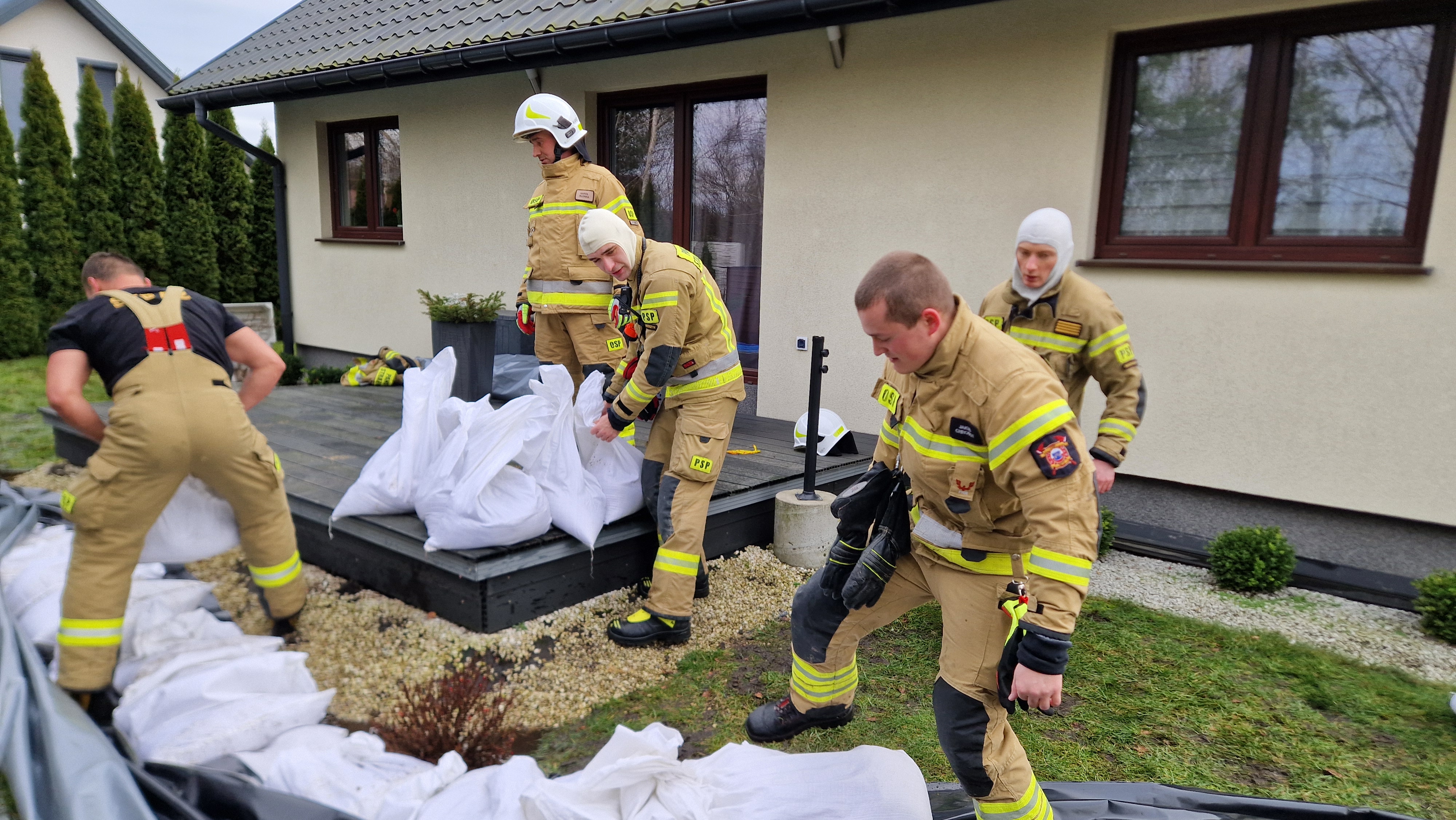 Zabezpieczono teren działań i przeprowadzono rozpoznanie. Z uwagi na wysoki stan wód na terenie okalającym posesję zagrożoną zalaniem i brak możliwości przepompowania wody na okoliczne łąki, Kierujący Działaniem Ratowniczym po konsultacji z Dowódcą Jednostki Ratowniczo — Gaśniczej, korzystając ze swoich uprawnień żądania niezbędnej pomocy w zakresie trybu korzystania z praw przez kierującego działaniem ratowniczym, podjął decyzję o zabezpieczeniu budynku przy pomocy worków z piaskiem. Równolegle do działań prowadzonych na ulicy Żbikowej, poinformowano Zarządzanie Kryzysowe szczebla gminnego o potrzebie dostarczenia piasku oraz worków w celu zabezpieczenia obiektu przed zalaniem. Po dostarczeniu przez przedstawicieli Urzędu Miejskiego w Krotoszynie niezbędnych materiałów przystąpiono do zabezpieczenia budynku. Do likwidacji zagrożenia uruchomiono dodatkowe siły i środki jednostek Ochotniczych Straży Pożarnych z terenu gminy Krotoszyn.