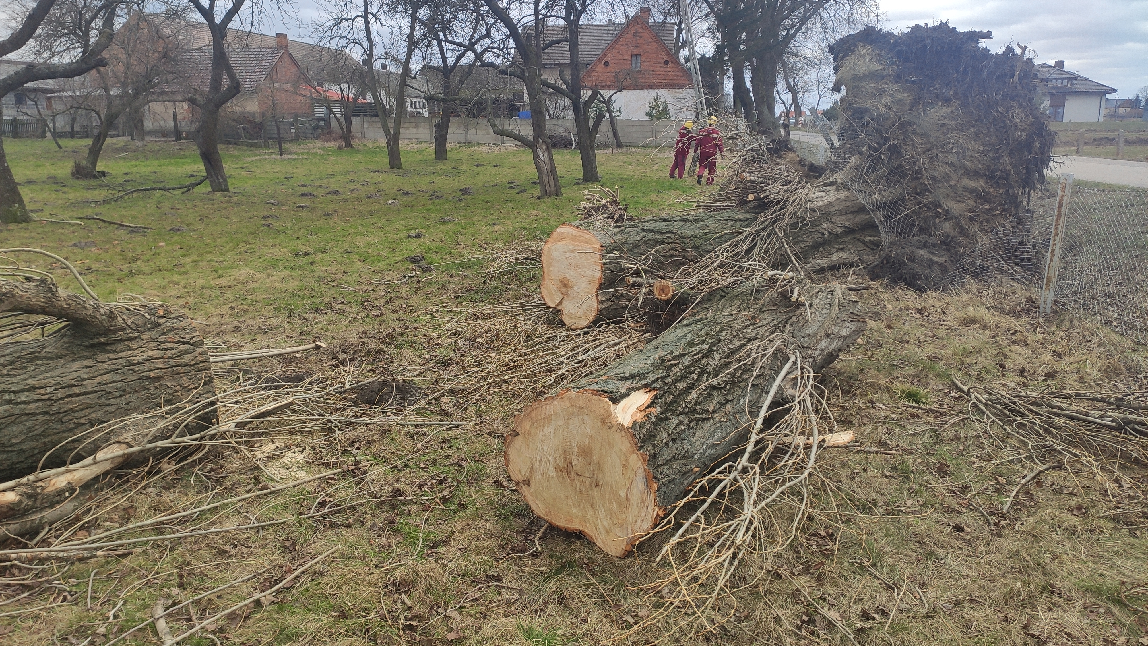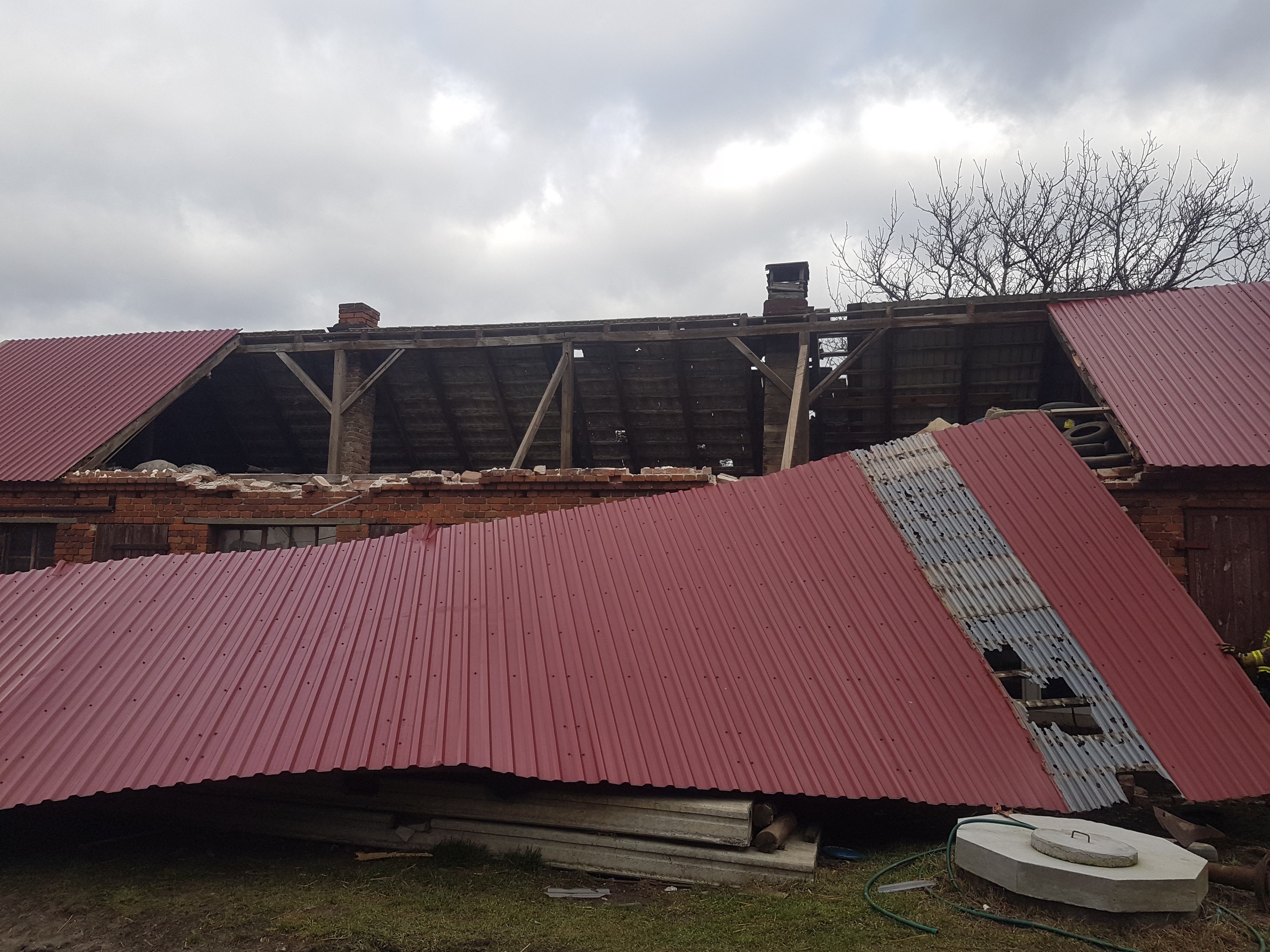 W 3 przypadkach działania dotyczyły zabezpieczenia powierzchni dachowych uszkodzonych przez silne podmuchy wiatru na budynkach mieszkalnych bądź innych obiektach budowlanych. Aż 26 interwencji związanych było z usuwaniem wiatrołomów, z czego w 10 przypadkach drzewa stanowiły zagrożenie dla budynków bądź infrastruktury przesyłowej. Pozosałe interwencje to zabezpieczenie zerwanego baneru reklamowego oraz rozpoznanie zagrożenia na jednej z posesji.