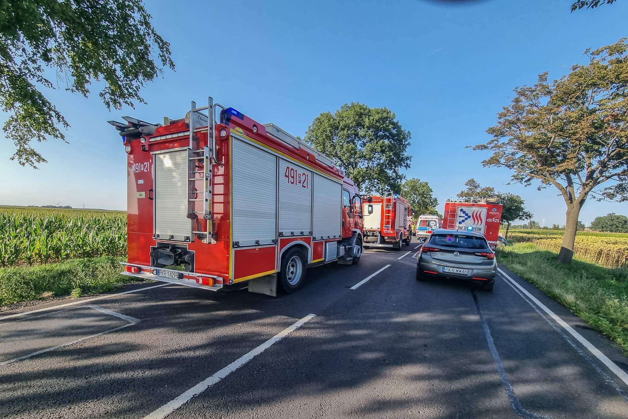 Strażacy po zabezpieczeniu terenu działań przystąpili do działań z użyciem sprzętu hydraulicznego, wykonując dostęp do poszkodowanych kierowców. Jednocześnie wyznaczone roty wspierały czynności realizowane przez ratowników medycznych, przejmując częściową opiekę nad poszkodowanymi. Dodatkowo z uwagi na udział w zdarzeniu lotniczego pogotowia ratunkowego strażacy na miejscu wypadku wyznaczyli lądowisko, zabezpieczając start i lądowanie śmigłowca. Niestety pomimo wysiłku służb ratunkowych i długotrwałej reanimacji nie udało się uratować życia kobiety uczestniczącej w zdarzeniu. Pozostałe trzy osoby poszkodowane w tym jedno dziecko zostały przetransportowane do placówek medycznych i poddane hospitalizacji. W dalszej części działań odłączono akumulatory w uszkodzonych środkach transportu oraz zweryfikowano wycieki płynów eksploatacyjnych. Obecni na miejscu zdarzenia funkcjonariusze Policji zabezpieczyli zamknięty odcinek drogi krajowej, organizując objazdy. Po zakończeniu czynności zmierzających do ustalenia przyczyn wypadku z jezdni usunięto elementy karoserii samochodowej stwarzające zagrożenie dla pojazdów kołowych. Likwidacja skutków tego tragicznego zdarzenia drogowego trwała łącznie 03 godziny i 47 minut. W późniejszym czasie do służb ratunkowych wpłynęła smutna informacja o śmierci drugiego uczestnika zdarzenia, który został przetransportowany drogą lotniczą do placówki medycznej, a więc tegoroczna statystyka ofiar śmiertelnych w zdarzeniach komunikacyjnych na naszym regionie wzrosła o kolejne dwie osoby.