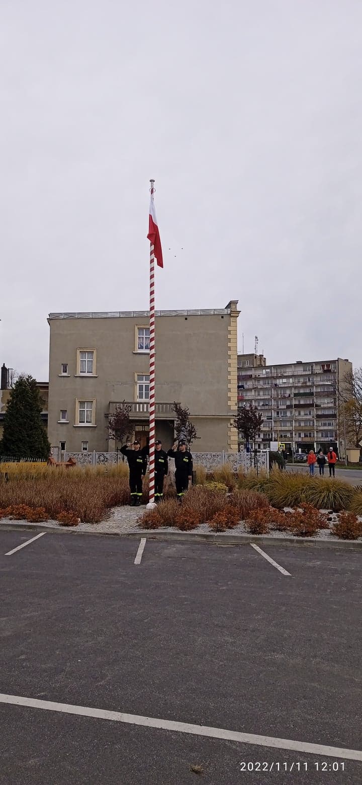W piątek 11 listopada 2022 roku o godzinie 12:00 na placu zewnętrznym Komendy Powiatowej Państwowej Straży Pożarnej w Krotoszynie strażacy z okazji 104 rocznicy odzyskania przez Polskę niepodległości wciągnęli na maszt Flagę Państwową oraz odśpiewali uroczyście Hymn Państwowy Rzeczypospolitej Polskiej.