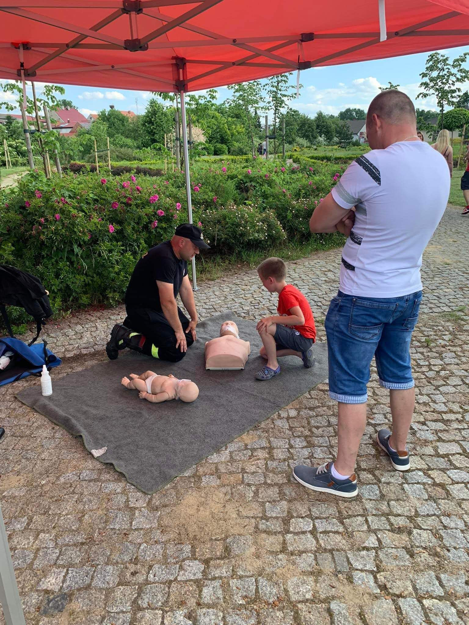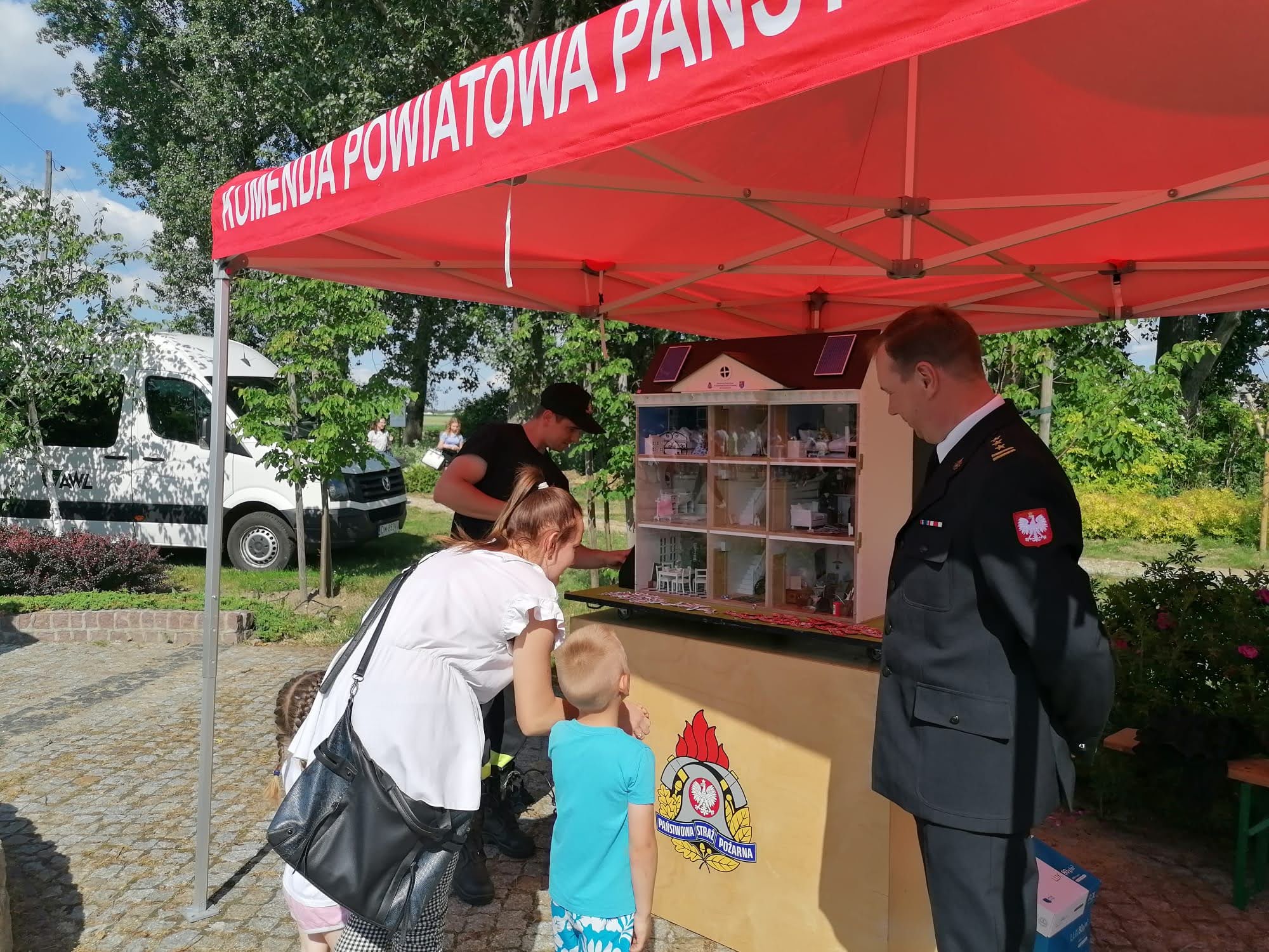 Podczas wizyty w strażackim namiocie uczestnikom pikniku zaprezentowano mobilny symulator zagrożeń pożarowych mogących wystąpić w budynku mieszkalnym, nawiązując do zbliżającego się okresu wakacyjnego. Dodatkowo każdy mógł poznać lub utrwalić zasady udzielania pierwszej pomocy na przygotowanych fantomach ćwiczebnych, które nawiązywały do sytuacji z życia codziennego. Ponadto dla najmłodszych udostępniono podręczny sprzęt gaśniczy w postaci ręcznej hydronetki, którym młodzi adepci sztuki pożarniczej "gasili pożar".