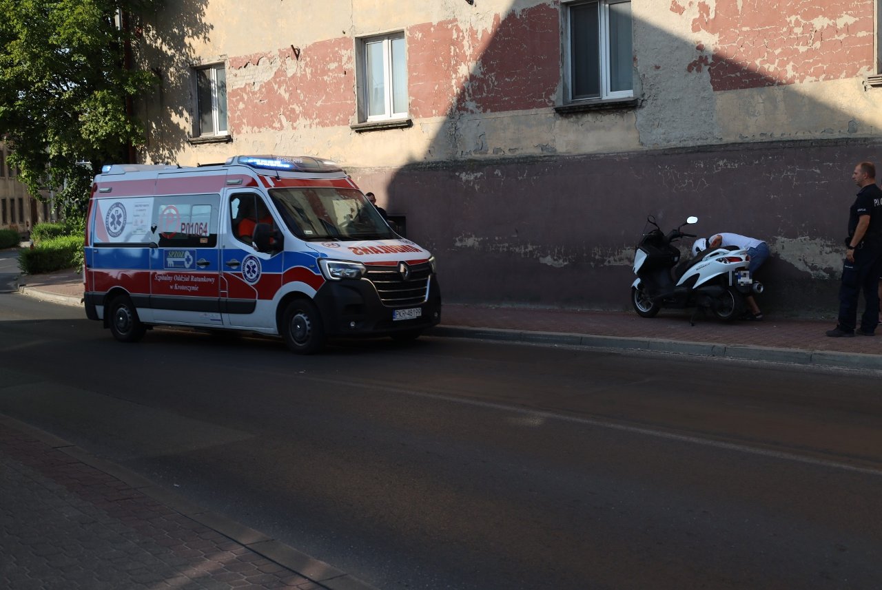 Do drugiego zdarzenia, również w sobotnie popołudnie doszło w Krotoszynie na skrzyżowaniu dróg ul. Sienkiewicza i ul. Rawickiej. Zgłoszenie o zdarzeniu drogowym z udziałem motocykla i samochodu osobowego wpłynęło do SKKP w Krotoszynie o godzinie 16:41. Strażacy z Jednostki Ratowniczo-Gaśniczej w Krotoszynie po dotarciu na miejsce zdarzenia zabezpieczyli teren akcji, następnie przystąpili do udzielania kwalifikowanej pierwszej pomocy kierowcy jednośladu. Na miejscu przed przybyciem straży pożarnej był patrol Policji, który prowadził czynności w stosunku do uczestników zdarzenia. Pojazdy biorące udział w zdarzeniu znajdowały się poza obrysem drogi i nie wymagały interwencji służb. Ze względu na brak dodatkowych zagrożeń strażacy po zaopatrzeniu powierzchownych ran osoby poszkodowanej zakończyli swoje działania i wrócili do miejsca stacjonowania.