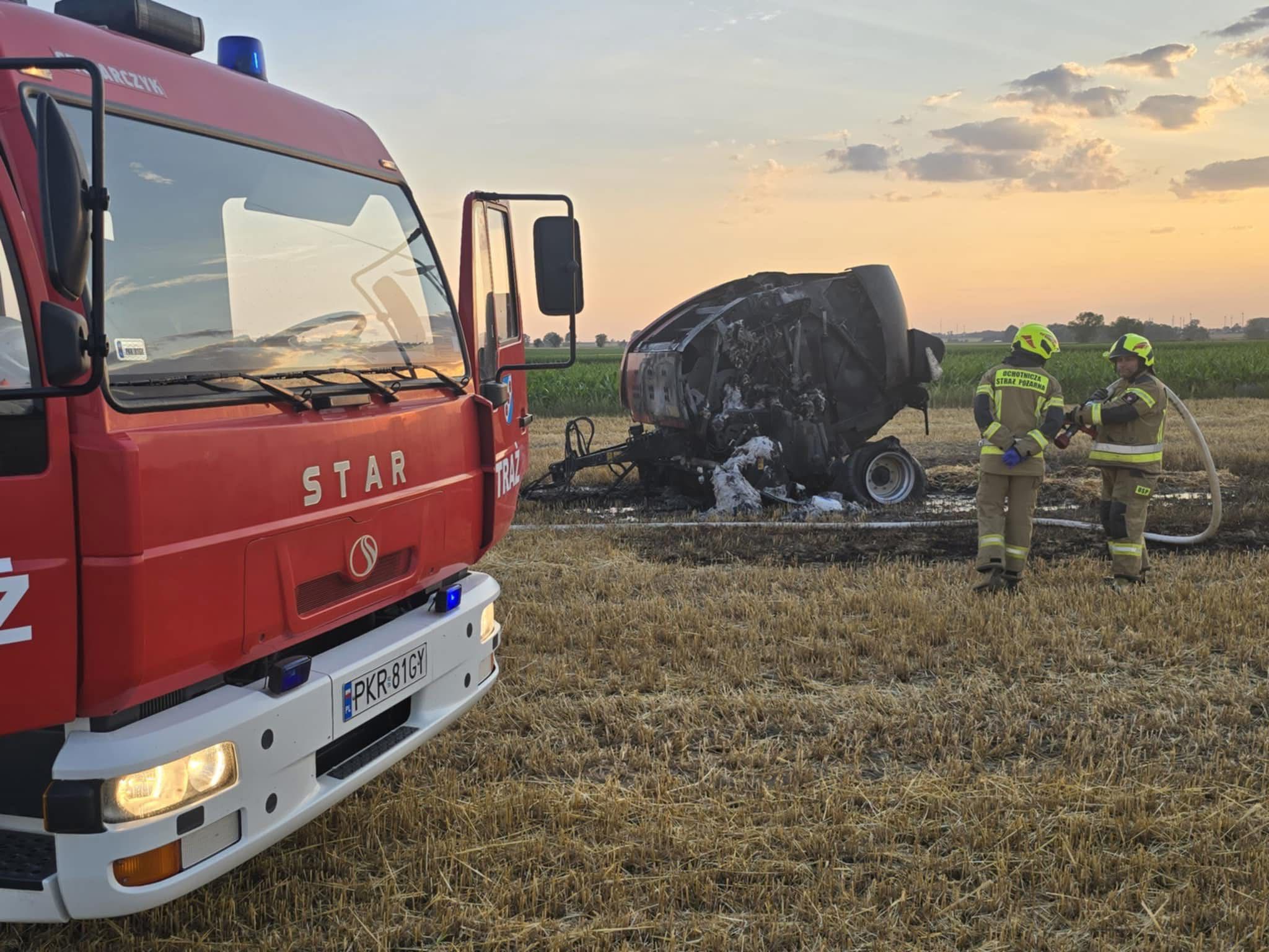 Pierwsze zgłoszenie dotyczące pożaru prasy rolniczej wpłynęło do Stanowiska Kierowania Komendanta Powiatowego PSP w Krotoszynie 05 lipca 2025 tuż przed godziną 20. Ogień objął maszynę rolniczą oraz balot słomy w miejscowości Grębów (gm. Rozdrażew). Do zdarzenia skierowano dwa zastępy z Jednostki Ratowniczo - Gaśniczej w Krotoszynie oraz pojazdy gaśnicze z jednostek OSP Rozdrażew i OSP Koźmin Wielkopolski.