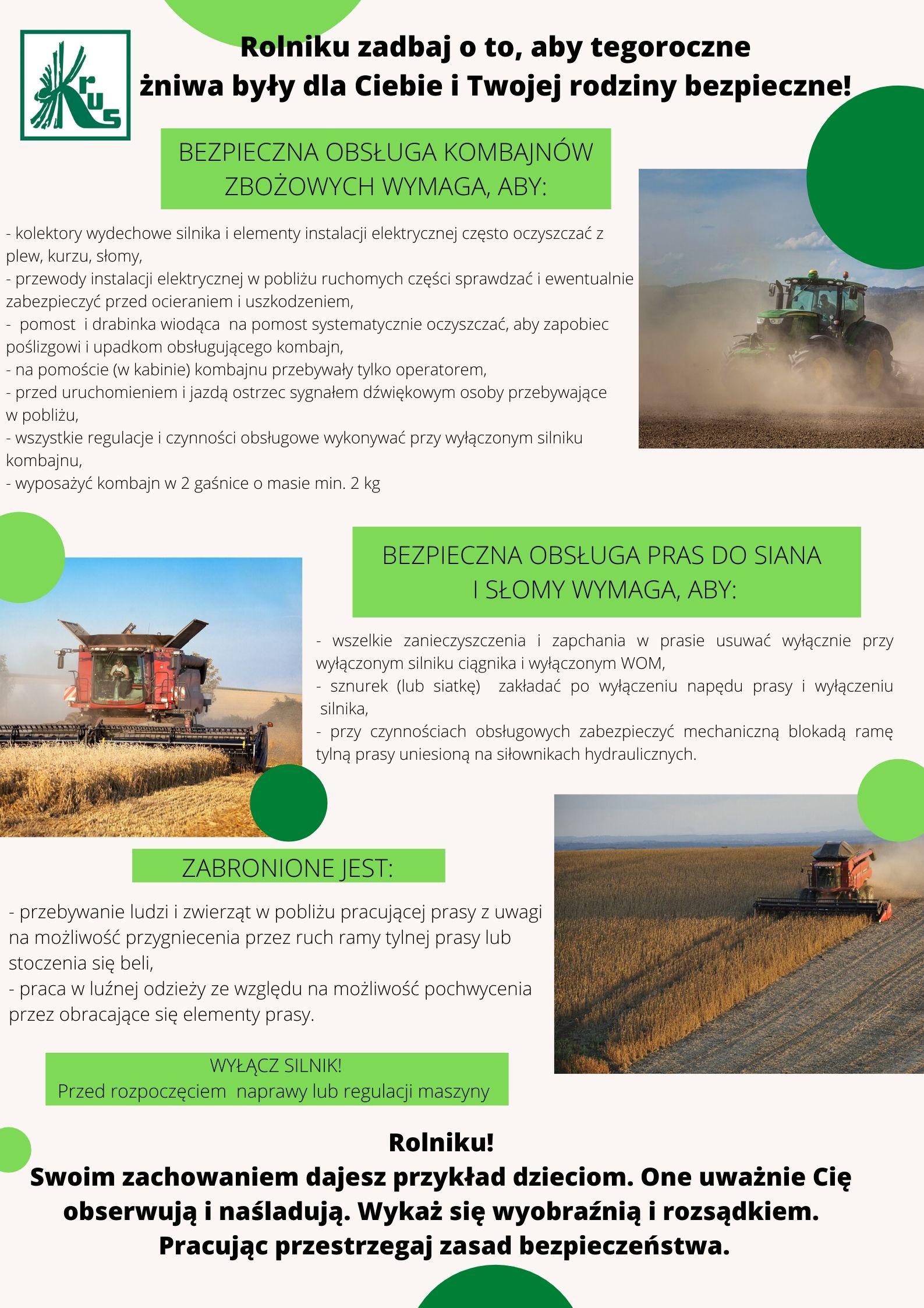Okres wakacyjny, dla jednych czas odpoczynku od codziennych zajęć, dla innych czas wzmożonej, ciężkiej i wytężonej pracy. Corocznie w okresie letnim prowadząc szereg akcji prewencyjnych, zwracamy uwagę na bezpieczeństwo podczas letniego wypoczynku. W tym gorącym okresie nie zapominamy także o rolnikach, dla których właśnie rozpoczynają się żniwa.