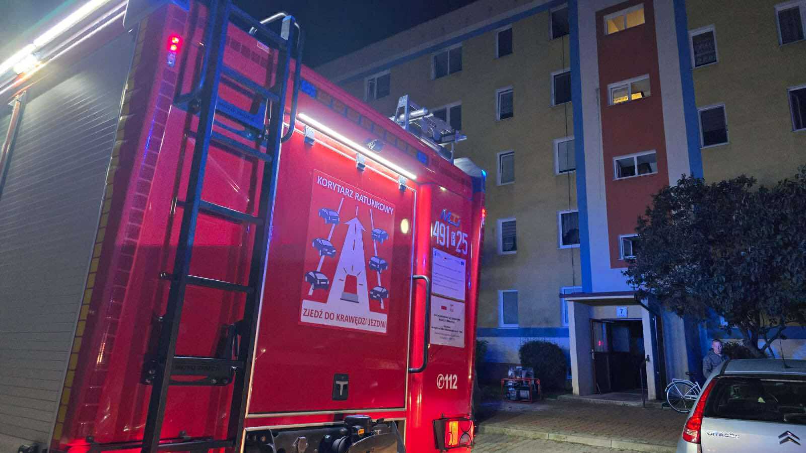 Po zabezpieczeniu terenu działań do wnętrza mieszkania wprowadzono rotę wyposażoną w aparaty ochrony dróg oddechowych, kamerę termowizyjną oraz podręczny sprzęt gaśniczy. W tym samym czasie odłączono dopływ energii elektrycznej do lokalu, rozpoczęto ewakuację pozostałych mieszkań oraz sprawiono linię gaśniczą po klatce schodowej. Skuteczne i precyzyjne działania gaśnicze prowadzone z użyciem termowizji oraz gaśnicy proszkowej doprowadziły do stłumienia ognia i ograniczyły rozprzestrzenianie się pożaru na pozostałe pomieszczenia, minimalizując tym samym straty materialne. Spalone urządzenie zostało wyniesione na zewnątrz w miejsce nie stwarzające zagrożenia a lokal oddymiono stosując wentylację mechaniczną. W trakcie przeszukania pozostałych pomieszczeń w lokalu zlokalizowano zwierzę, które również ewakuowano na zewnątrz i przekazano właścicielowi. Po całkowitej likwidacji zagrożenia potwierdzonej za pomocą dostępnych urządzeń pomiarowych działania zakończono i lokatorzy powrócili do swoich mieszkań. W interwencji uczestniczył również patrol Policji biorąc czynny udział w zabezpieczeniu terenu działań przed dostępem osób postronnych. Akcja gaśnicza trwała łącznie 1 godzinę i 47 minut