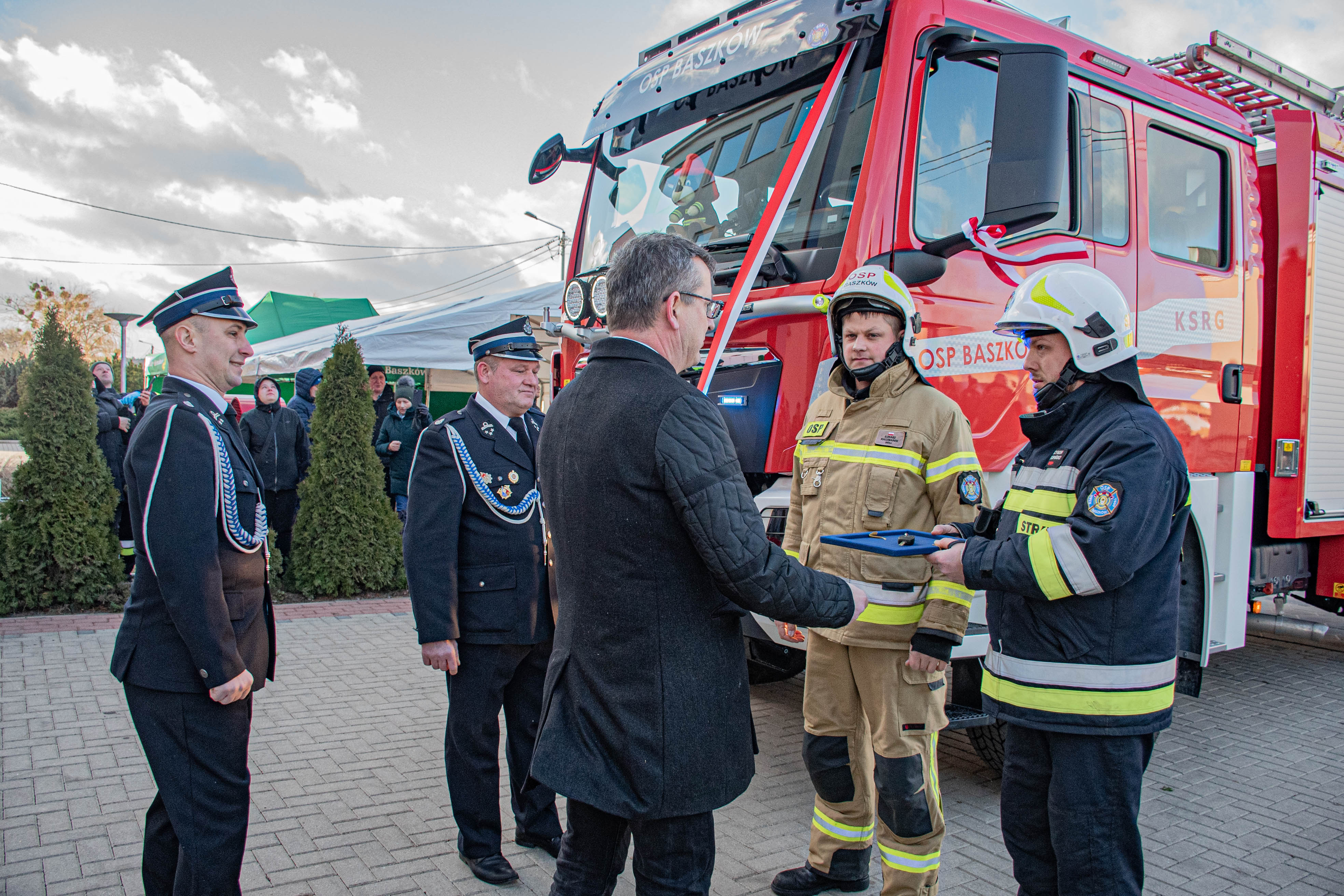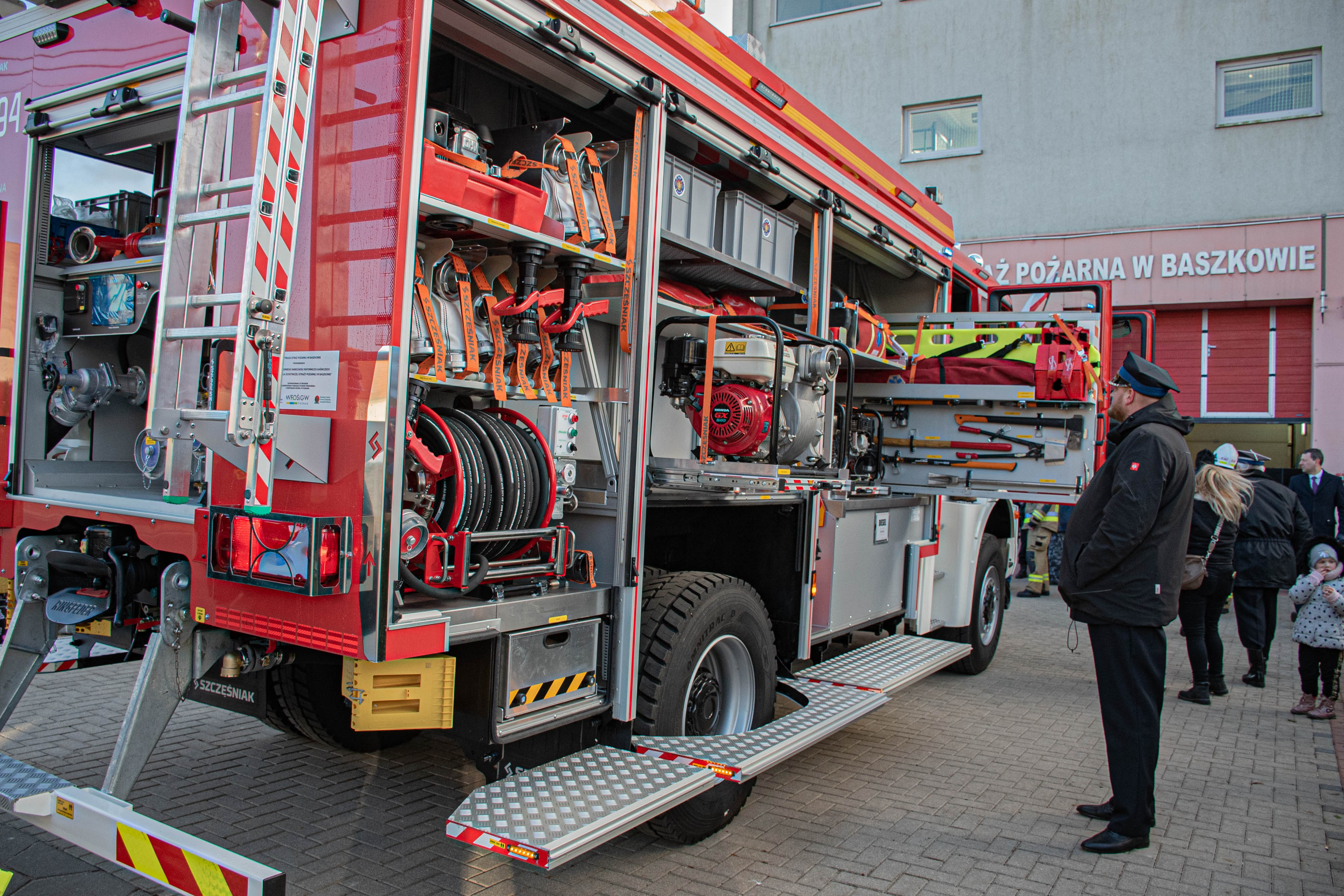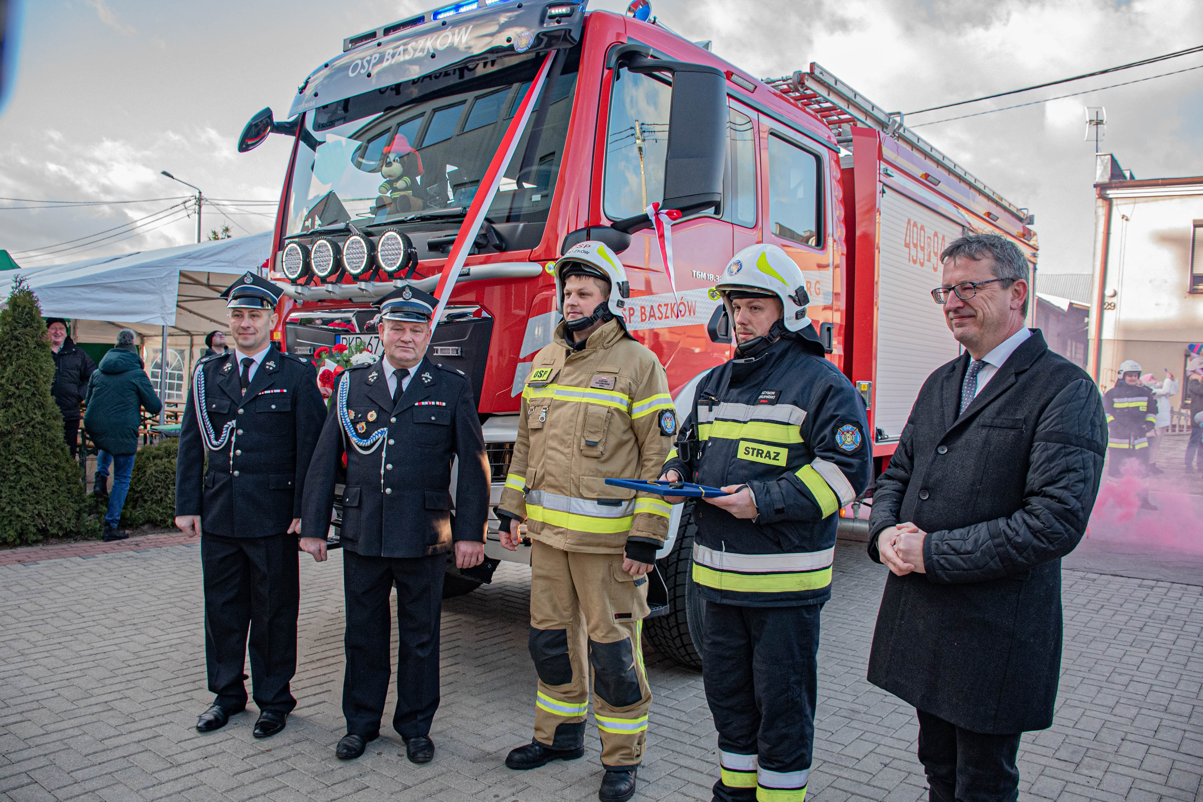 W sobotę 27 stycznia 2024 roku w strażnicy jednostki Ochotniczej Straży Pożarnej w Baszkowie odbyło się uroczyste przekazanie nowego średniego wozu bojowego na podwoziu MAN.