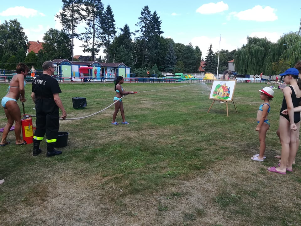 Osoby spędzające czas na terenie basenu miały okazję poznać podstawowe zasady bezpiecznego spędzania czasu wolnego nad akwenem oraz jak należy się zachować w sytuacji zagrożenia życia i zdrowia lub będąc świadkiem tonięcia osoby.