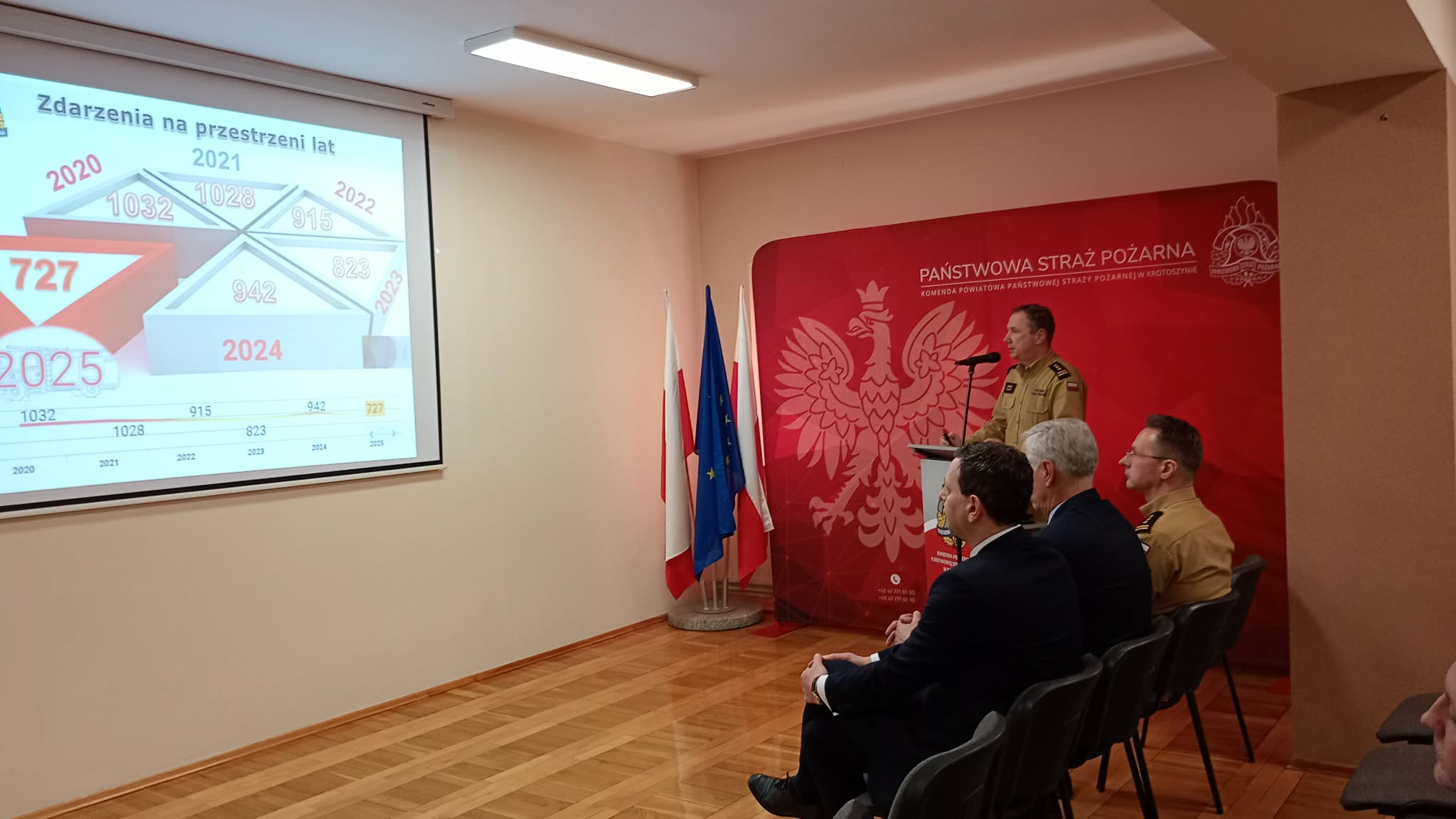 Analizę działalności Komendy Powiatowej Państwowej Straży Pożarnej w Krotoszynie za 2025 rok przedstawił Komendant Powiatowy, omawiając najważniejsze przedsięwzięcia oraz wydarzenia zrealizowane w minionym roku. Z zaprezentowanego materiału wynika, że znaczna część założonych celów została osiągnięta, co potwierdza wysoką efektywność podejmowanych działań.