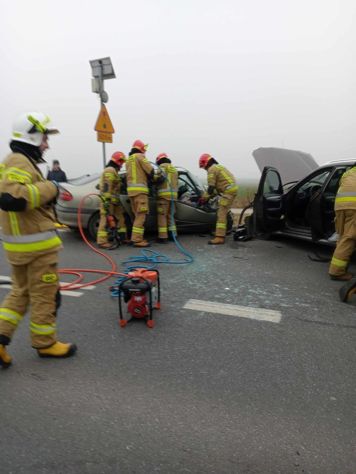 W momencie dotarcia na miejsce jednostek straży pożarnej w przeprowadzonym rozpoznaniu ustalono, że uszkodzonymi środkami transportu podróżowało łącznie siedem osób. Aż pięć z nich wymagało diagnostyki i podjęcia czynności medycznych z zachowaniem priorytetów leczniczo - transportowych. Dodatkowym utrudnieniem dla ratowników był ograniczony dostęp do jednego z uczestników zdarzenia spowodowany nadmierną deformacją bryły samochodu osobowego. Ruch pojazdów na drodze krajowej został całkowicie zablokowany.