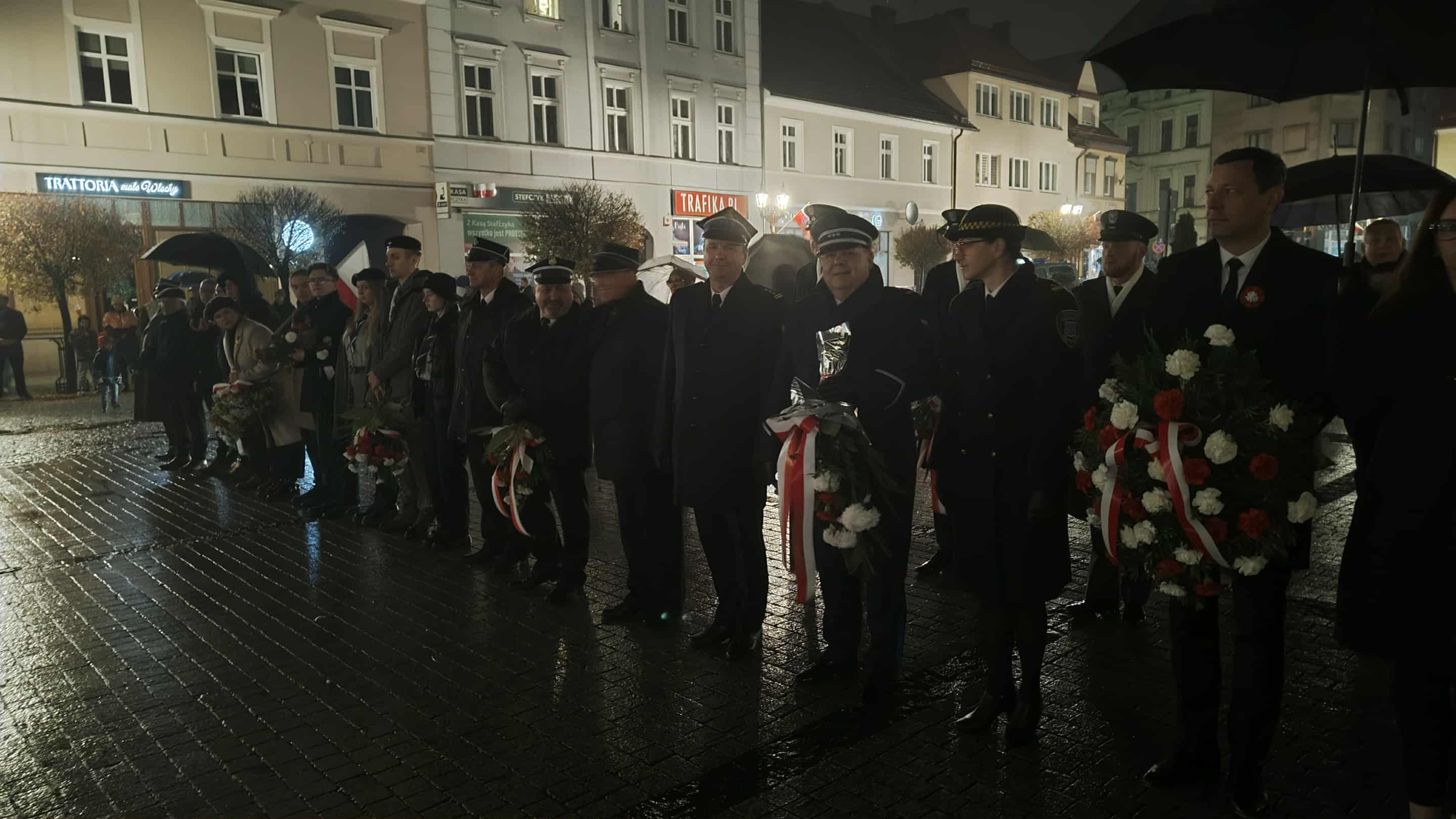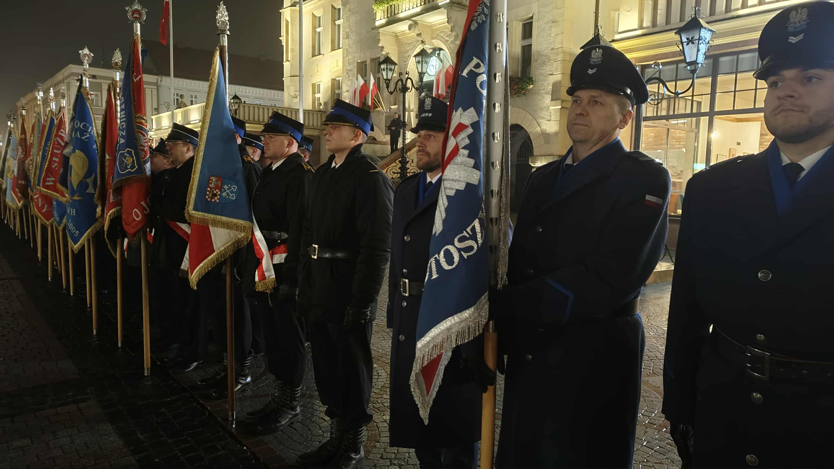 We wtorek 11 listopada 2025 roku na krotoszyńskim rynku odbyły się Powiatowo-Gminne obchody Narodowego Święta Niepodległości. Tradycyjnie wydarzenie zgromadziło przedstawicieli władz samorządowych, służb mundurowych, organizacji społecznych, szkół oraz poczty sztandarowe. Wśród uczestników uroczystości obecni byli również funkcjonariusze Komendy Powiatowej Państwowej Straży Pożarnej w Krotoszynie. Komendę reprezentował Komendant Powiatowy PSP st. bryg. Marek Kalak, wraz z pocztem sztandarowym Komendy Powiatowej PSP.