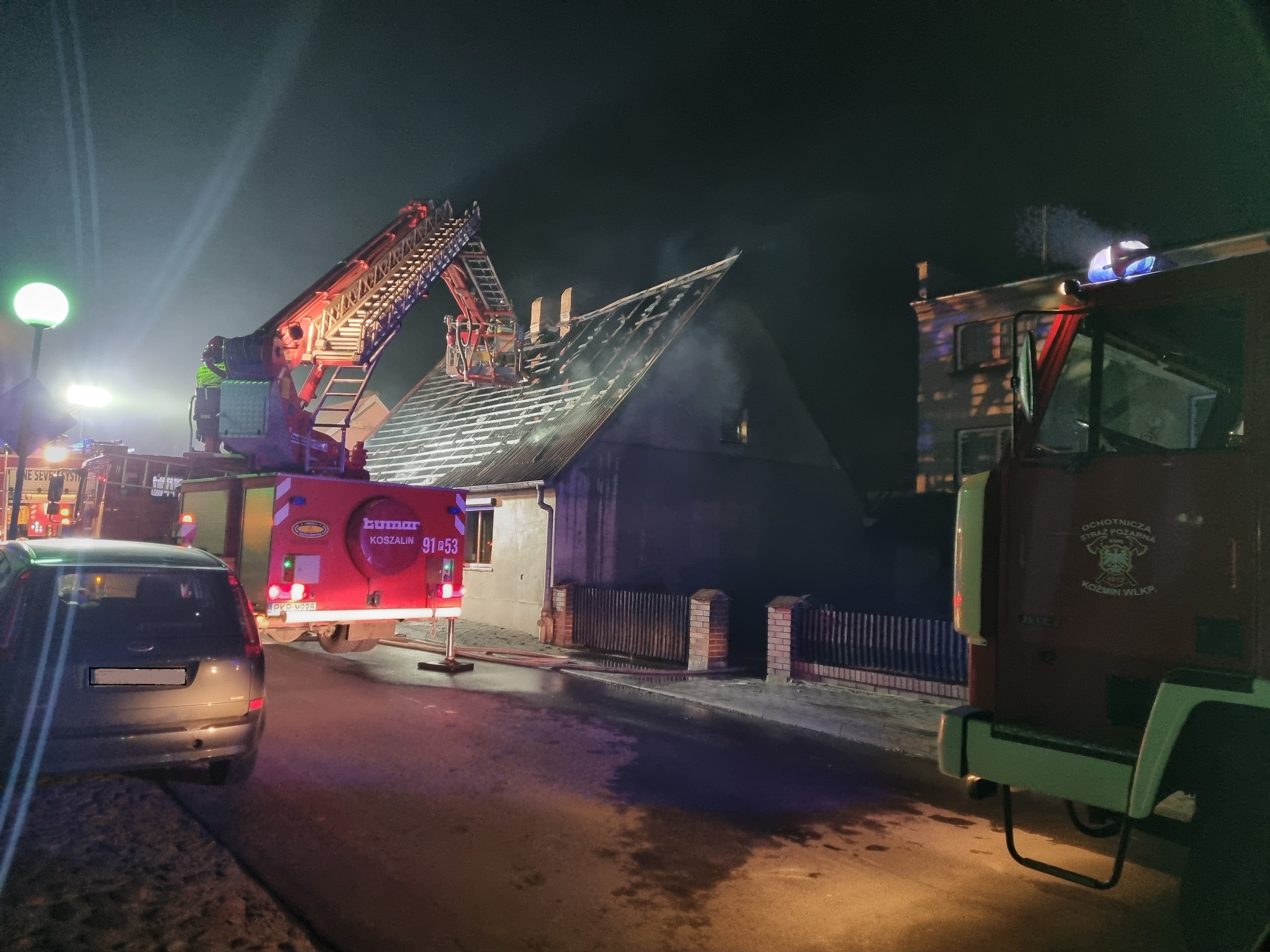 POŻAR BUDYNKU JEDNORODZINNEGO W KOŹMINIE WIELKOPOLSKIM.
