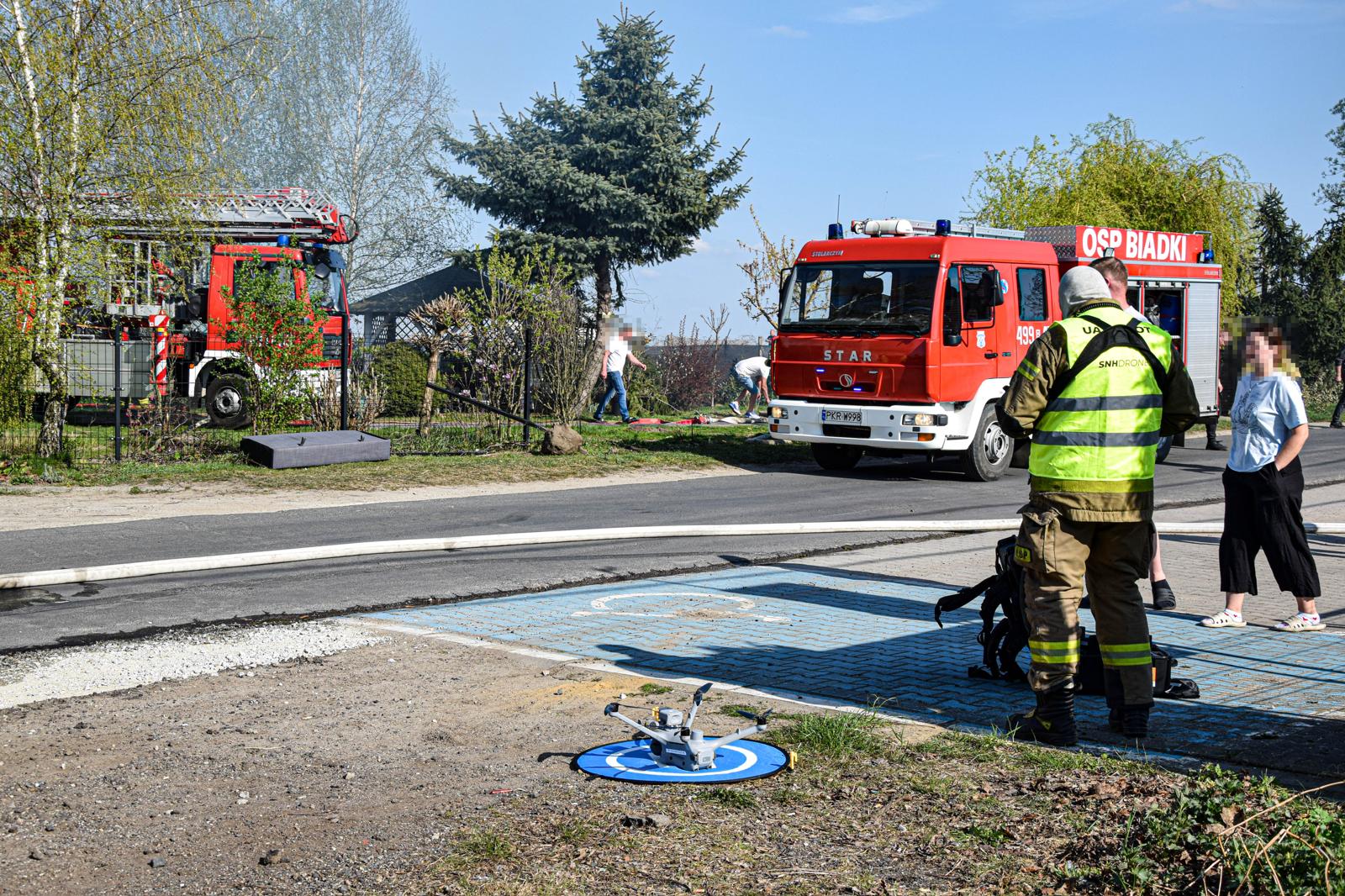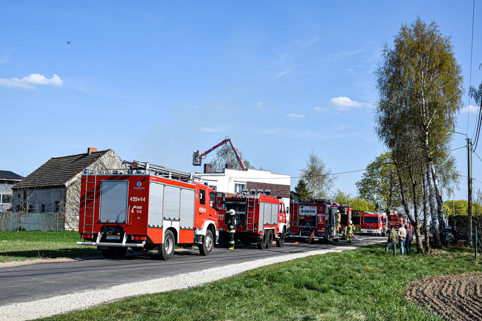 Strażacy po zabezpieczeniu terenu działań i odłączeniu zasilania w obiektach objętych pożarem rozpoczęli działania w natarciu organizując stanowiska gaśnicze w różnych lokalizacjach. Jednostki systematycznie docierające na teren akcji wprowadzano do działań zwiększając intensywność podawania środka gaśniczego. W proces lokalizacji ognisk pożaru na obiekcie mieszkalnym zaangażowano bezzałogowy statek powietrzny z termowizją, którym monitorowano obiekt przez cały okres działań potwierdzając skuteczność zastosowanego wariantu rozwinięcia. Działania gaśnicze prowadzono równocześnie wewnątrz budynku oraz w kilku lokalizacjach na zewnętrznym terenie. Po stłumieniu pożaru strażacy przystąpili do usuwania nadpalonych elementów oraz prac rozbiórkowych mających na celu dogaszenie ukrytych zarzewi ognia. Obiekt na bieżąco monitorowano urządzeniami pomiarowymi, które w końcowej fazie działań potwierdziły likwidacje zagrożenia.