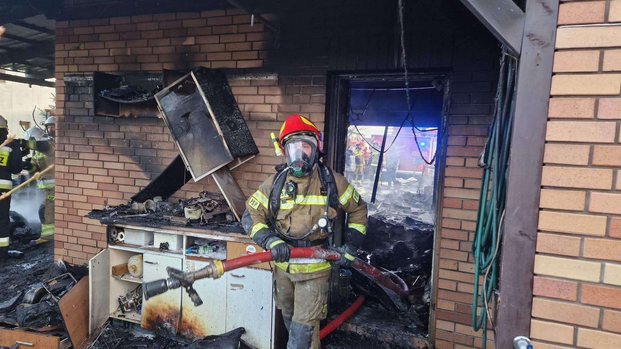 POŻAR GARAŻU W KROTOSZYNIE. UCIERPIAŁO MIENIE ZNACZNEJ WARTOŚCI.