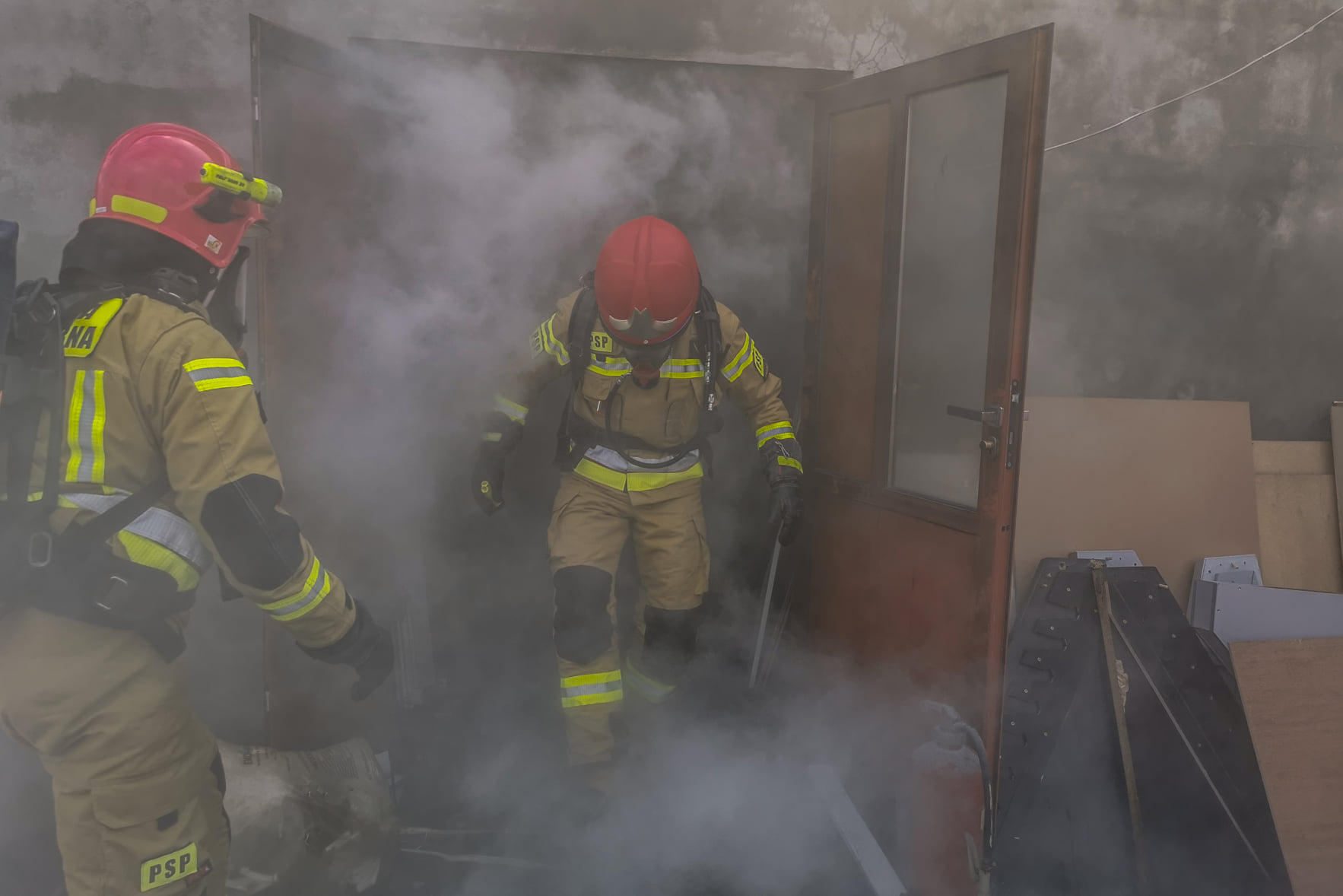 Strażacy zabezpieczeni w sprzęt ochrony dróg oddechowy oraz wyposażeni w linie gaśniczą wody weszli do kotłowni w celu dotarcia do źródła pożaru. Po stłumieniu pożaru przystąpili do oddymiania kotłowni wykorzystując do tego celu mechaniczny wentylator oddymiający. Nagromadzony materiał palny został wyniesiony na zewnątrz obiektu w miejsce nie stwarzające zagrożenia i dogaszony wodą. Po całkowitym ugaszeniu pożaru i oddymieniu budynku, strażacy przy użyciu kamery termowizyjnej oraz detektora wielogazowego sprawdzili wszystkie pomieszczenia potwierdzając likwidację zagrożenia. Na tym działania zakończono i zastępy powróciły do miejsca stacjonowania.